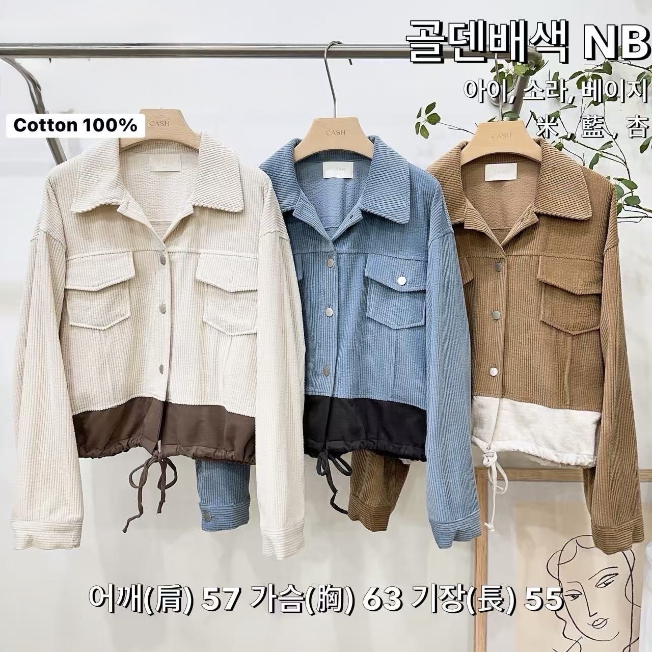CH02 登芯絨拼色束腳Top 3色 米/藍/杏 Chest 48" length 21.5"