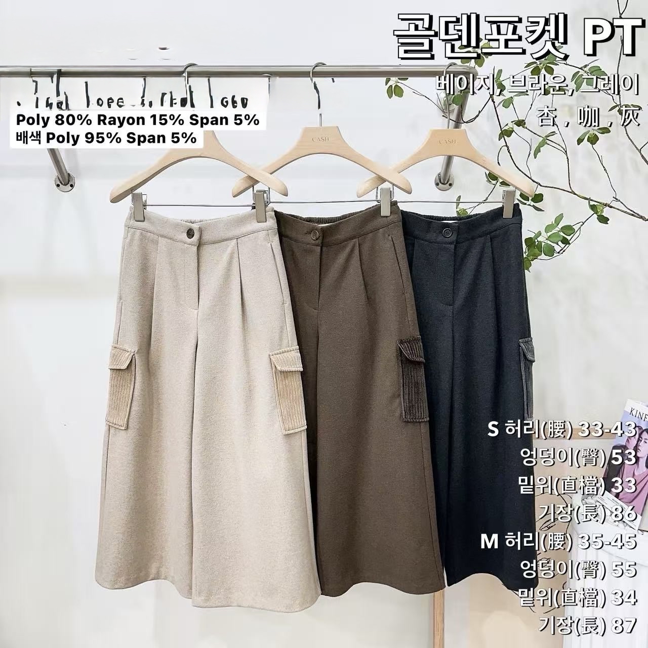 CH05 側2絨袋闊褲 3色 杏/啡/灰 S/M S waist 25-32" hip 41" length 33.8" M waist 27-35" hip 43" length 34"