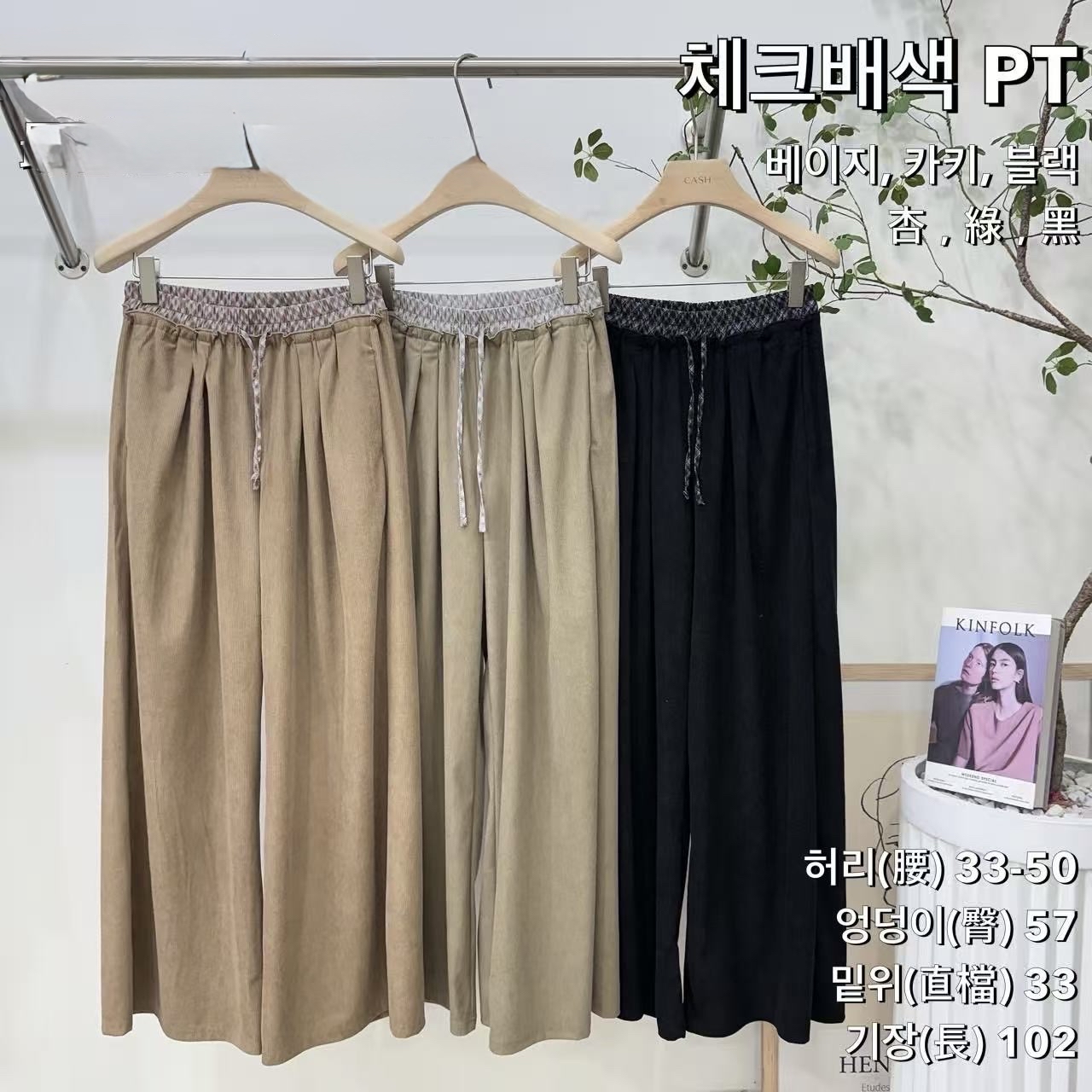 CH14 格仔褲頭闊褲 3色 杏/綠/黑 Waist 25-40" hip 44" length 40