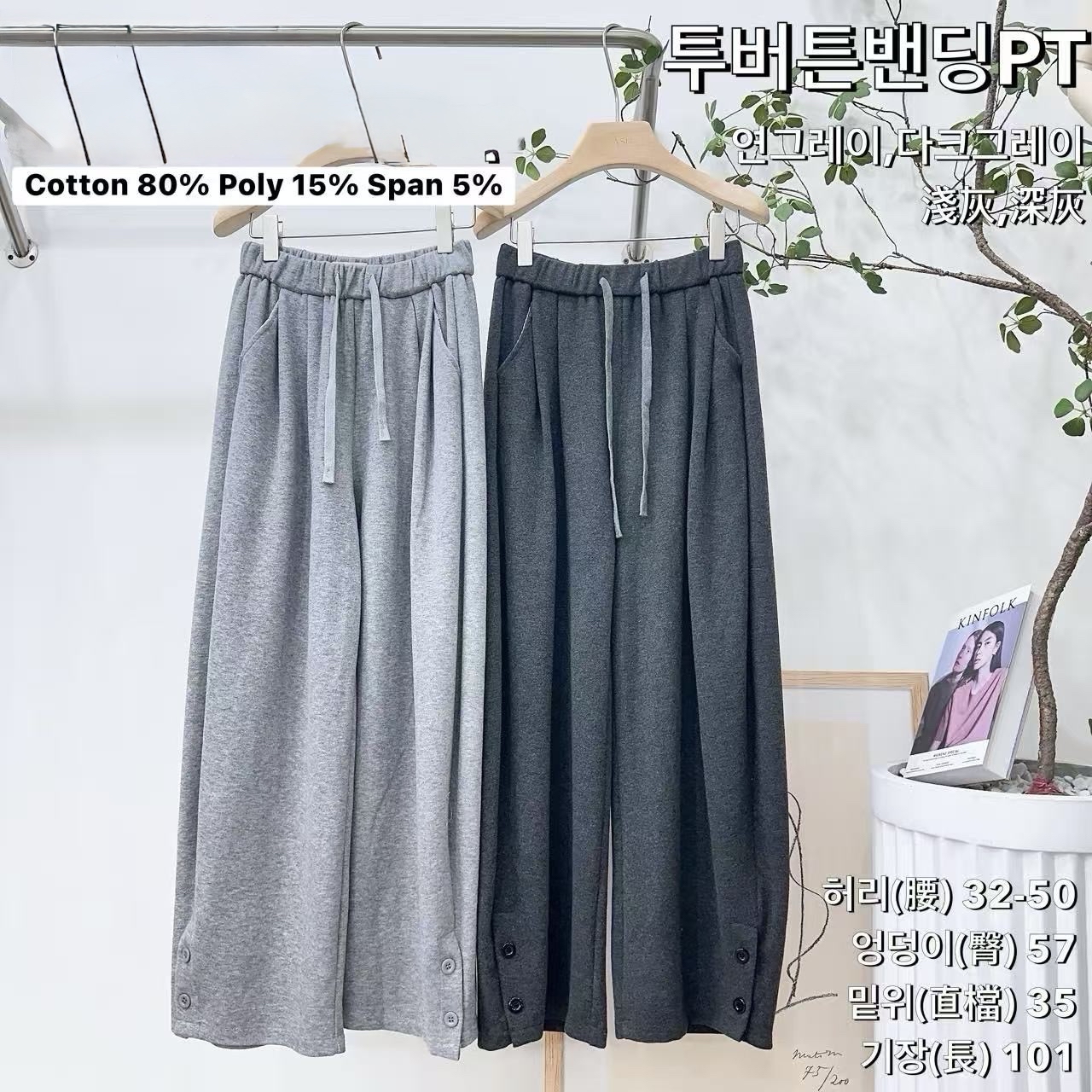 CH18 褲腳扣鈕闊褲 2色 淺灰/深灰 Waist 24-40" hip 44" length 39.7"