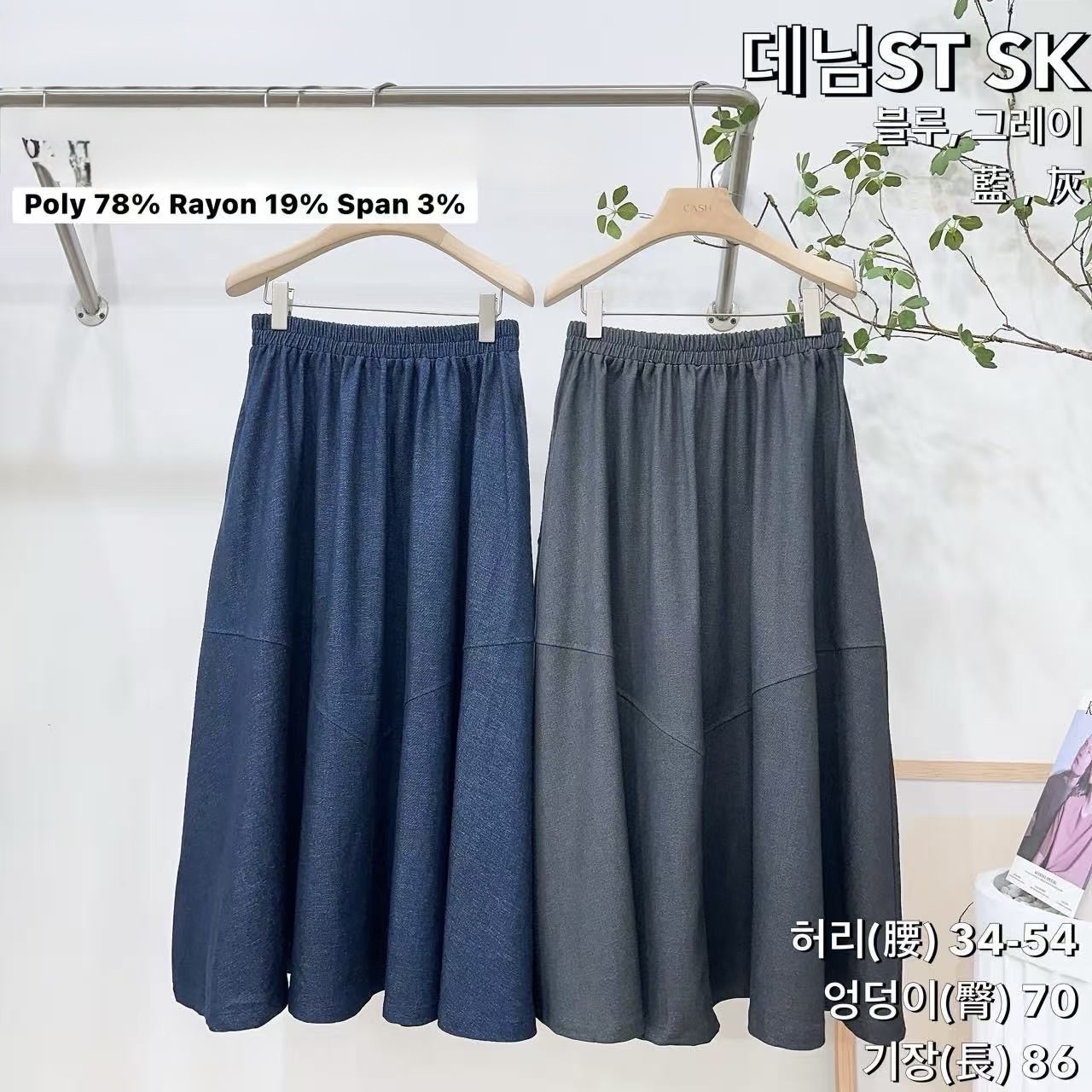 CH29 橡筋腰半截裙 2色 藍/灰 Waist 26-42" hip 50+ length 34"