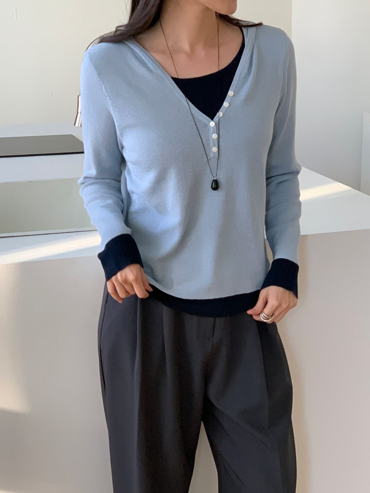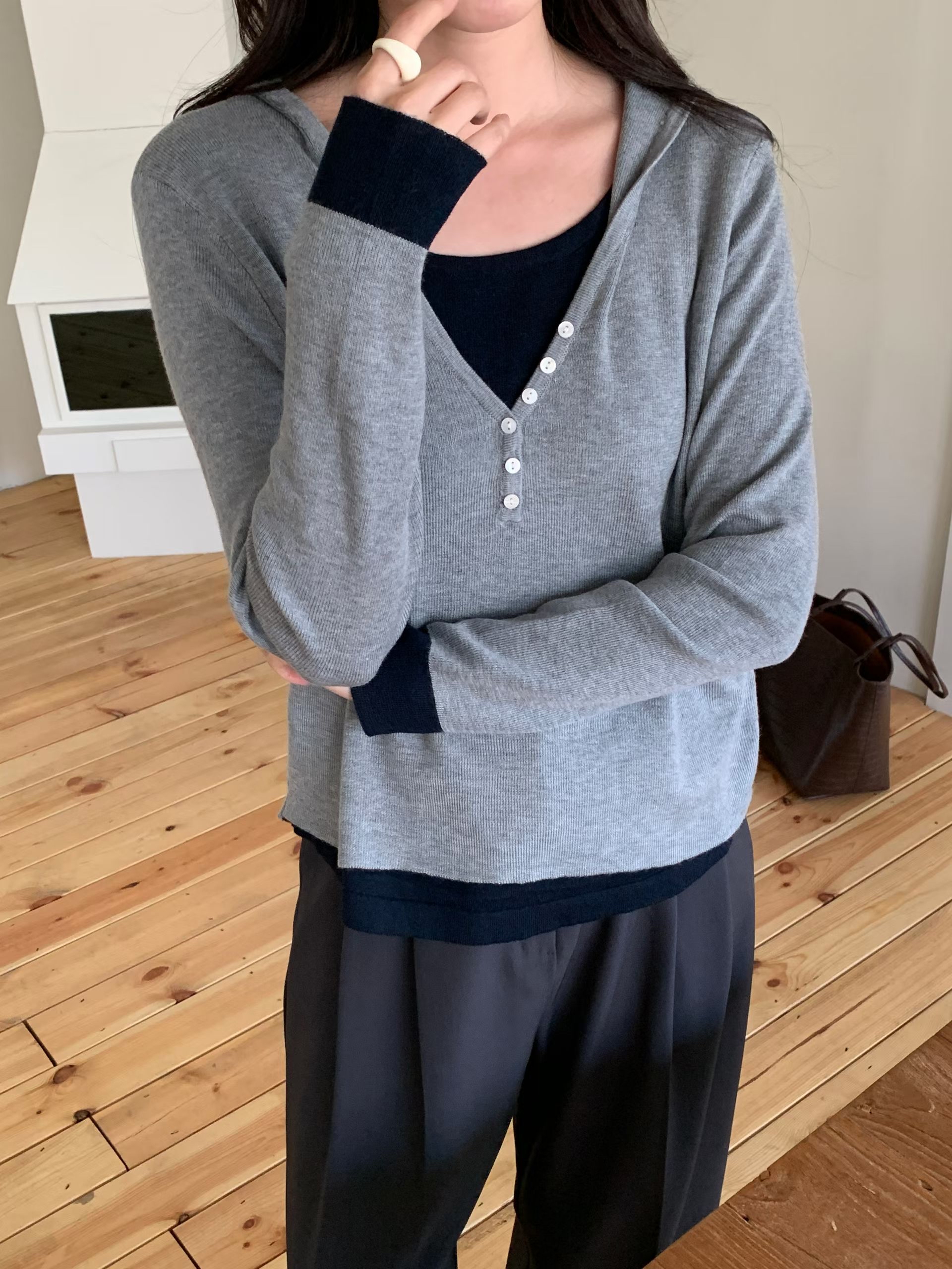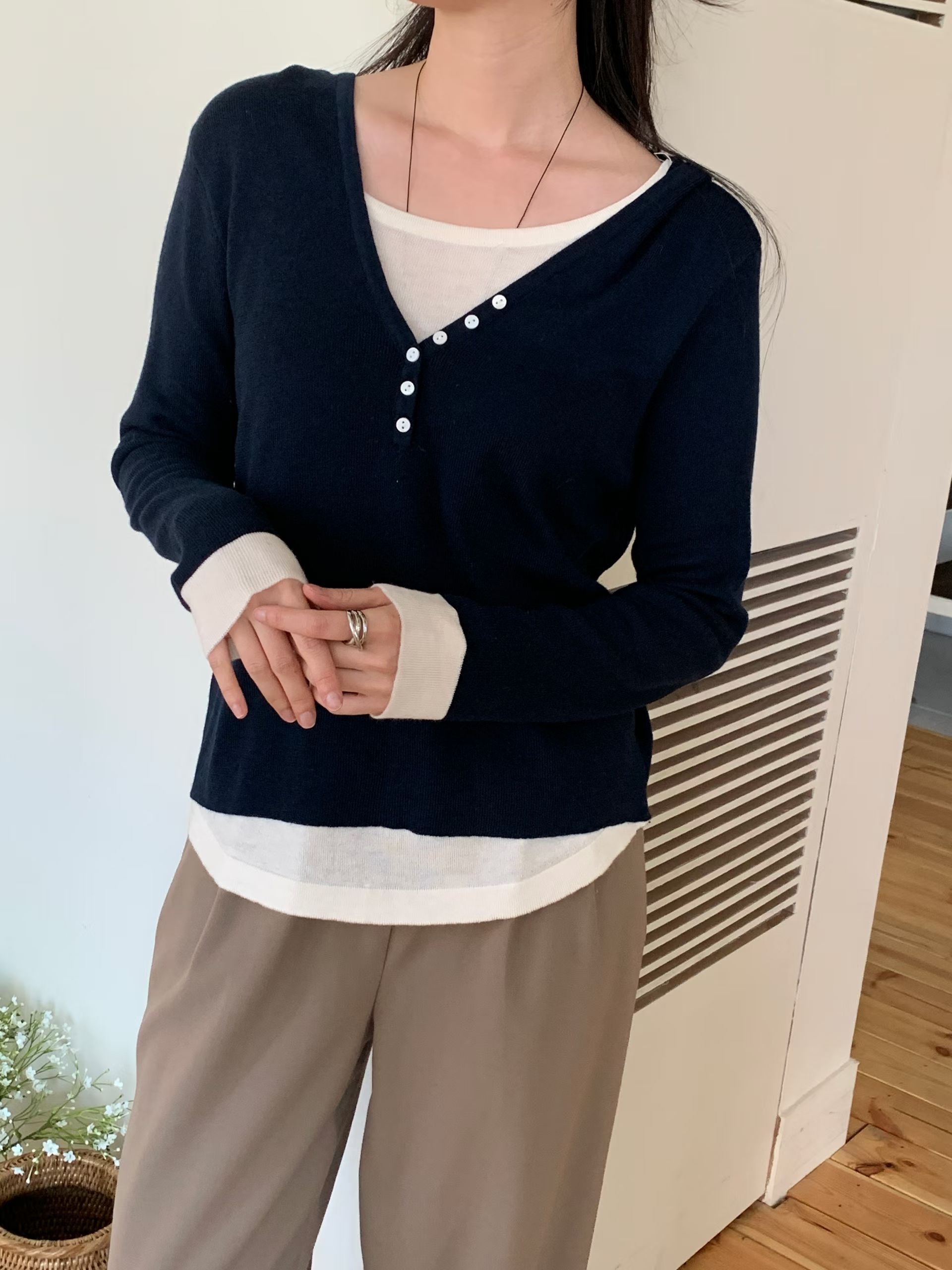 CT01 開鈕假2件針織Top