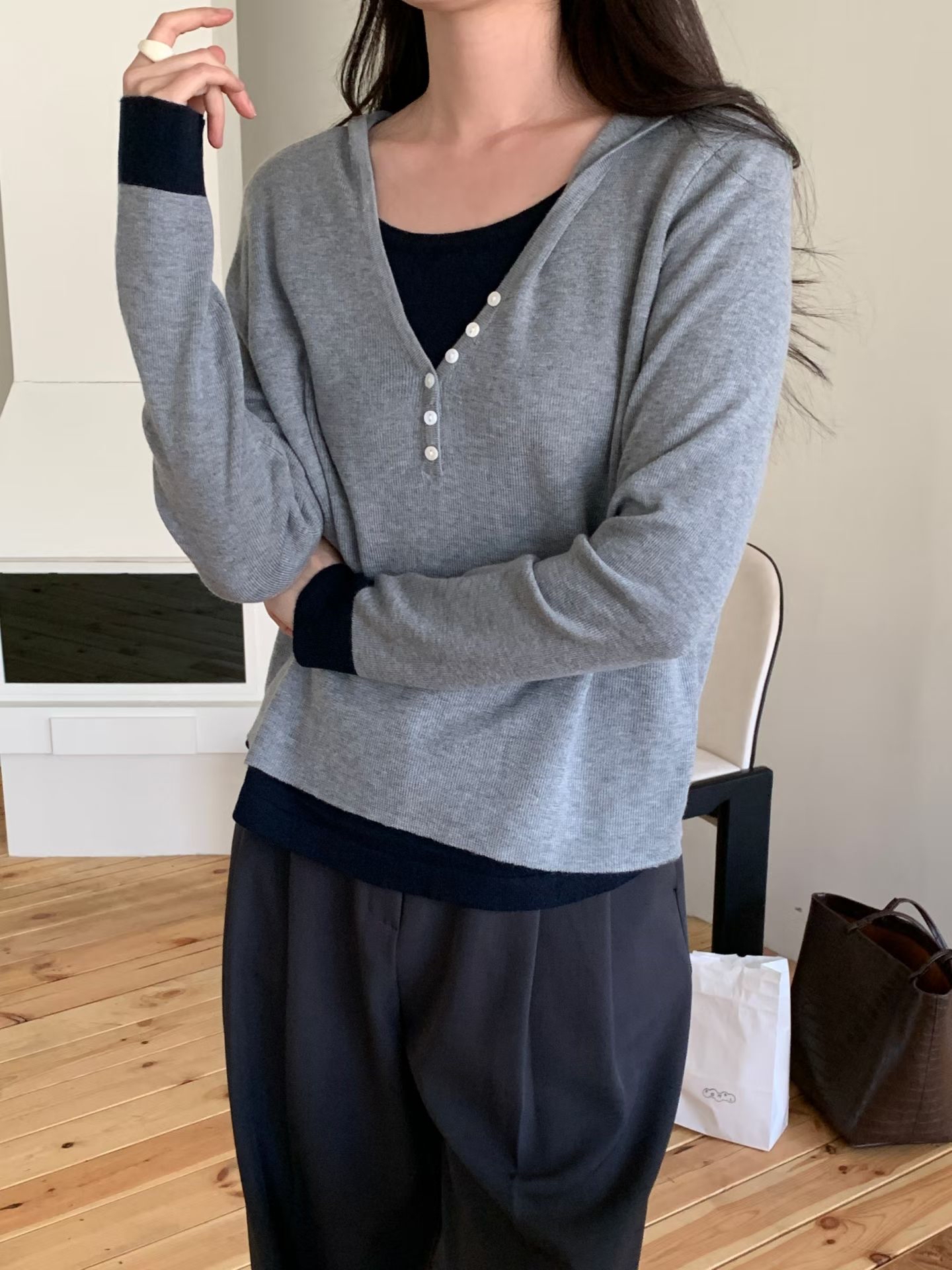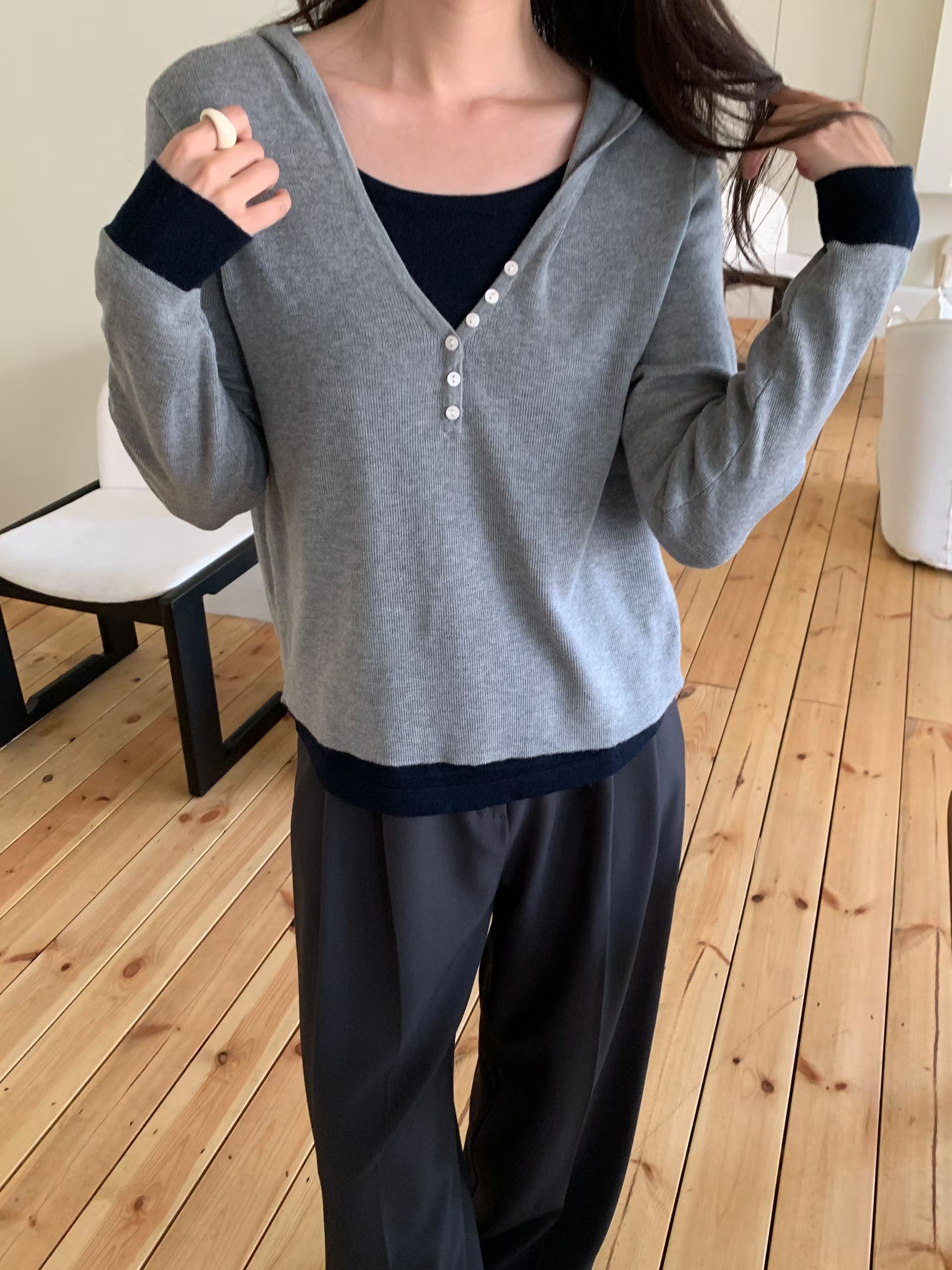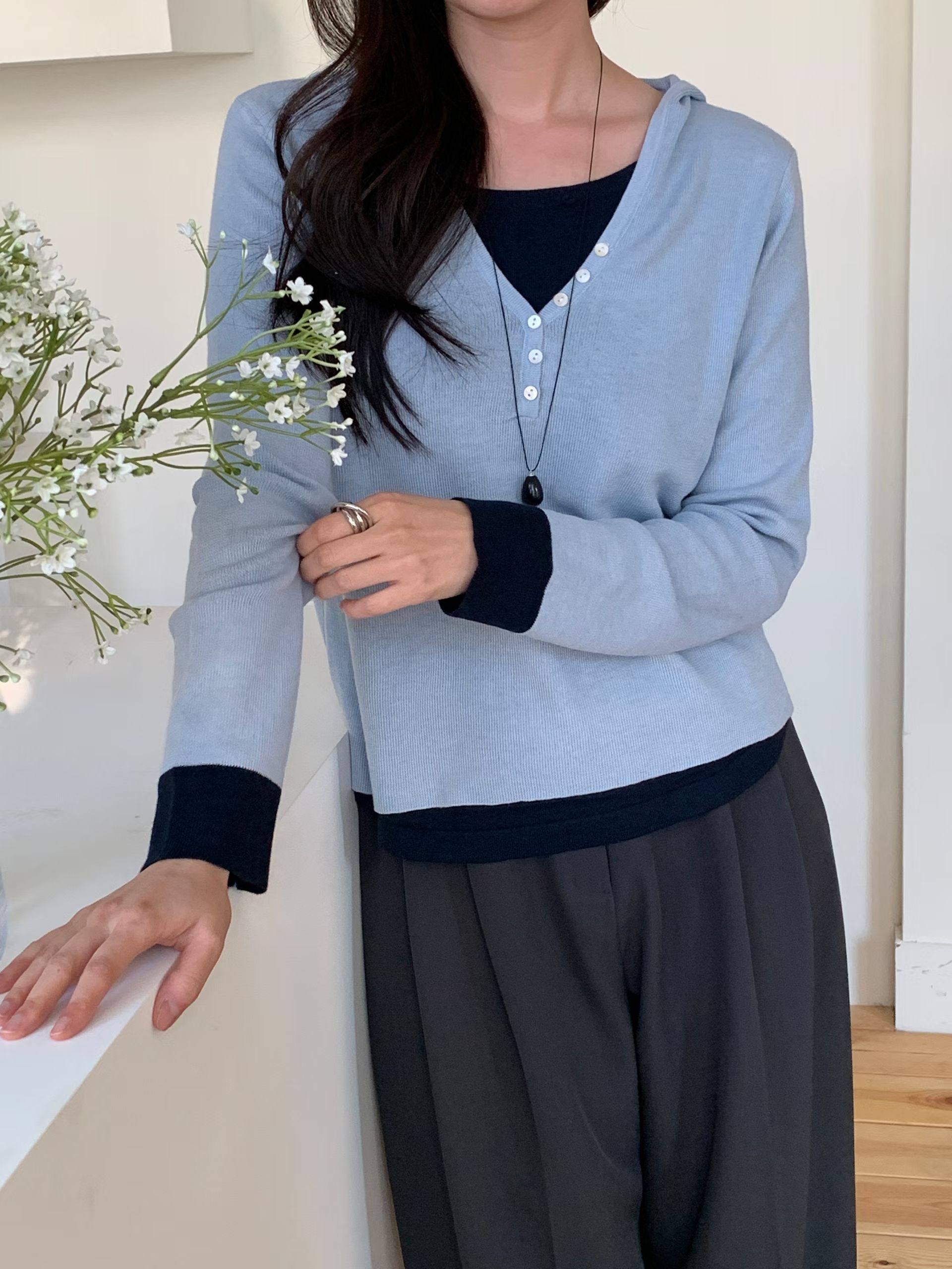 CT01 開鈕假2件針織Top