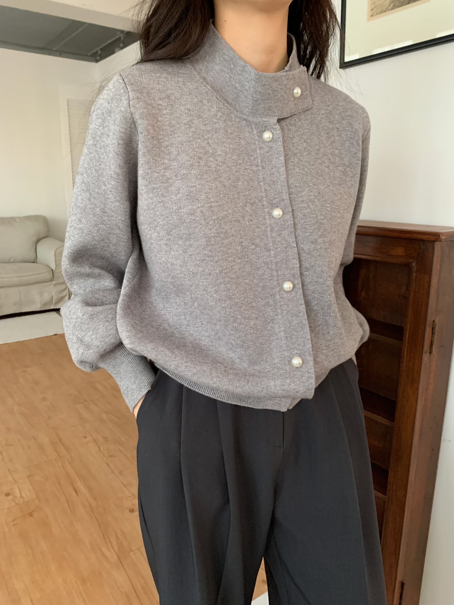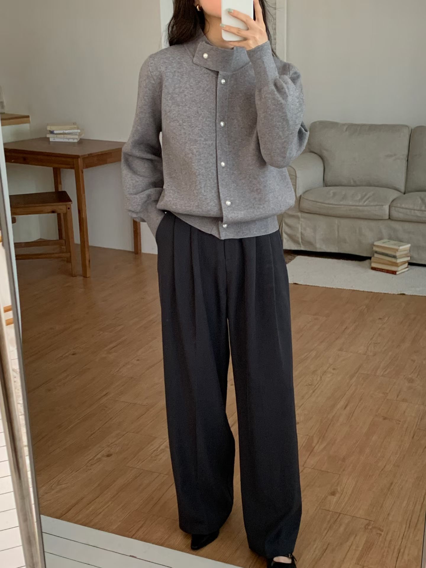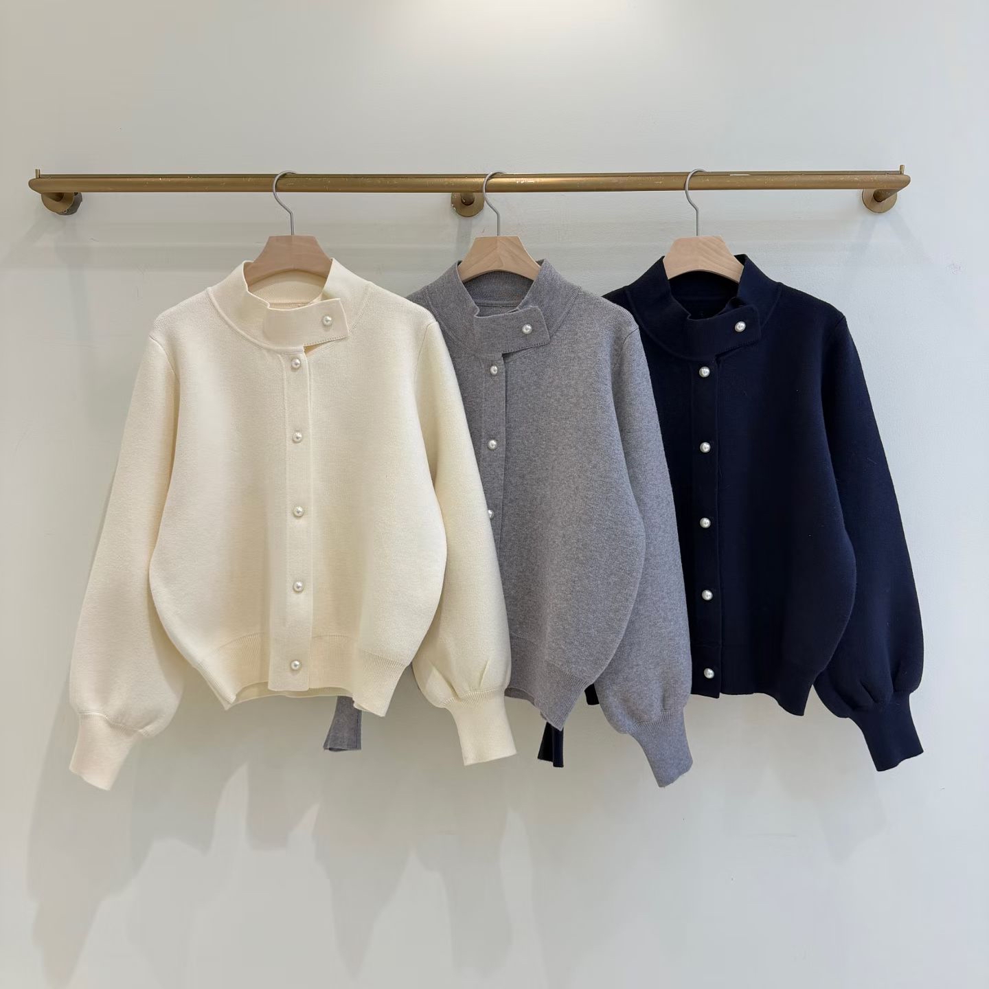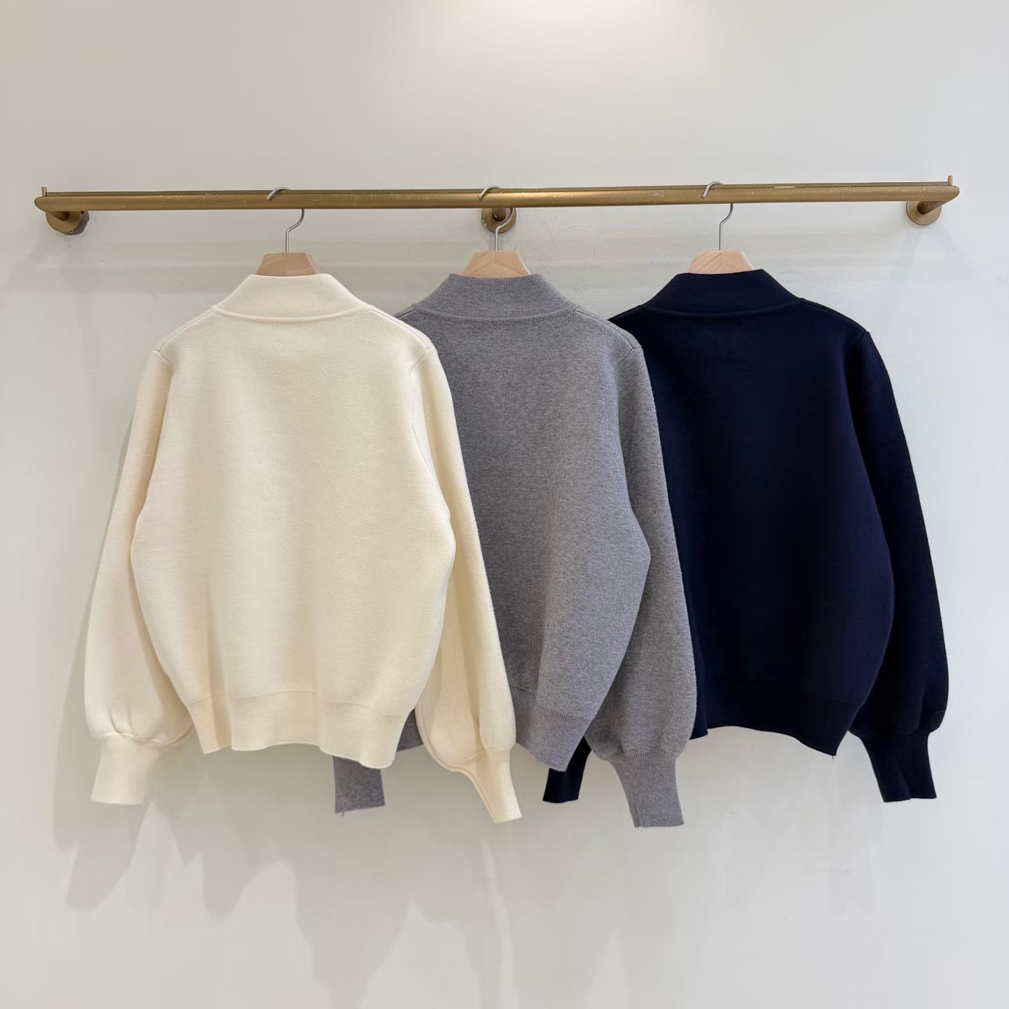 CT02 高領滑身針織外套 3色 米/灰/深藍 Chest 44-54" length 23.5"