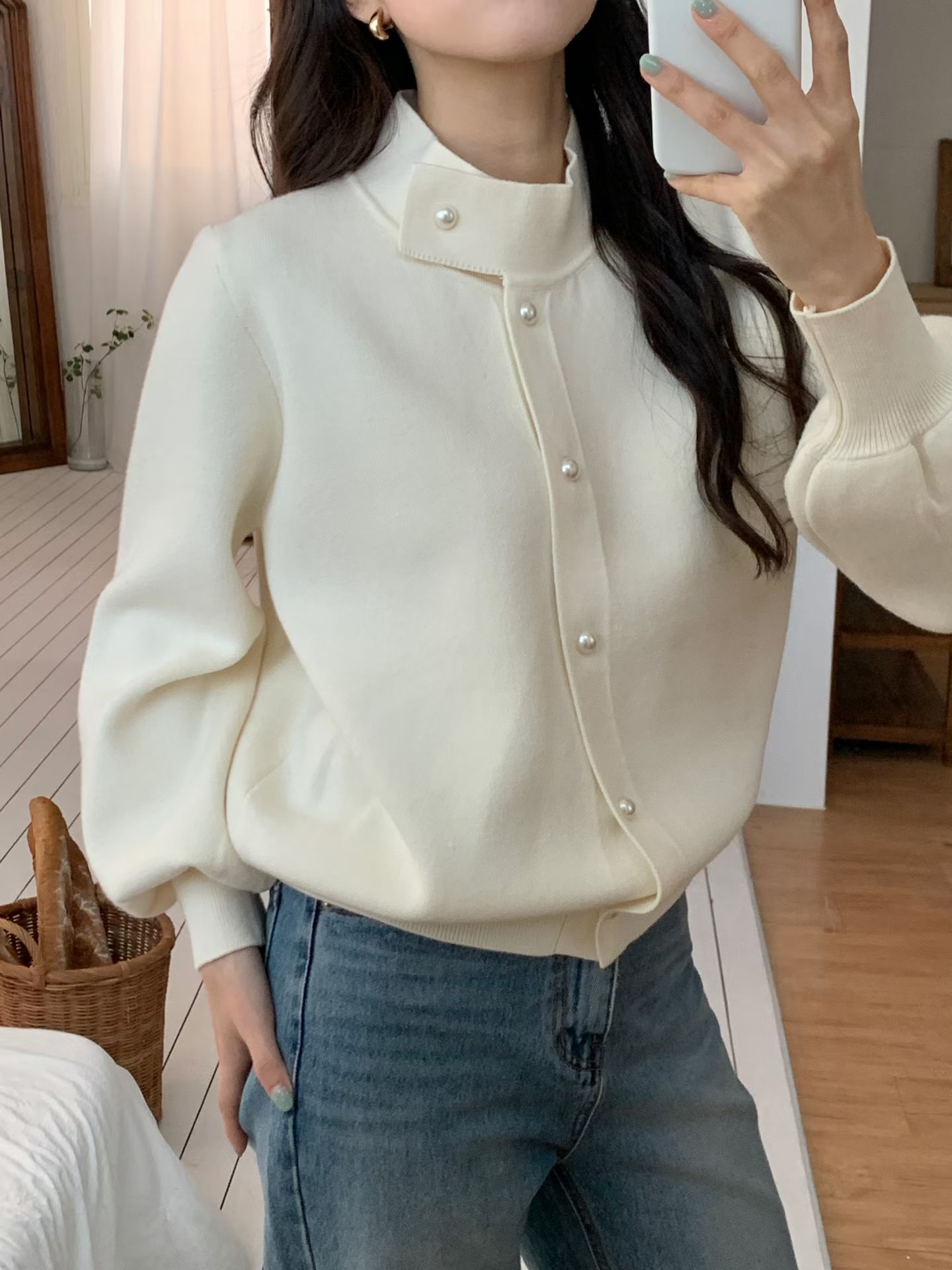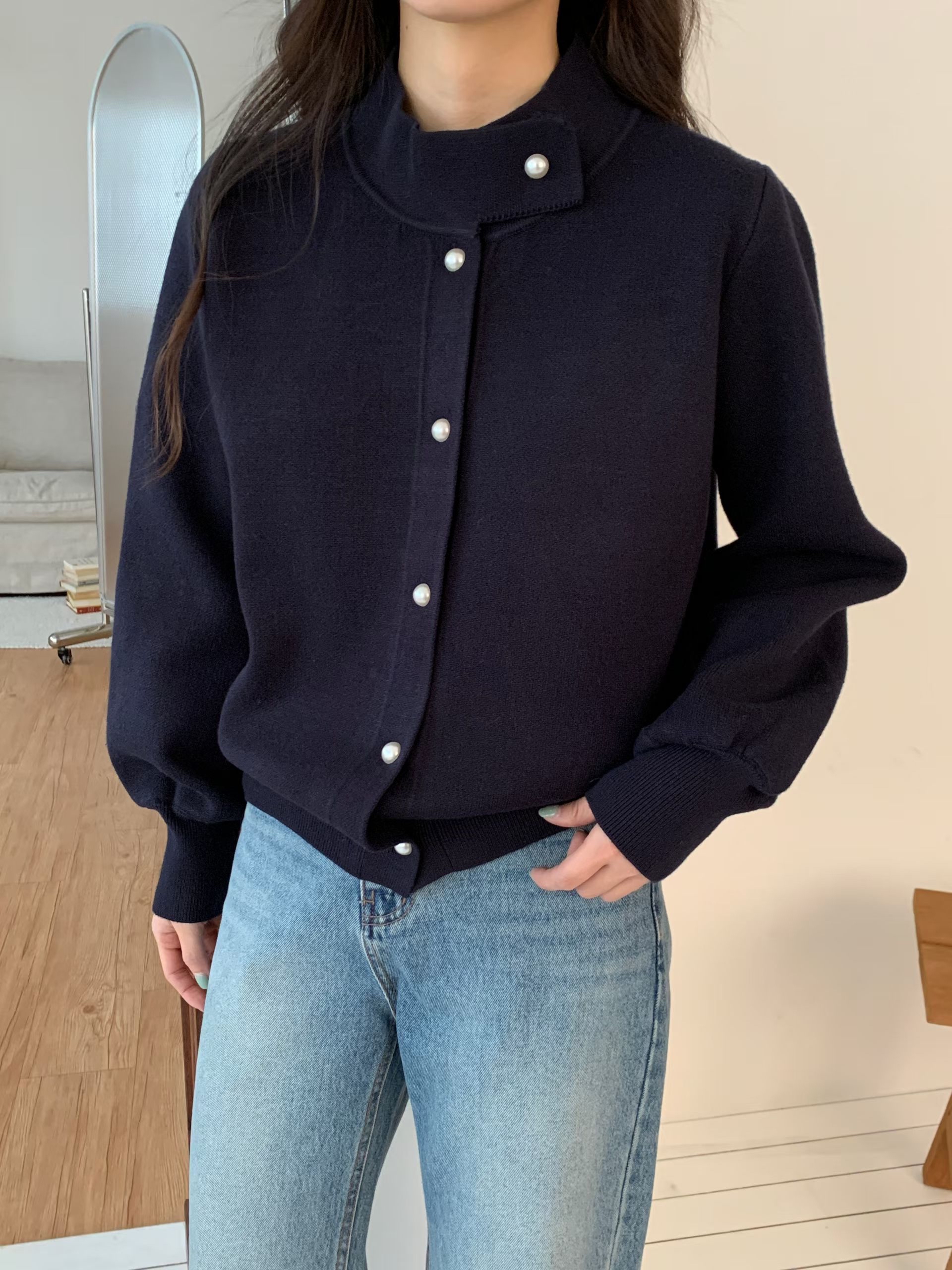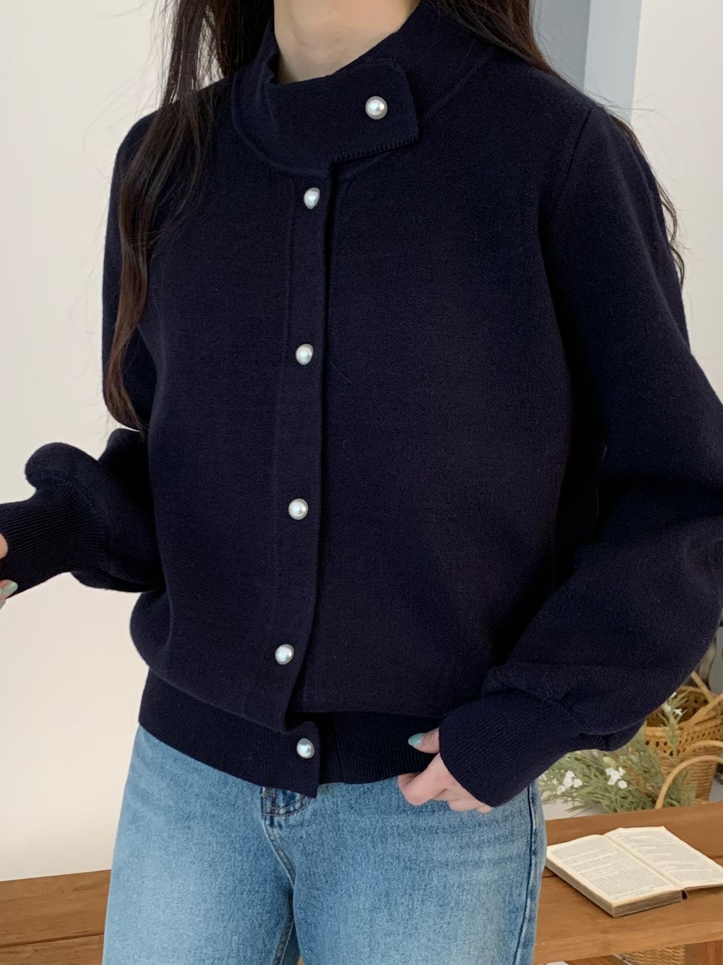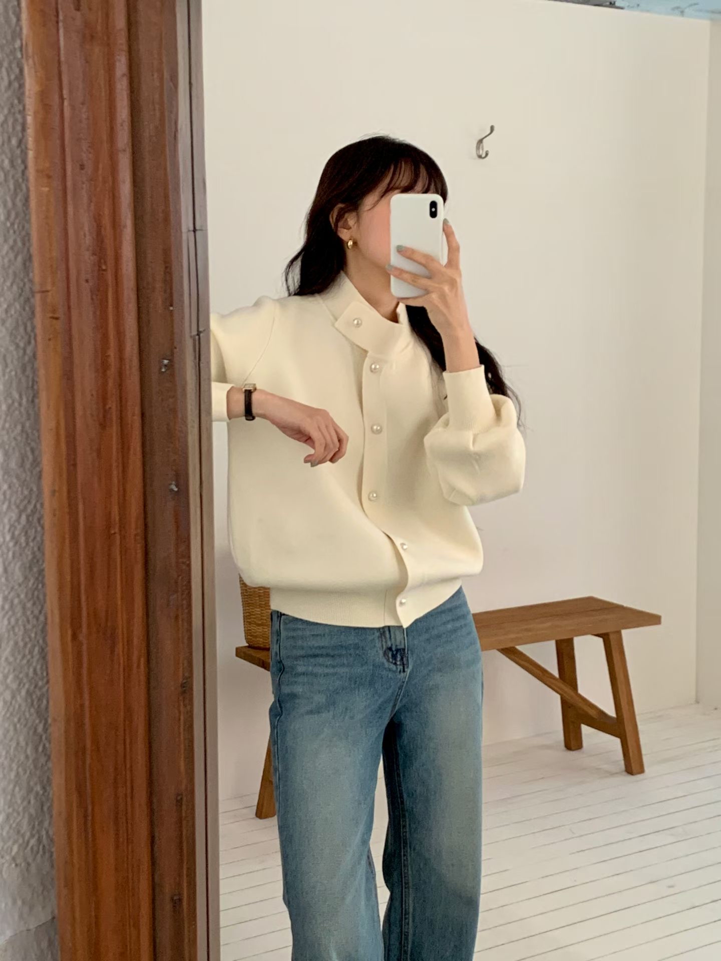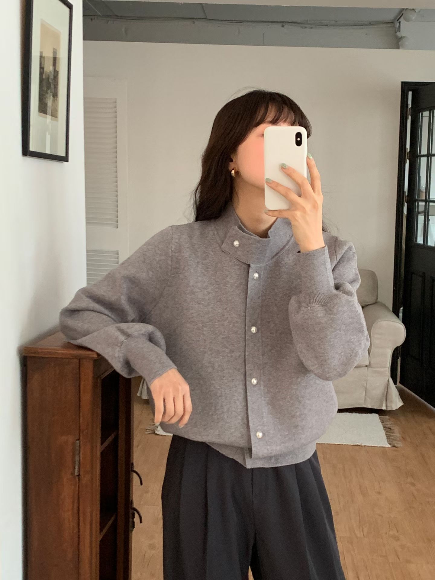 CT02 高領滑身針織外套 3色 米/灰/深藍 Chest 44-54" length 23.5"
