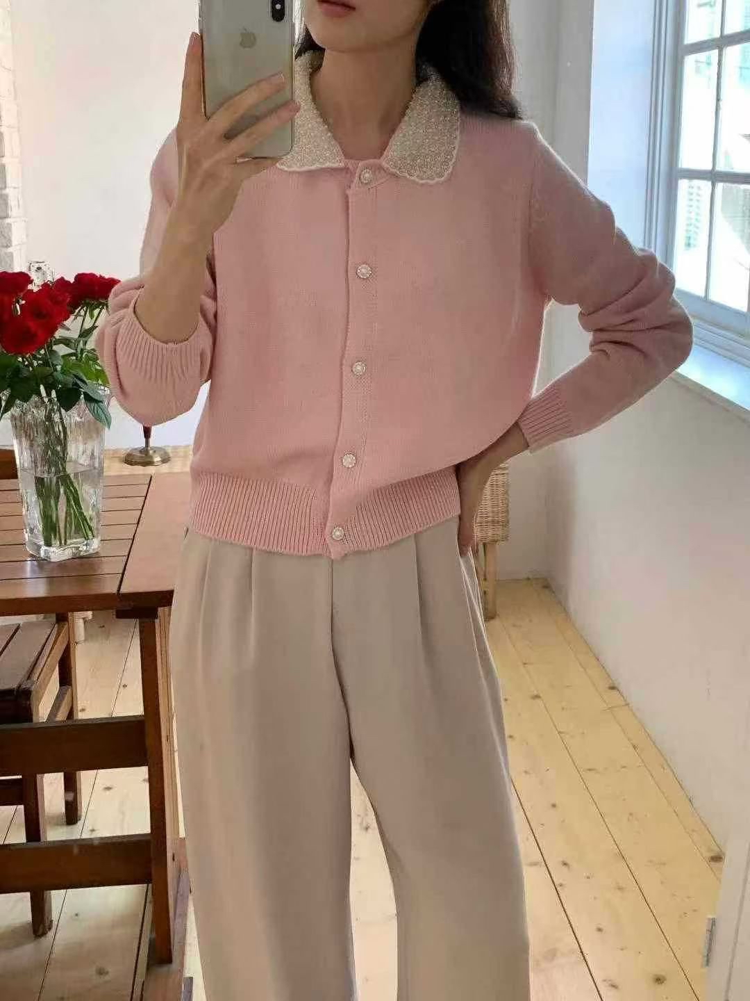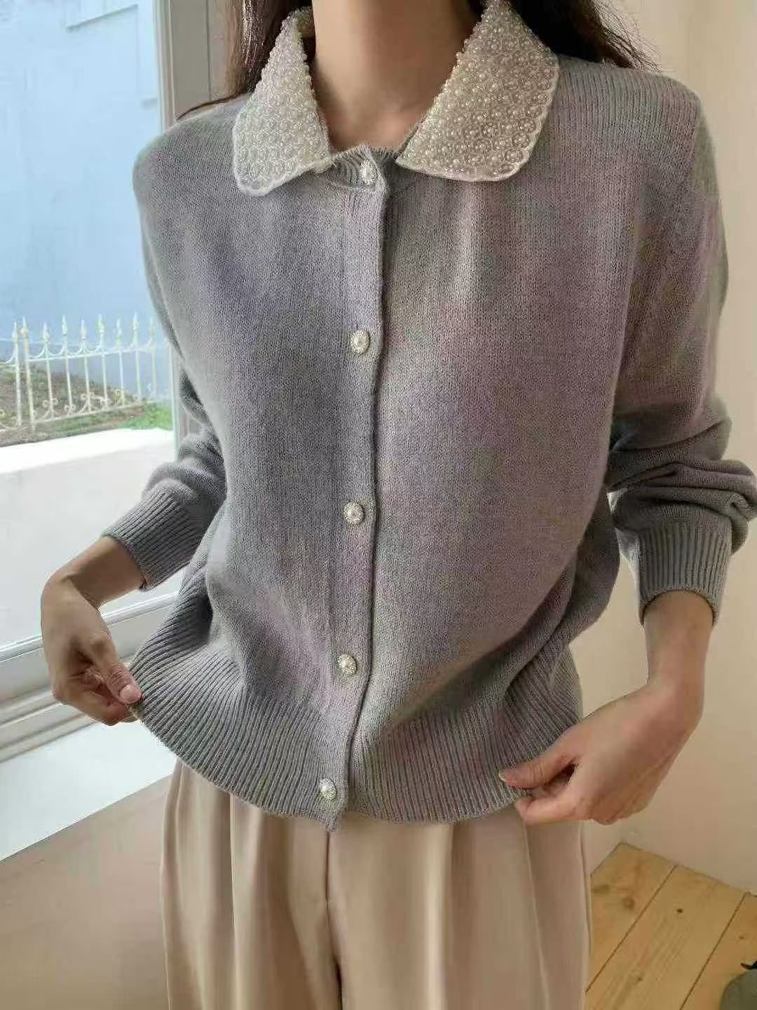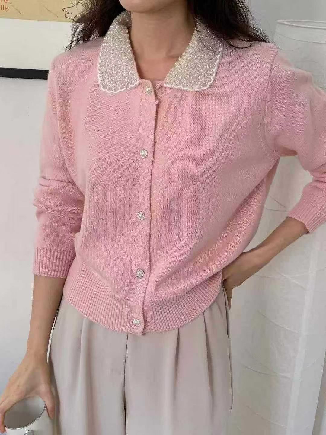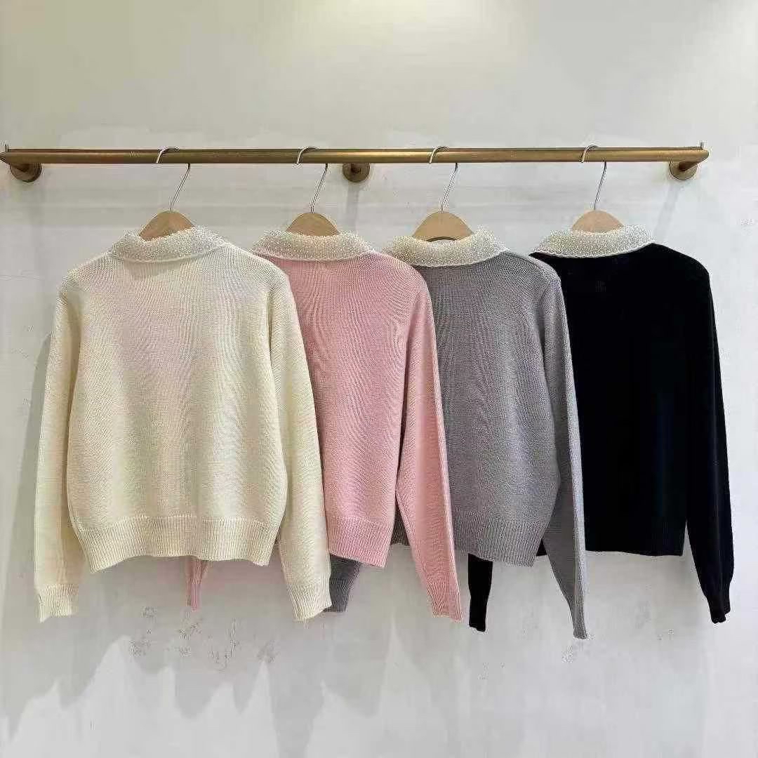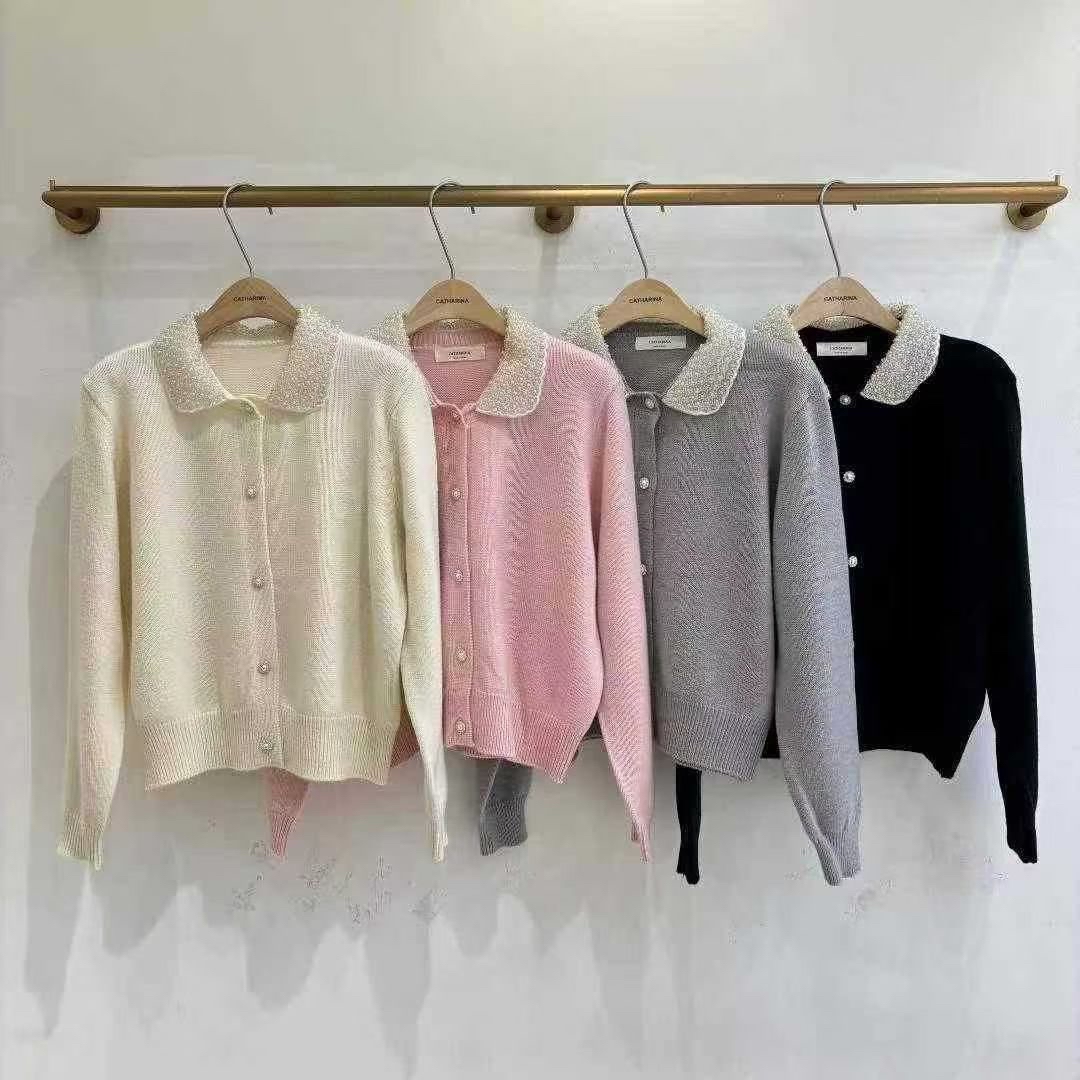 CT04 珍珠領Cardigan 4色 米/粉/灰/黑 Chest 44" length 21.5"
