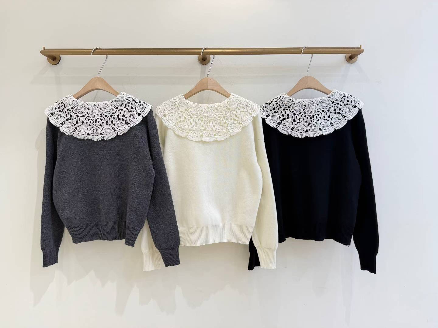 CT06 通花領Cardigan 3色 灰/米/黑 Chest 40-50" length 23"
