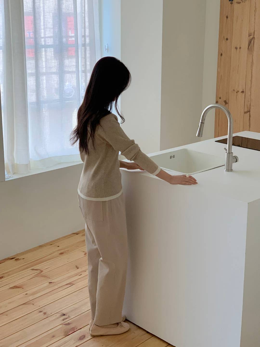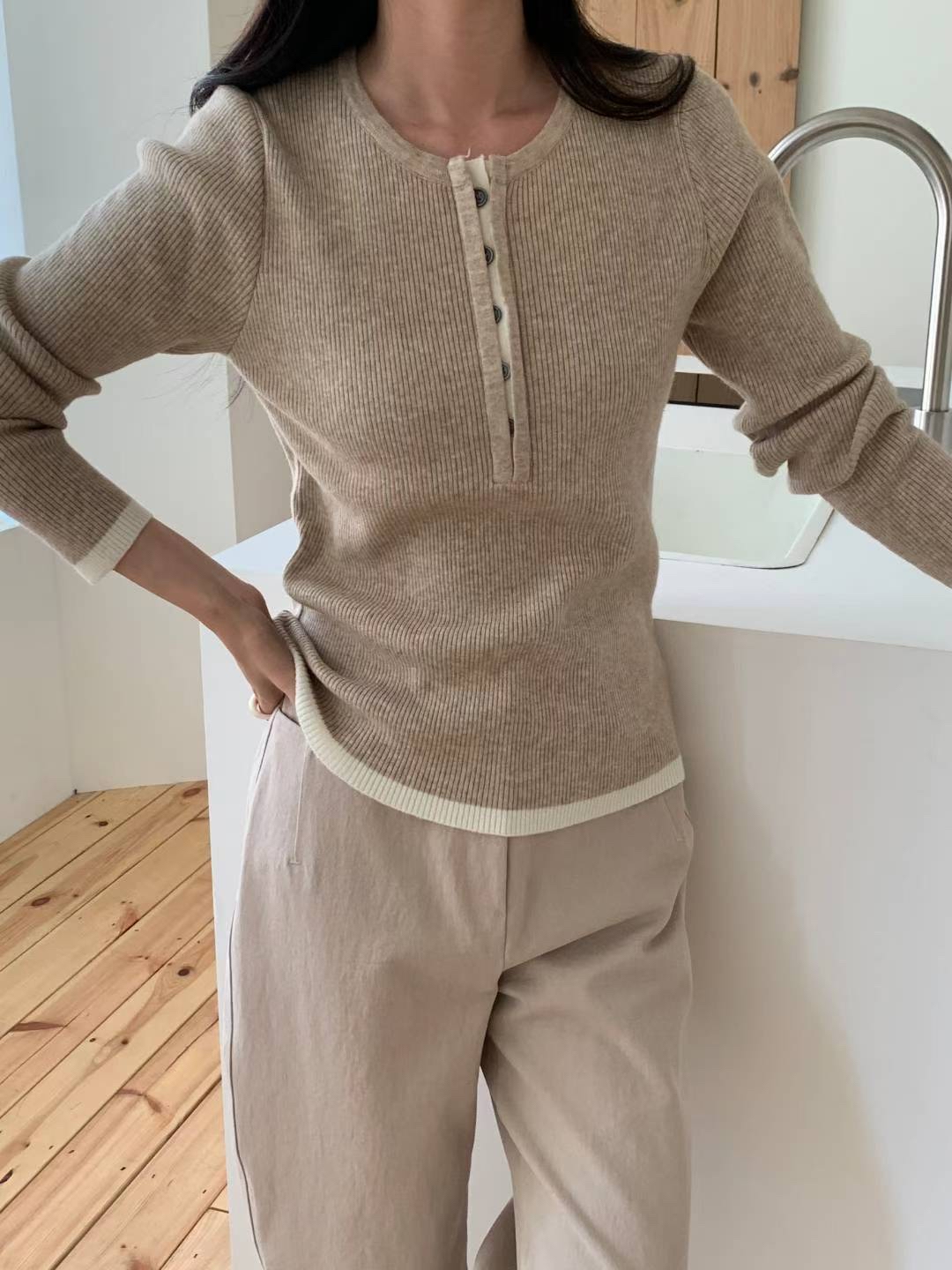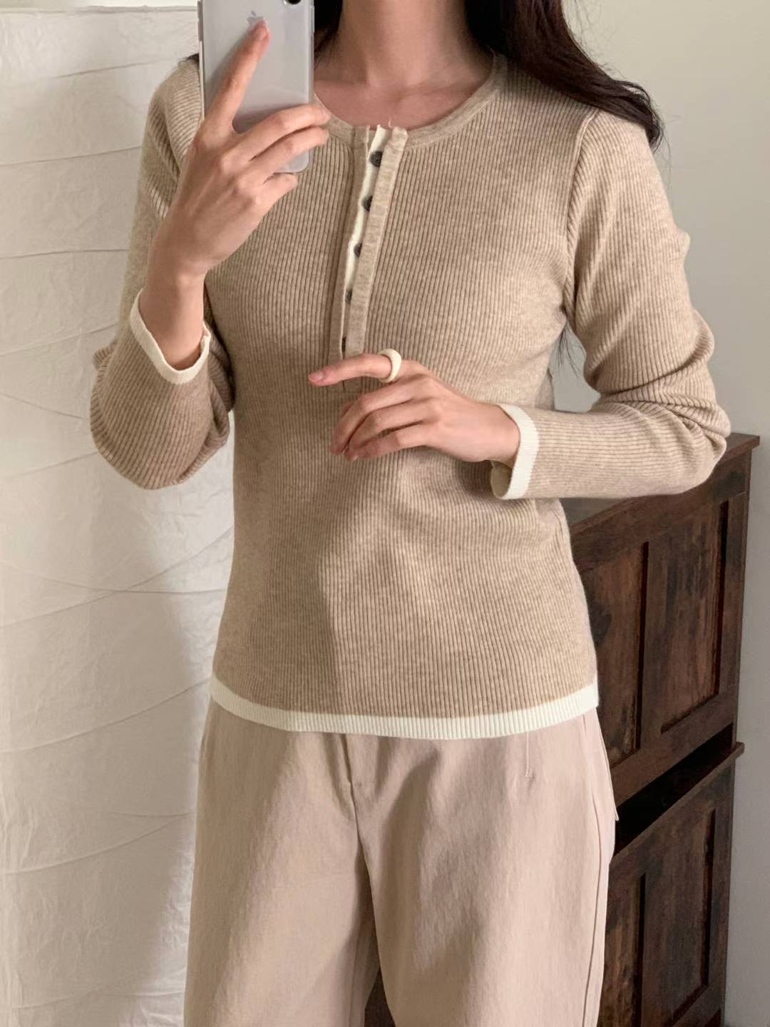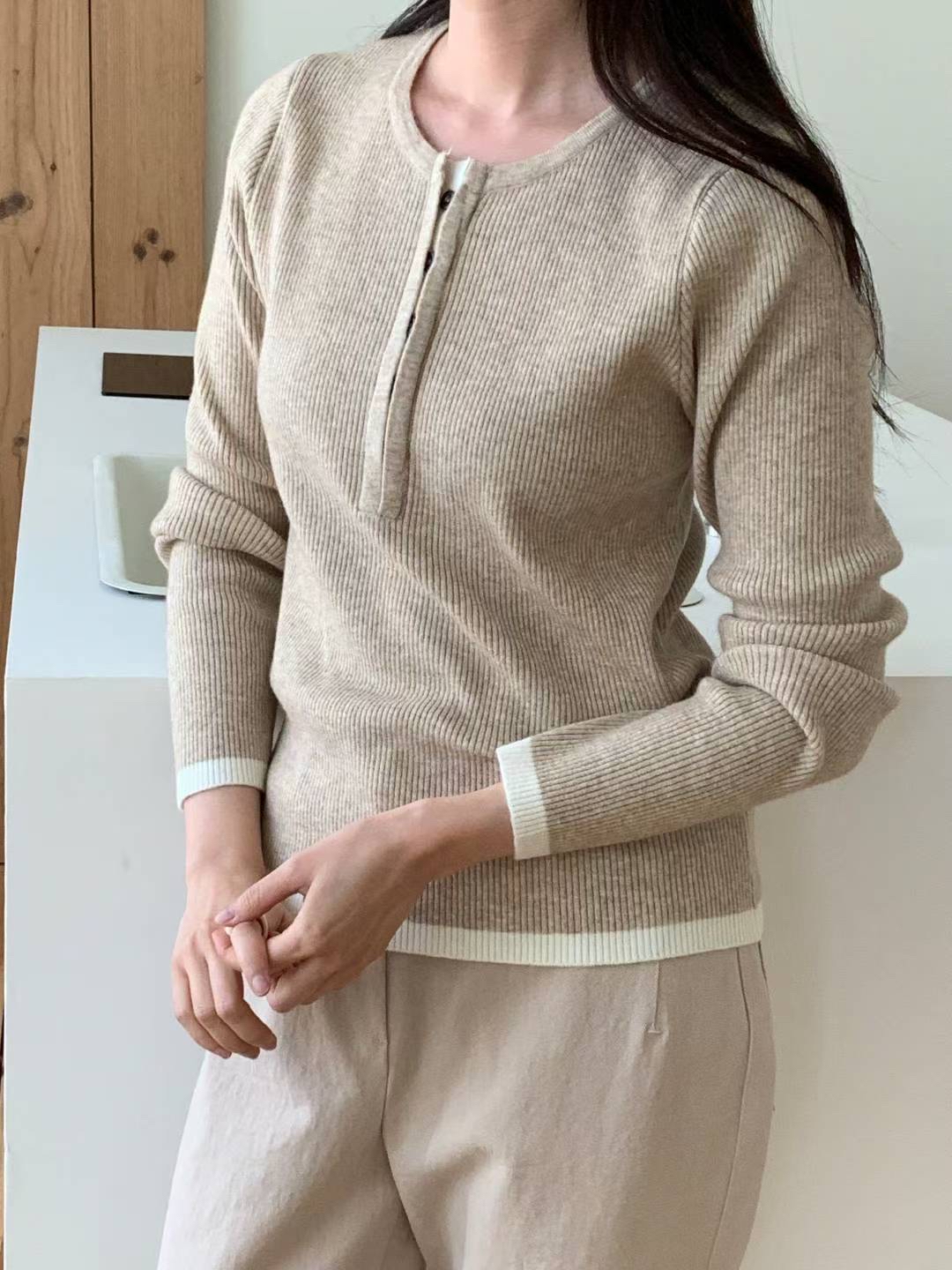 CT14 開鈕拼色針織Top