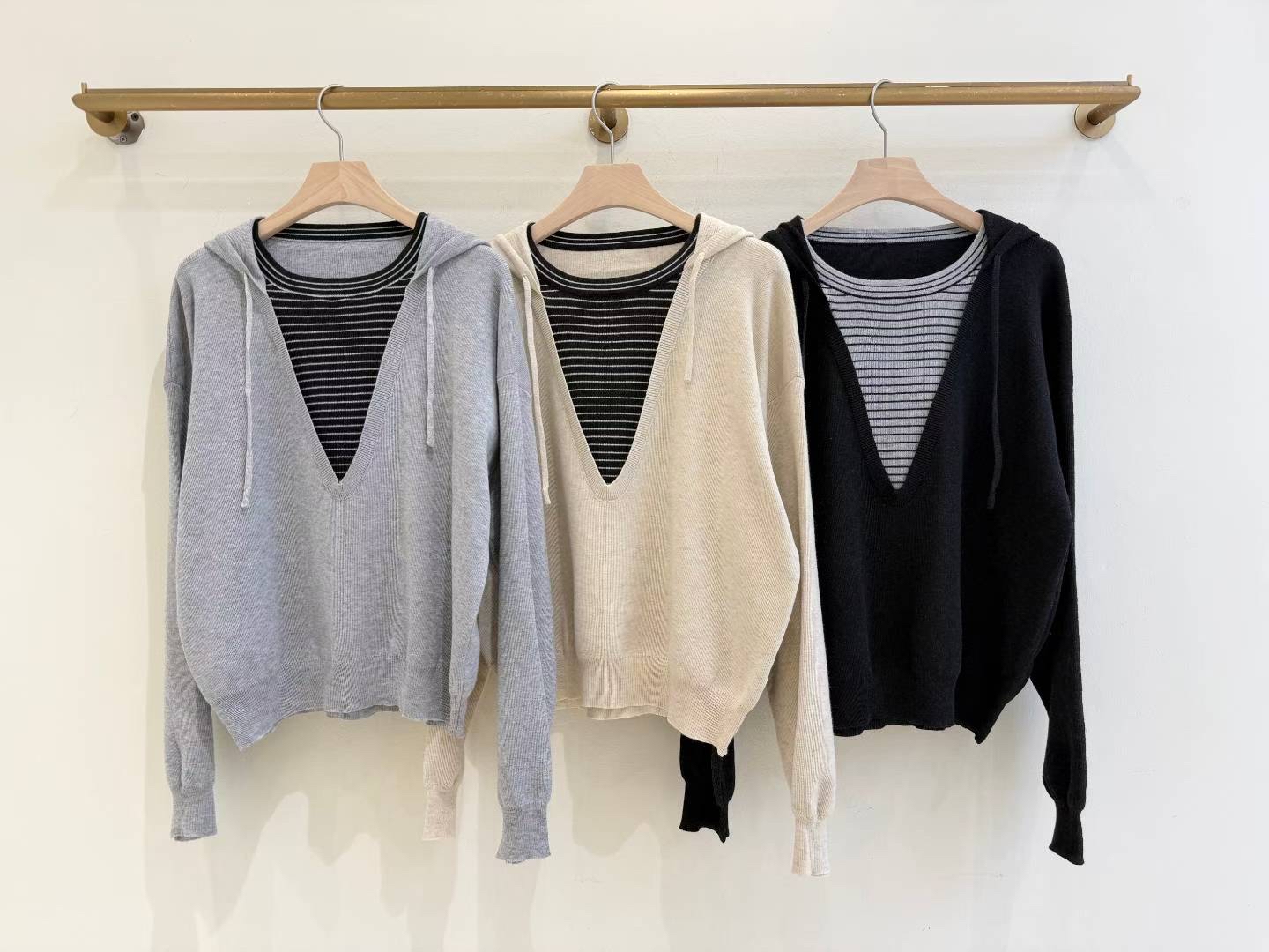 CT15 拼間條假2件Top 3色 灰/杏/黑 Chest 44" length 23.6"