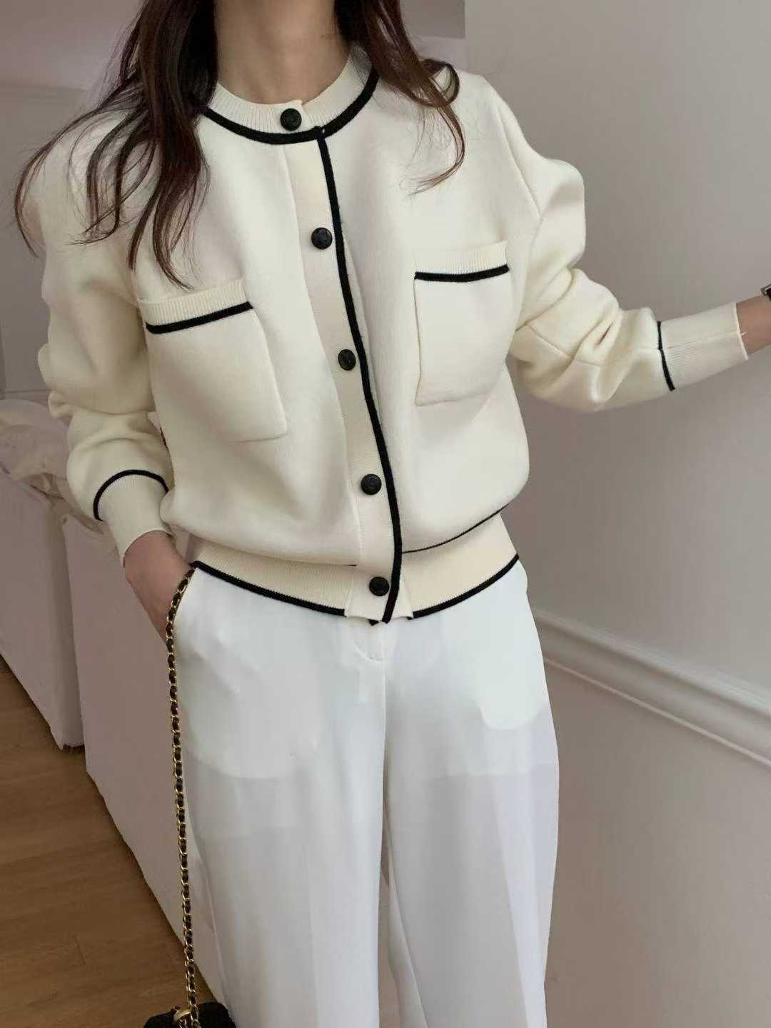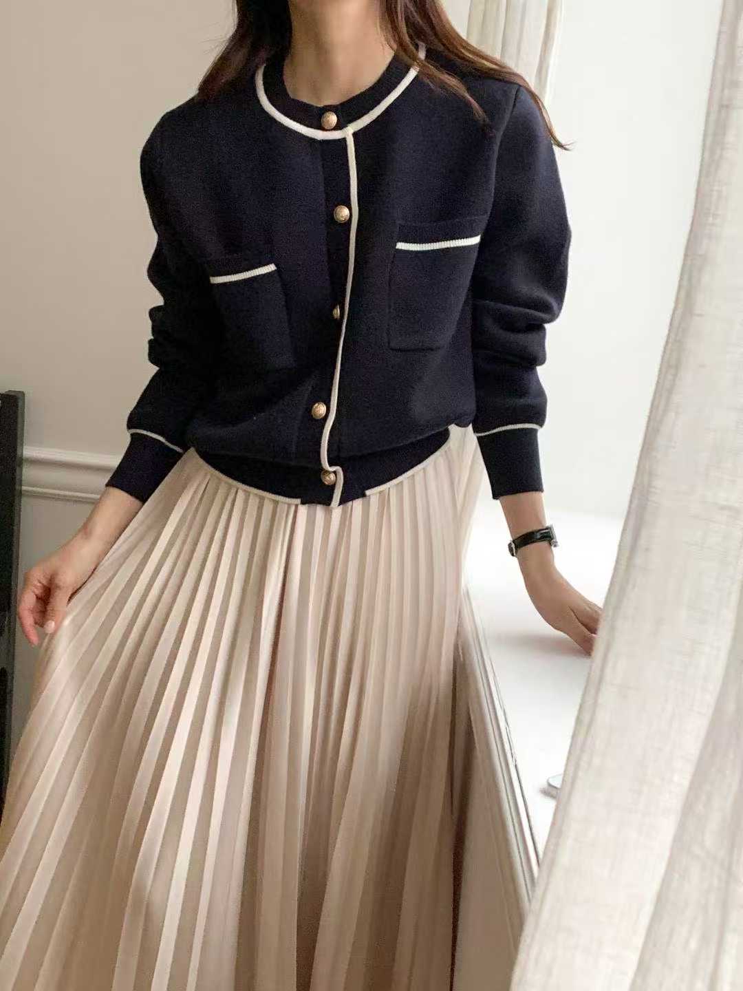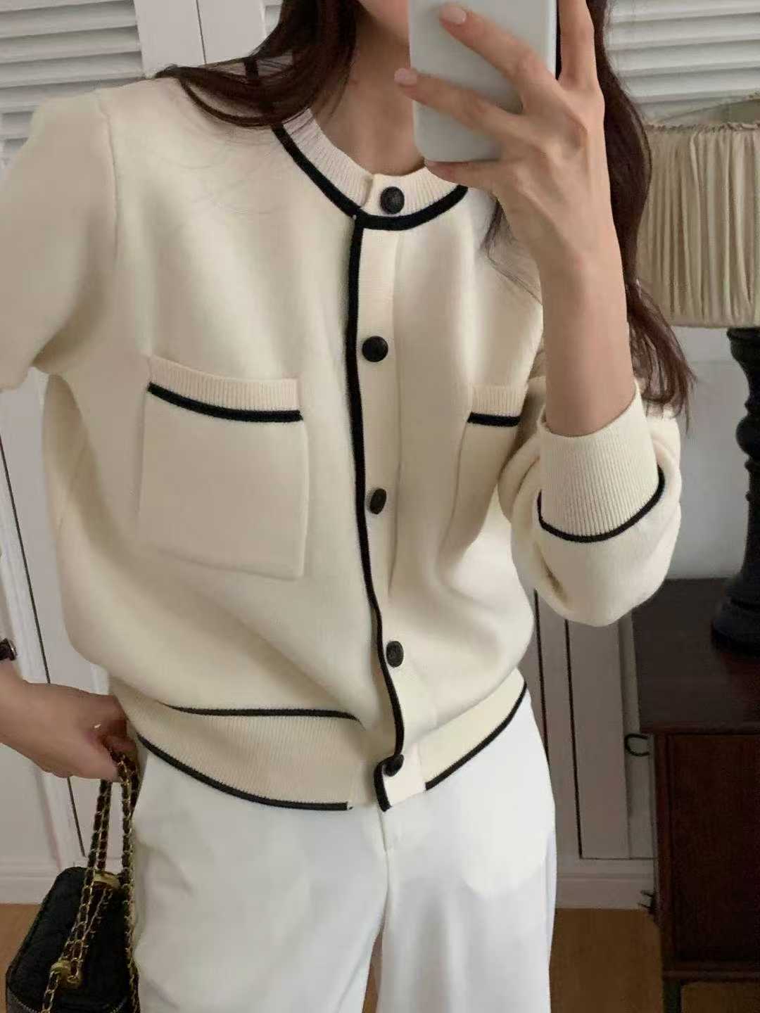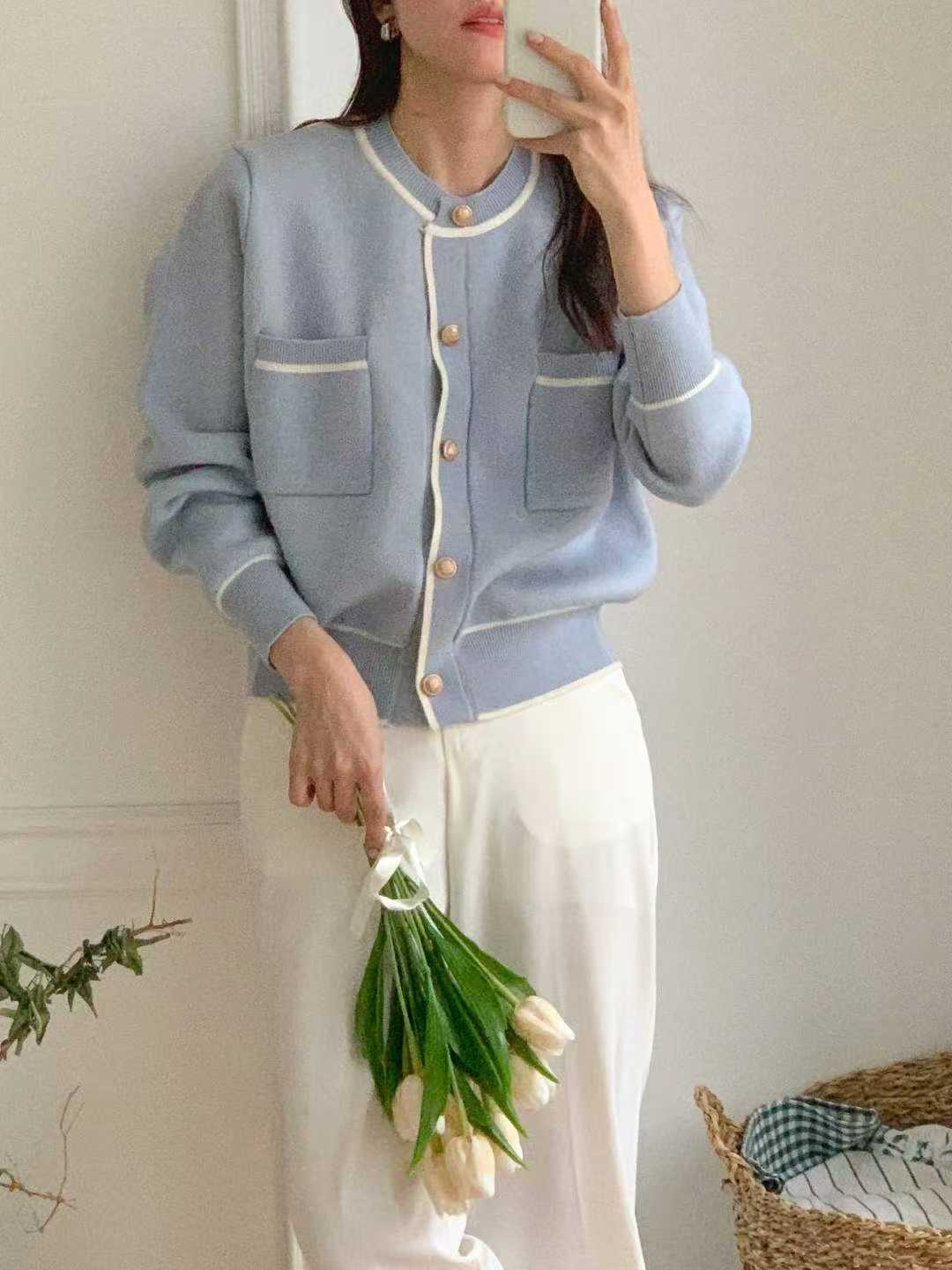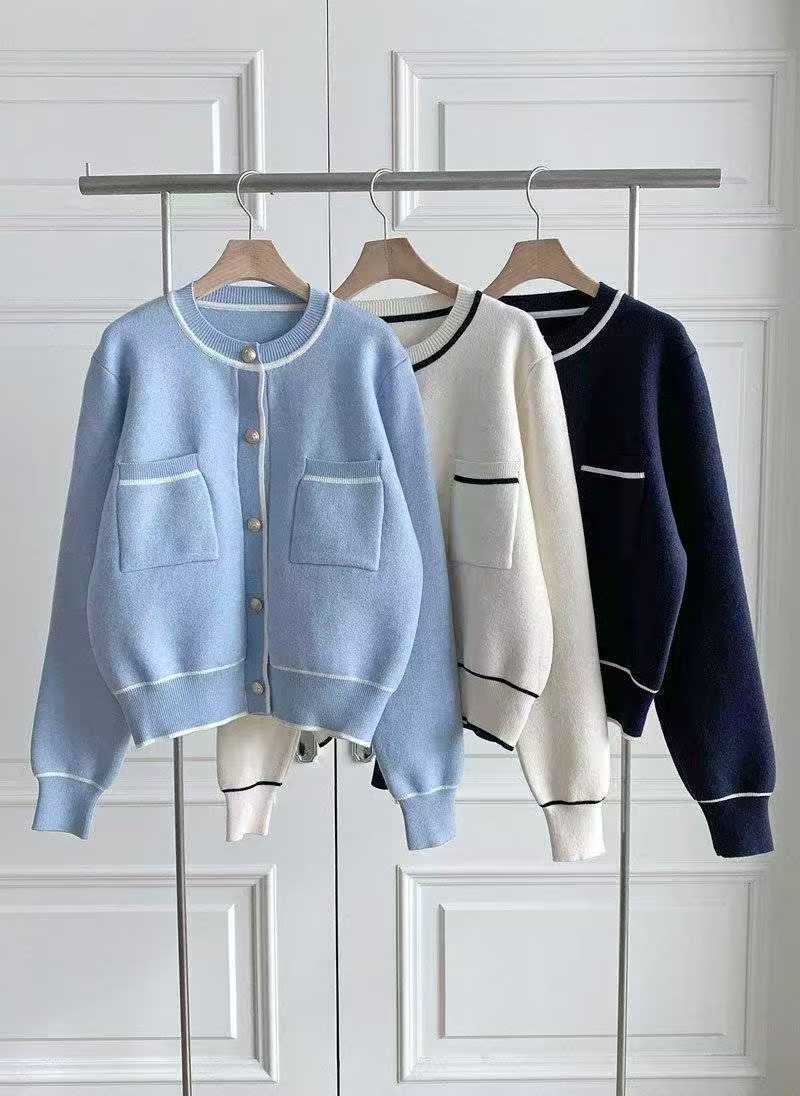 CT16 拼色邊淨色Cardigan 3色 淺藍/米/深藍 Chest 42" length 21.6"