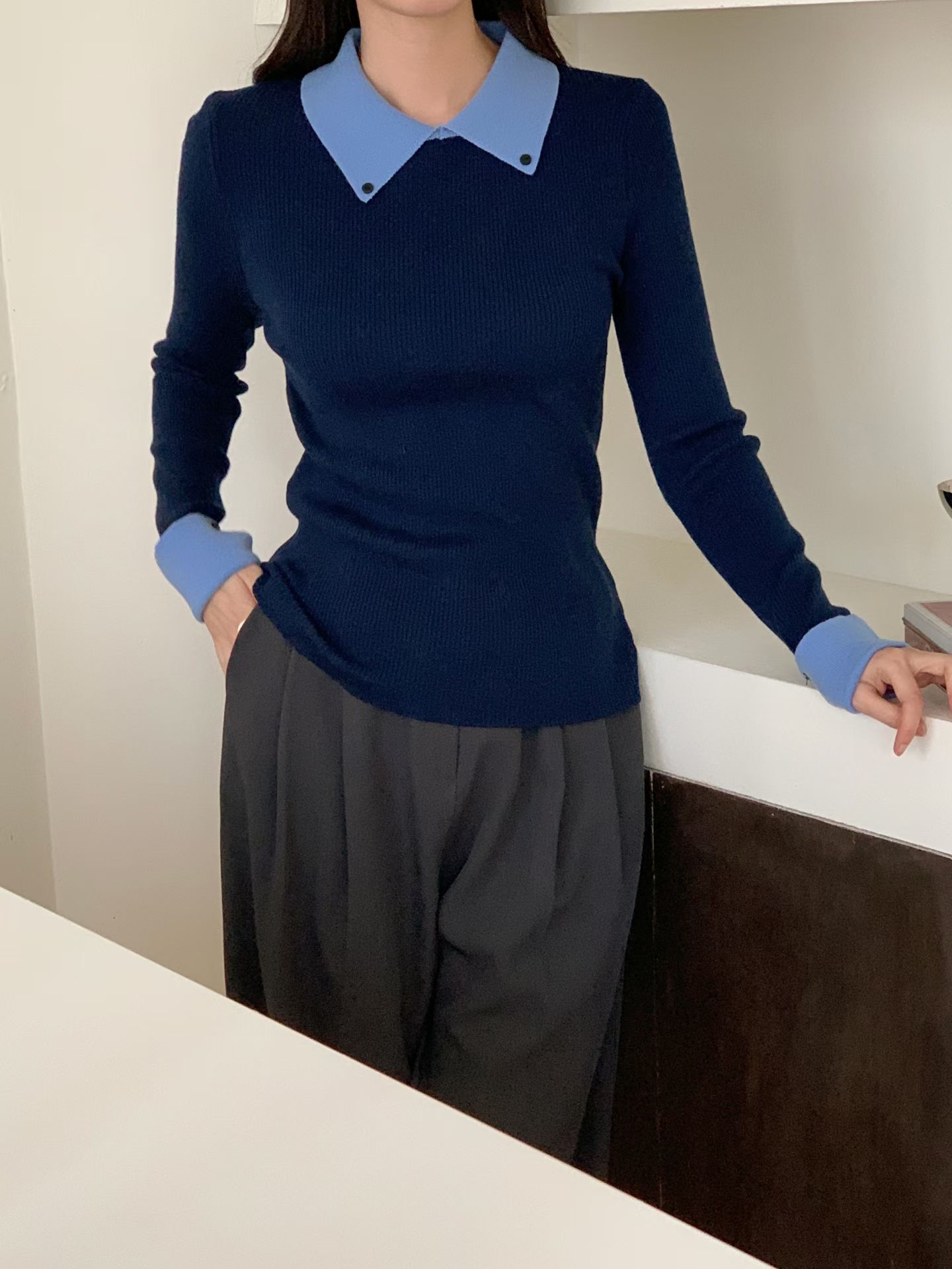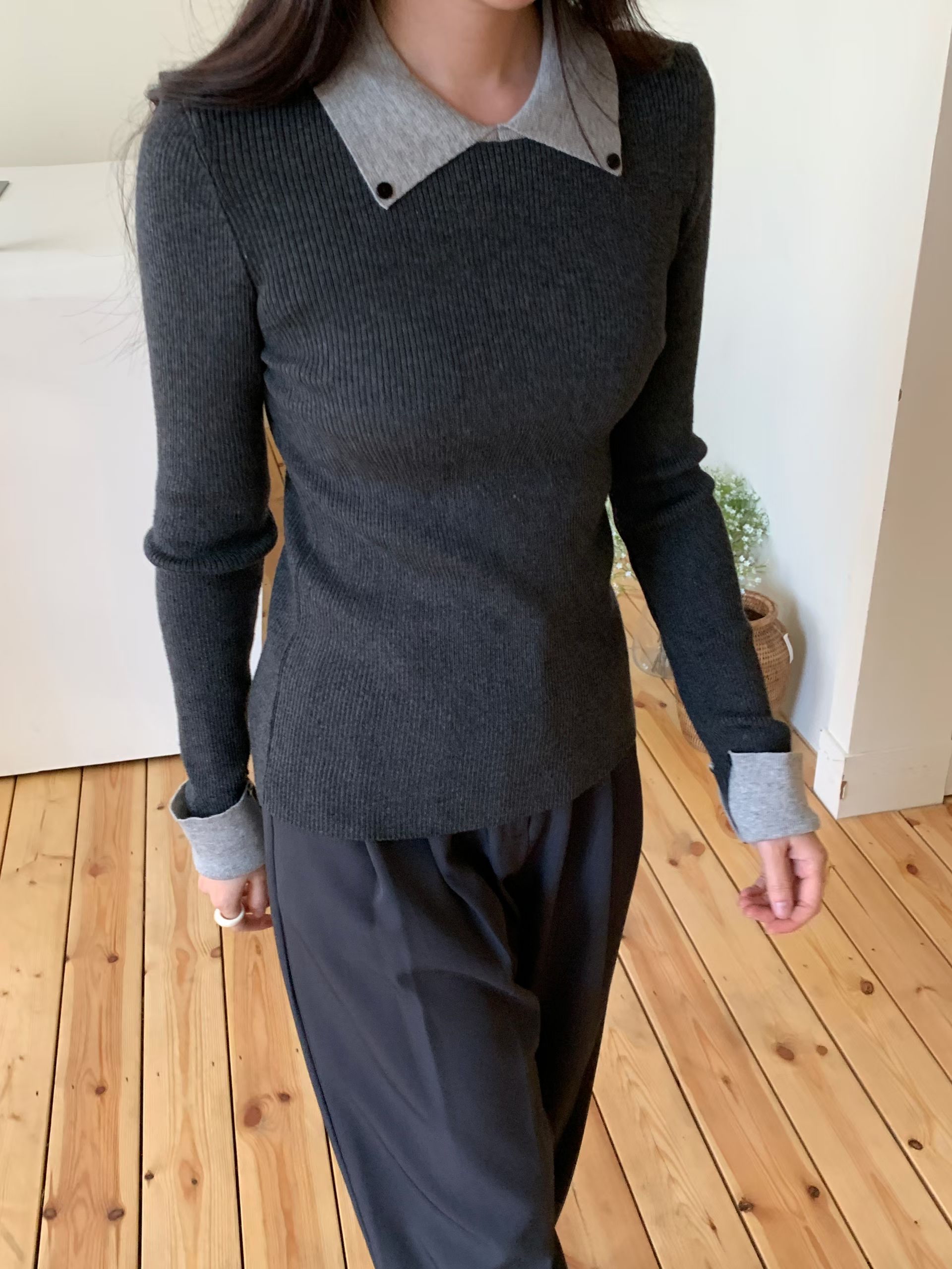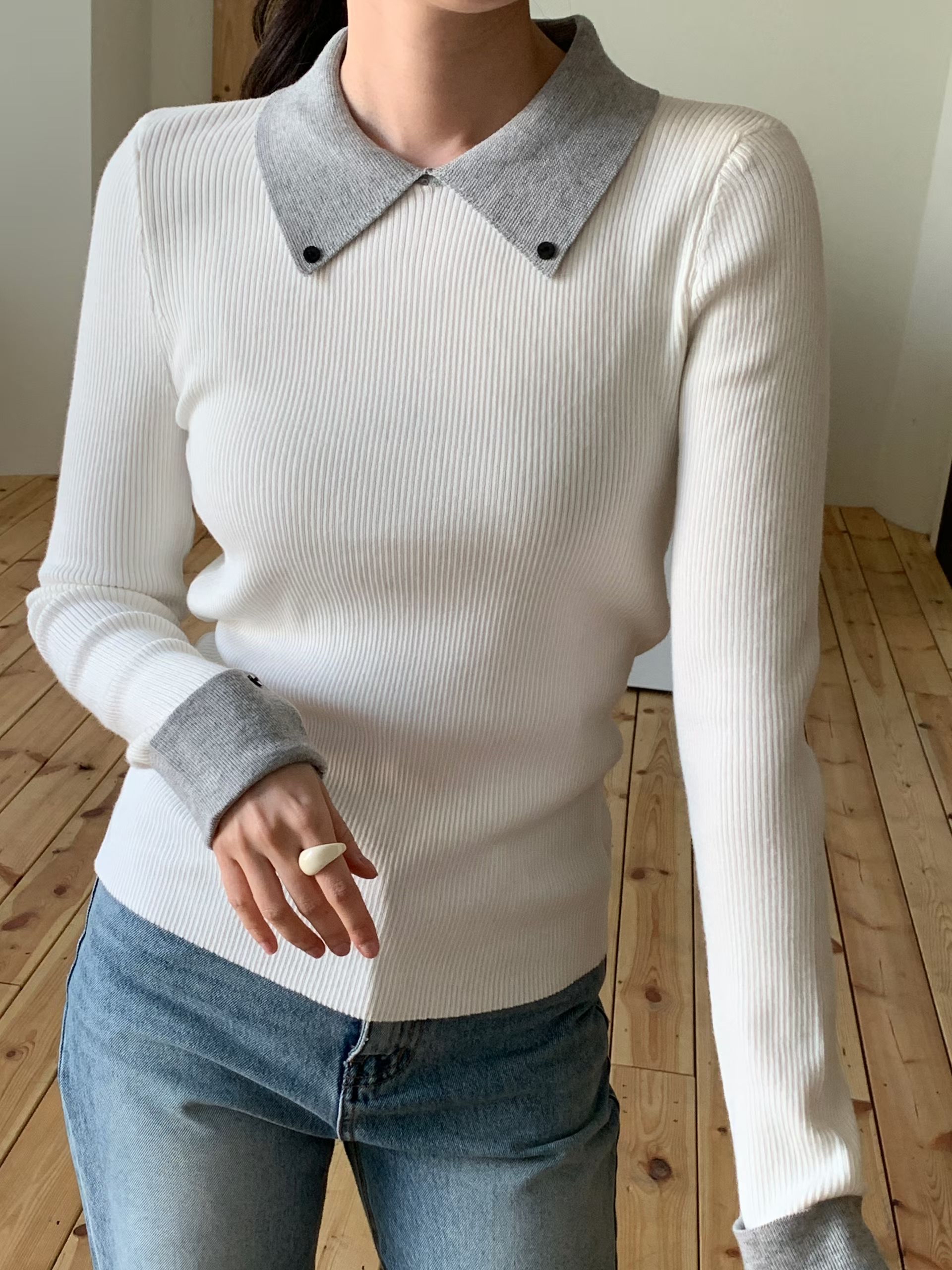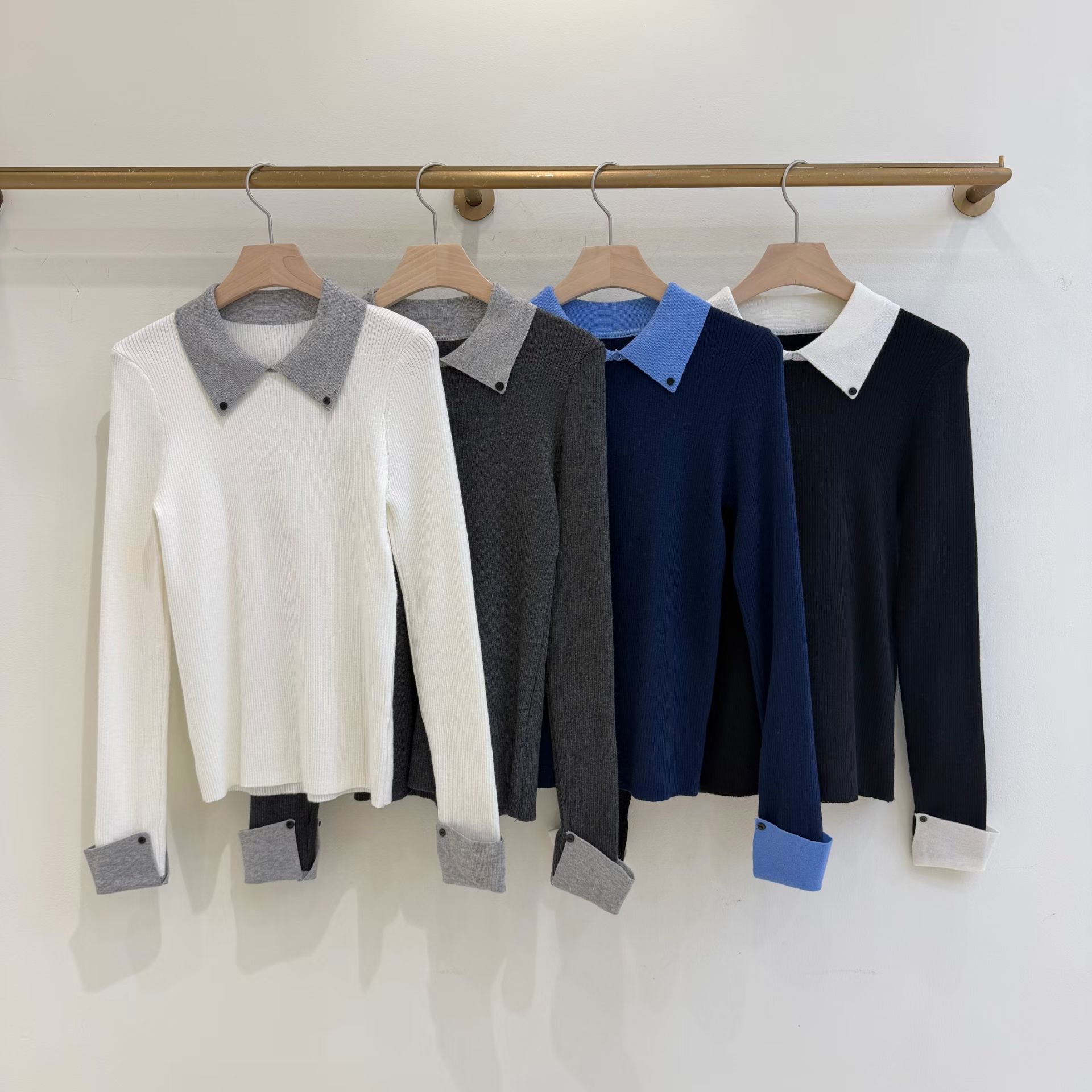 CT21 拼色領針織Top 4色 白/深灰/深藍/黑 Chest 28-44" length 23.2"