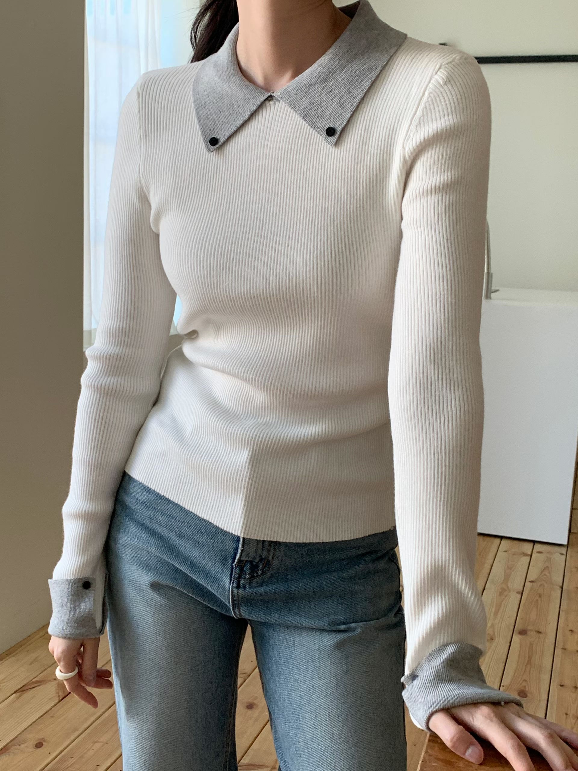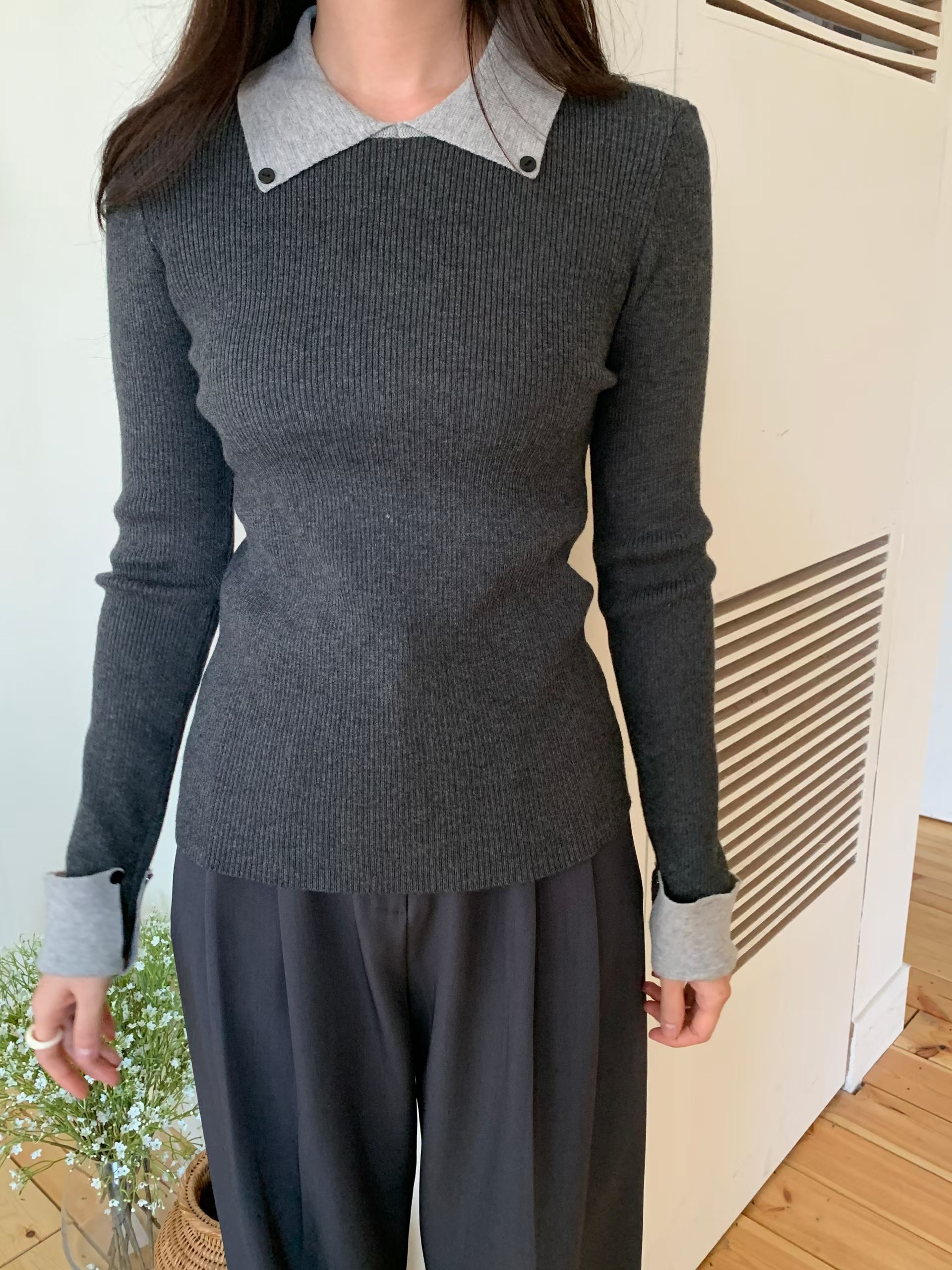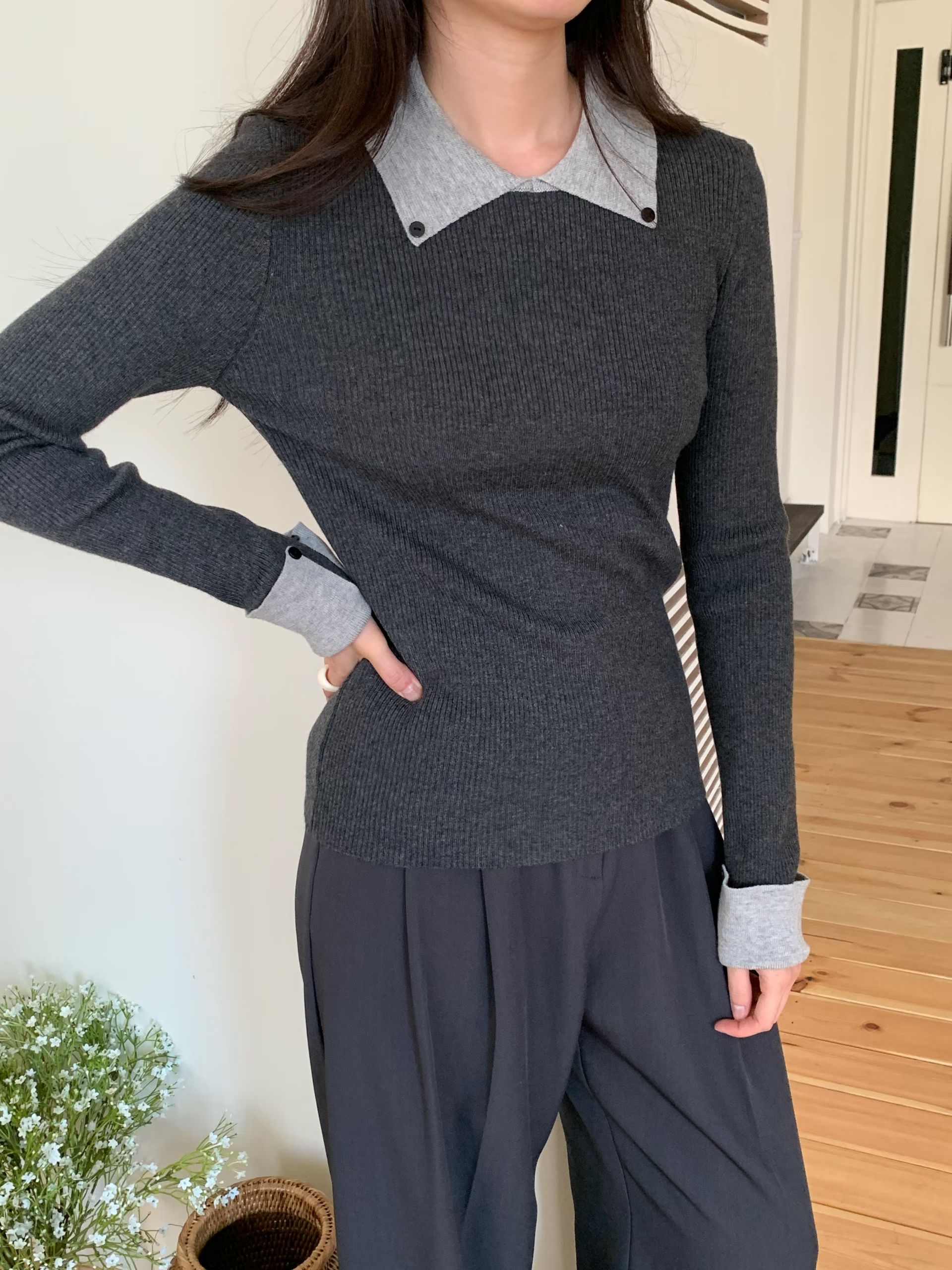 CT21 拼色領針織Top 4色 白/深灰/深藍/黑 Chest 28-44" length 23.2"