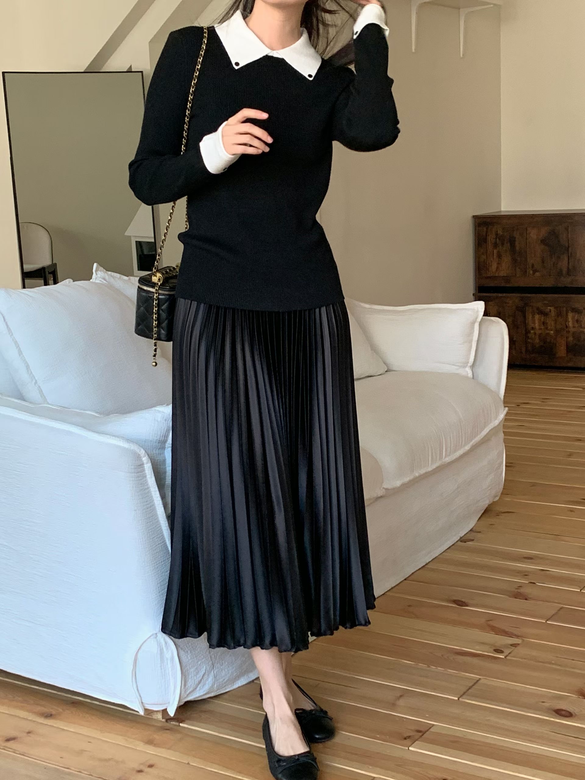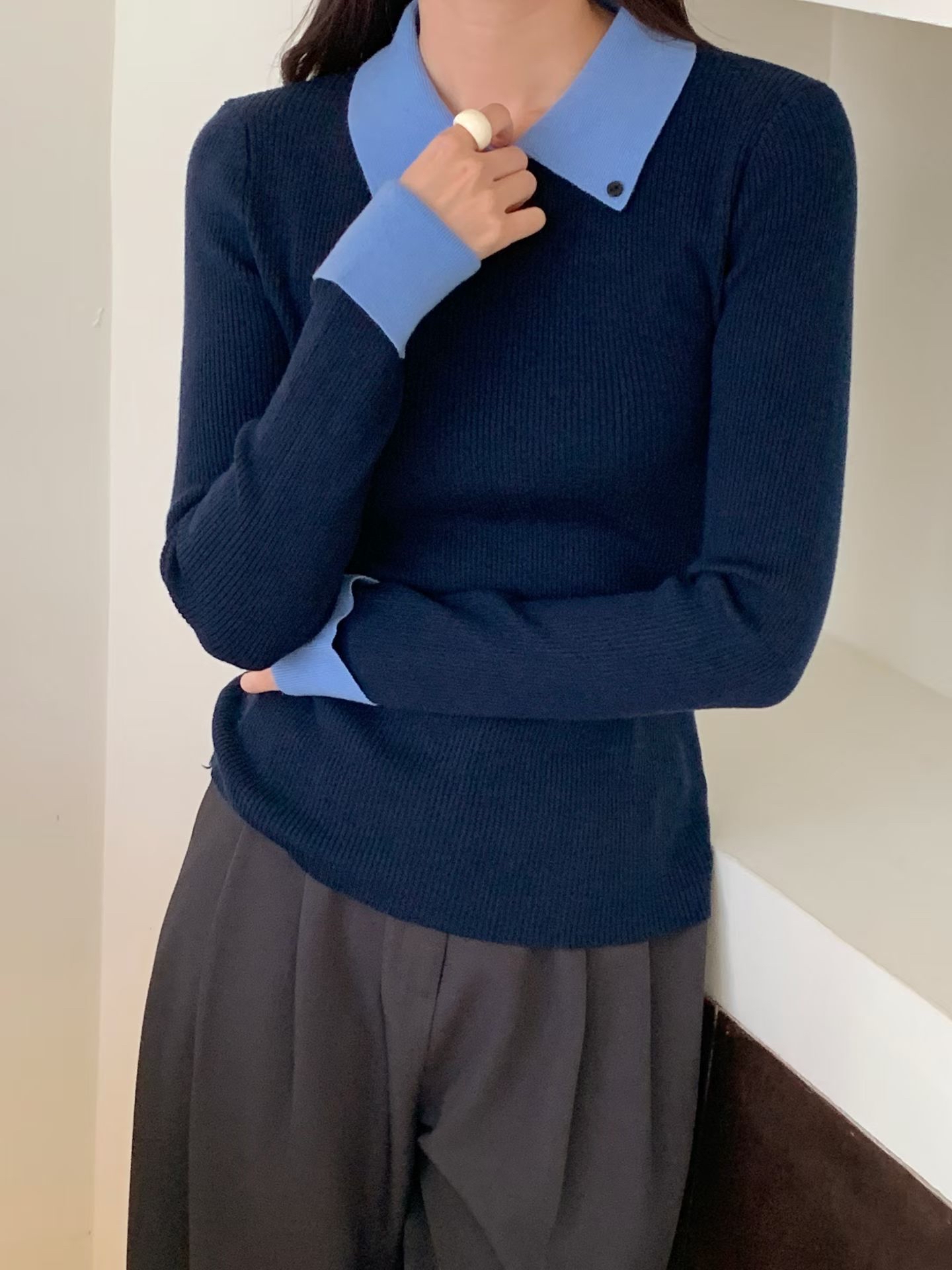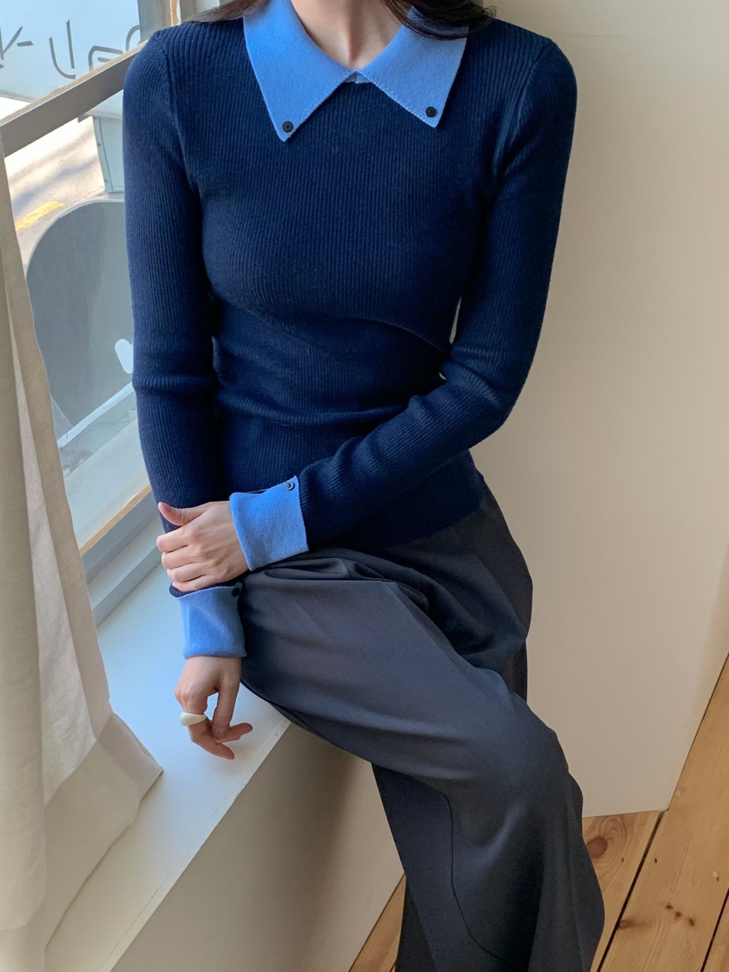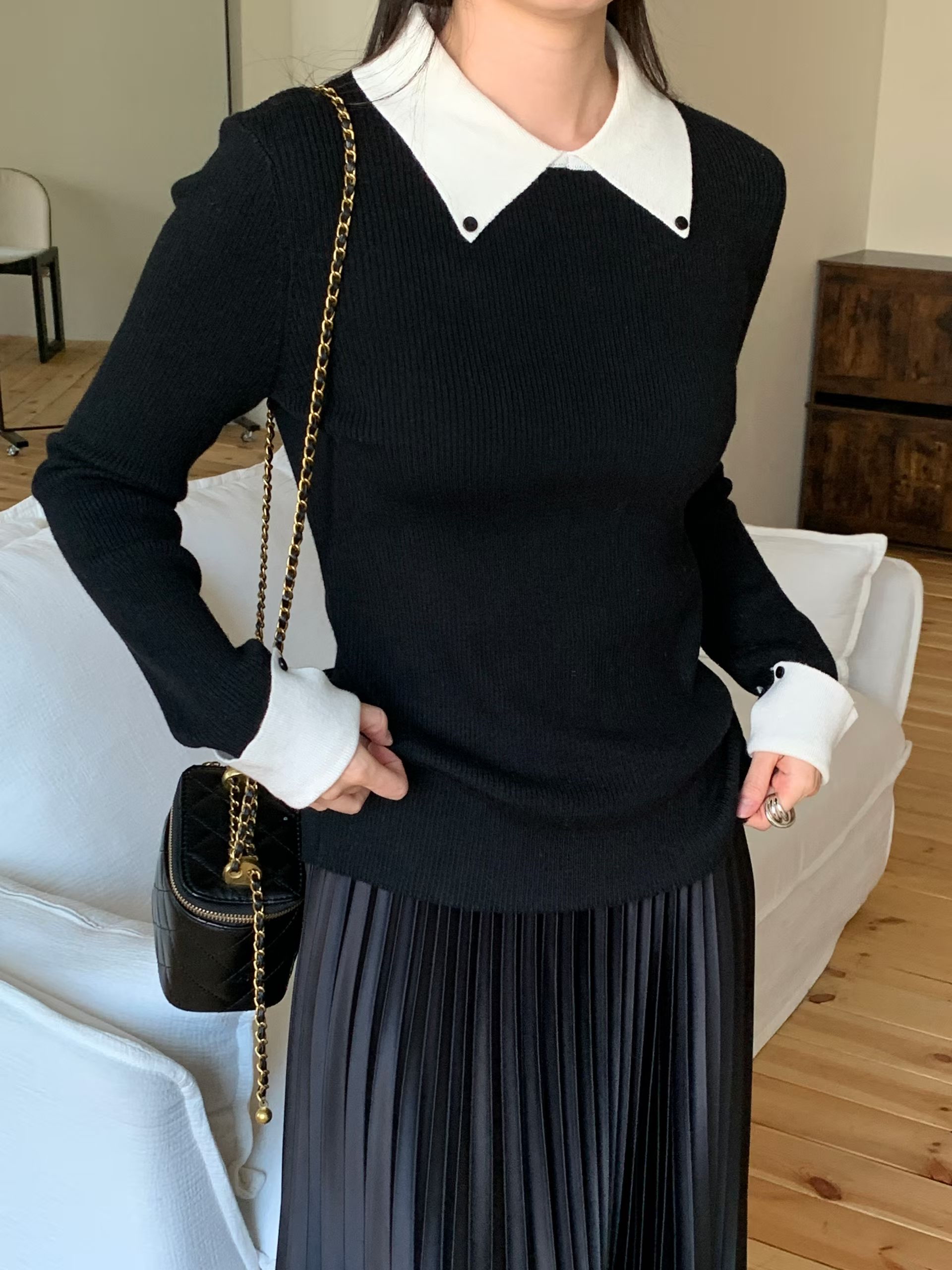 CT21 拼色領針織Top 4色 白/深灰/深藍/黑 Chest 28-44" length 23.2"