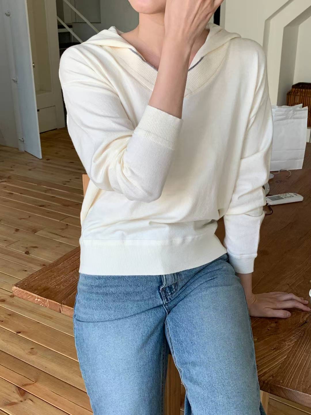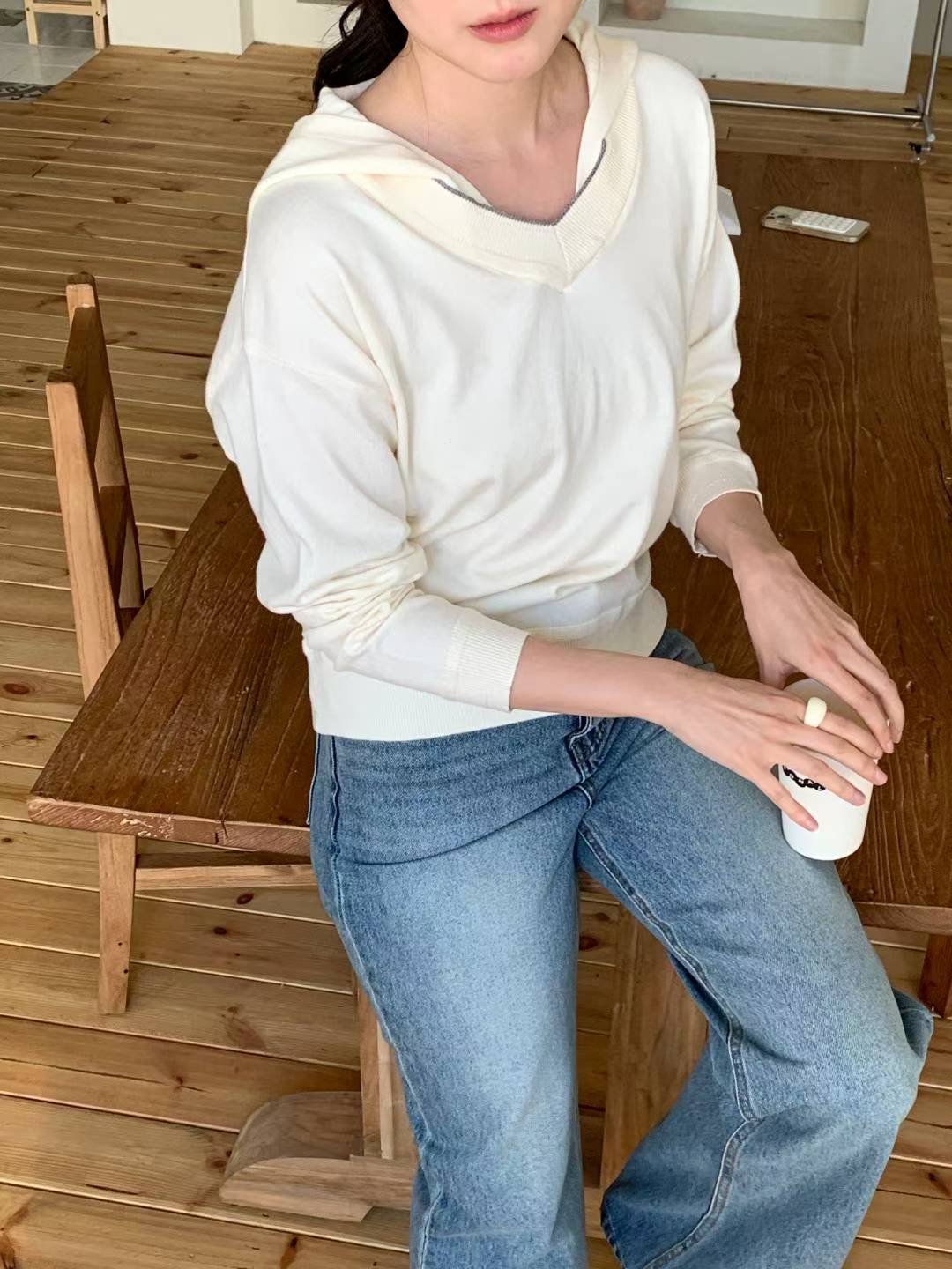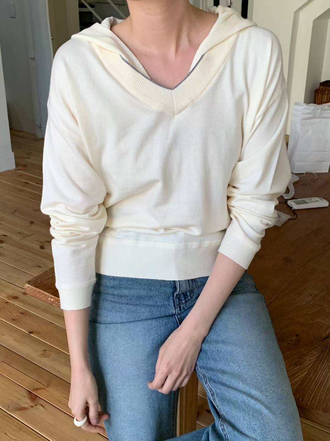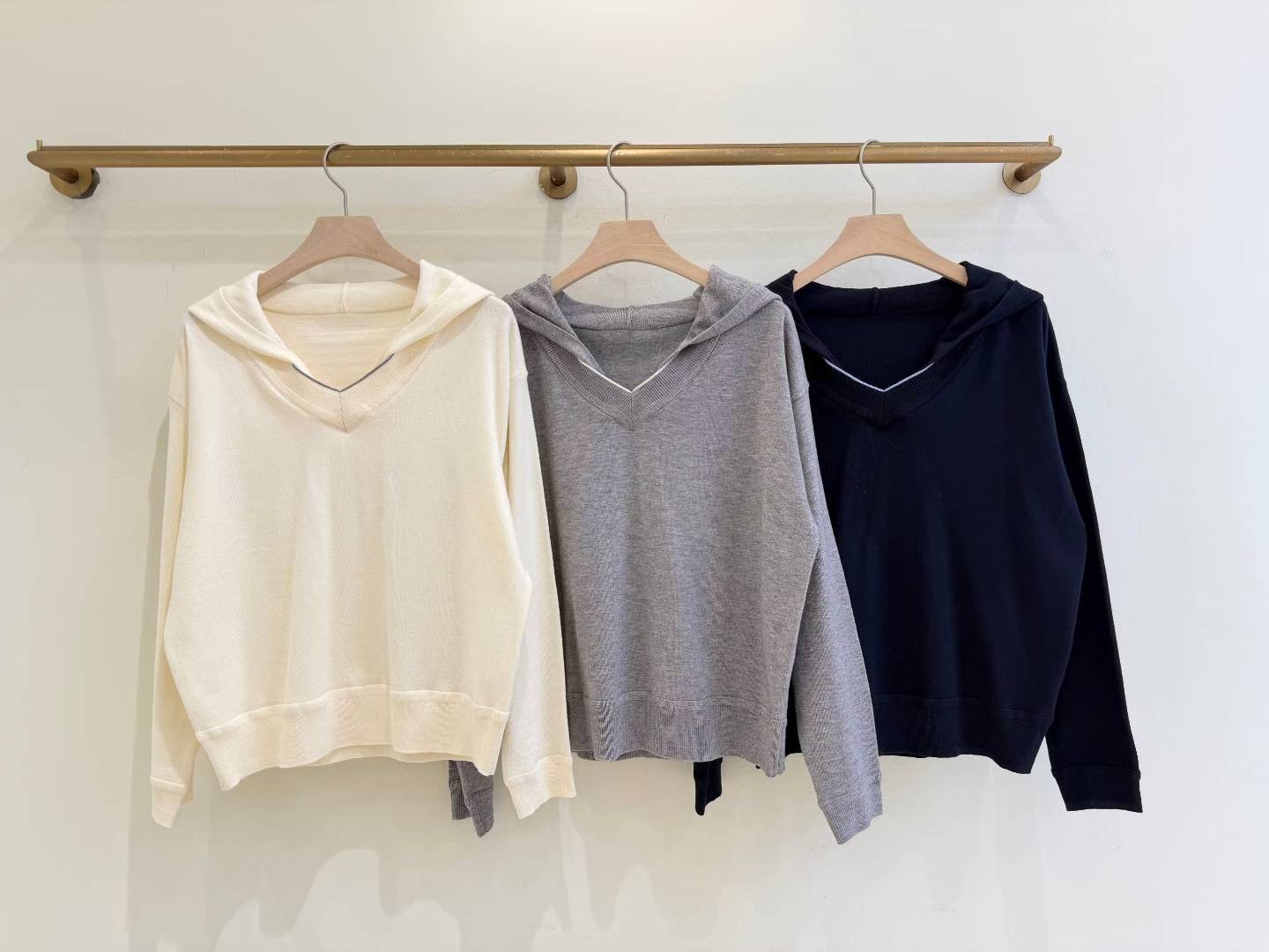 CT25 v領有帽針織Top 3色 米/灰/深藍 Chest 42" length 23.5"