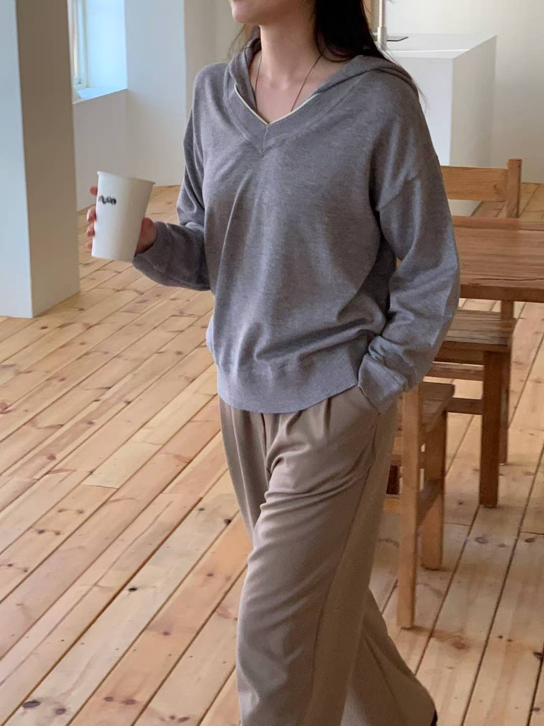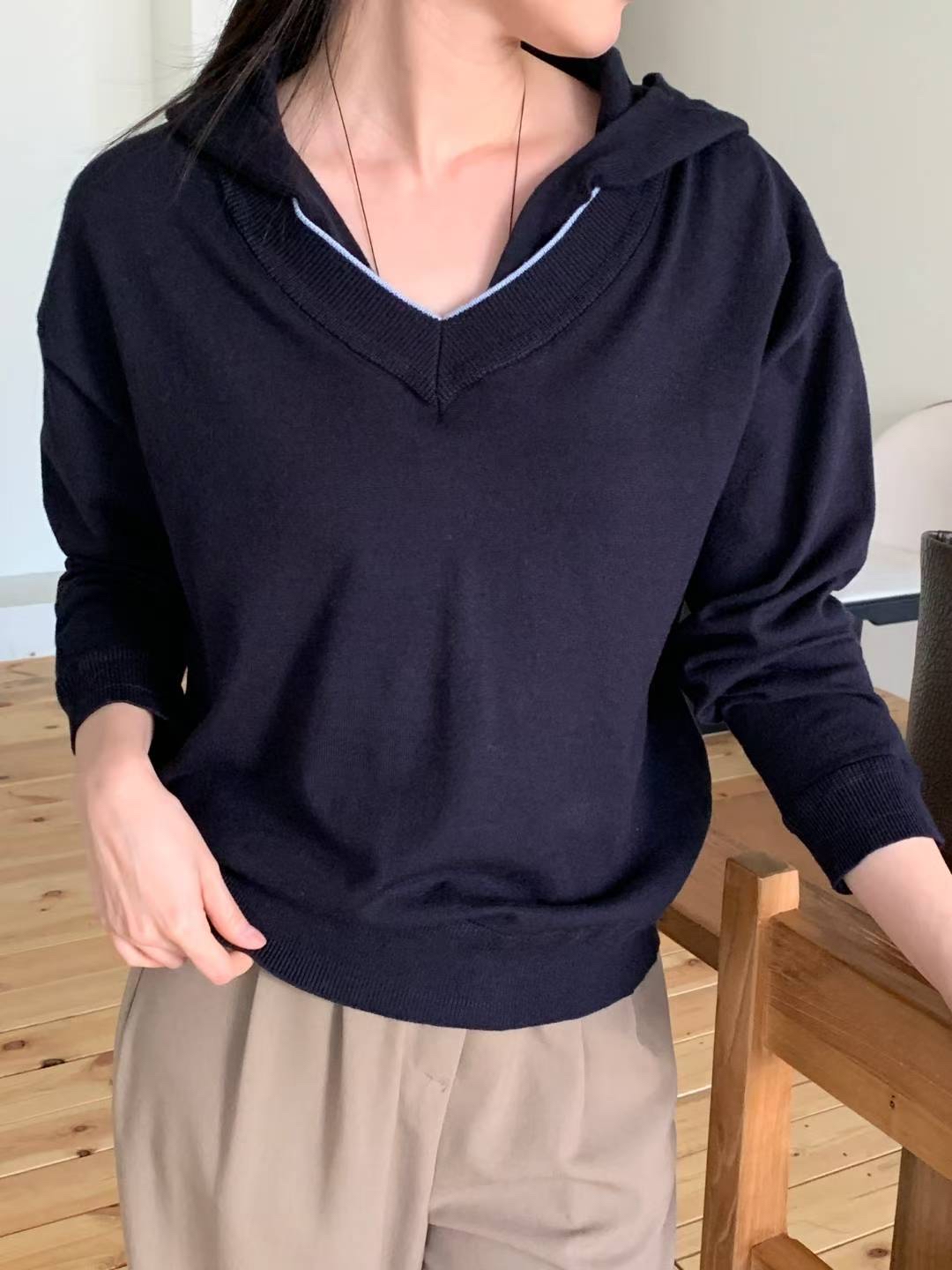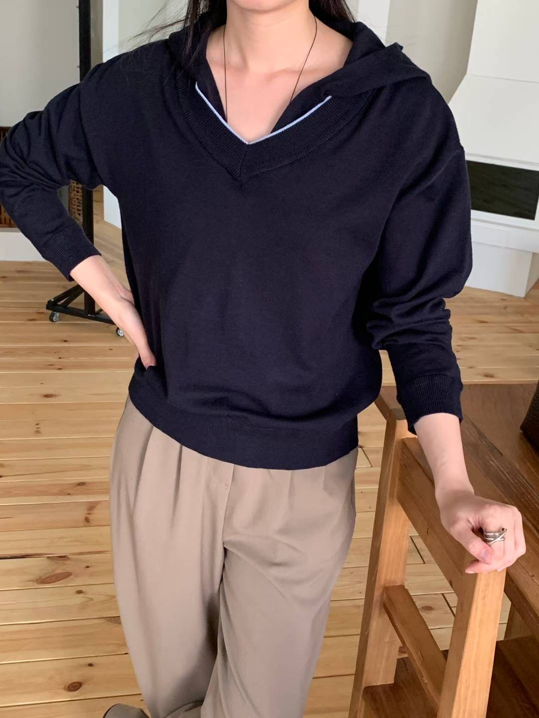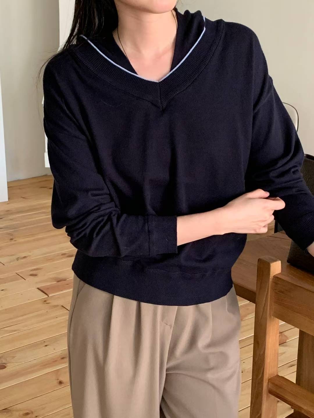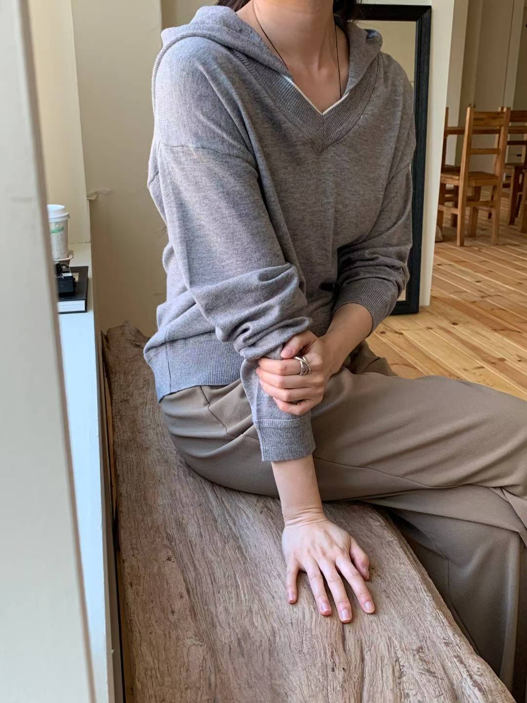CT25 v領有帽針織Top 3色 米/灰/深藍 Chest 42" length 23.5"