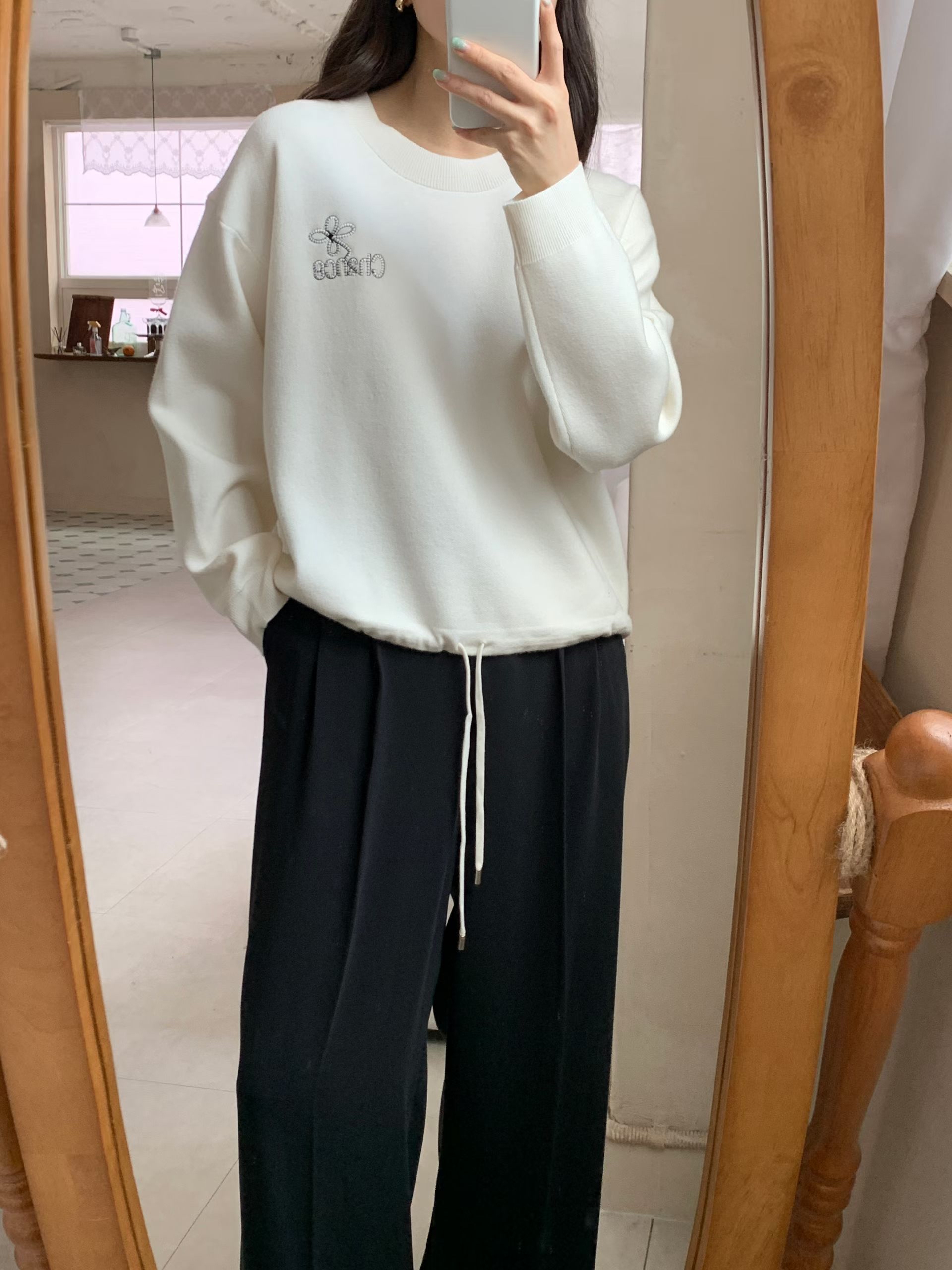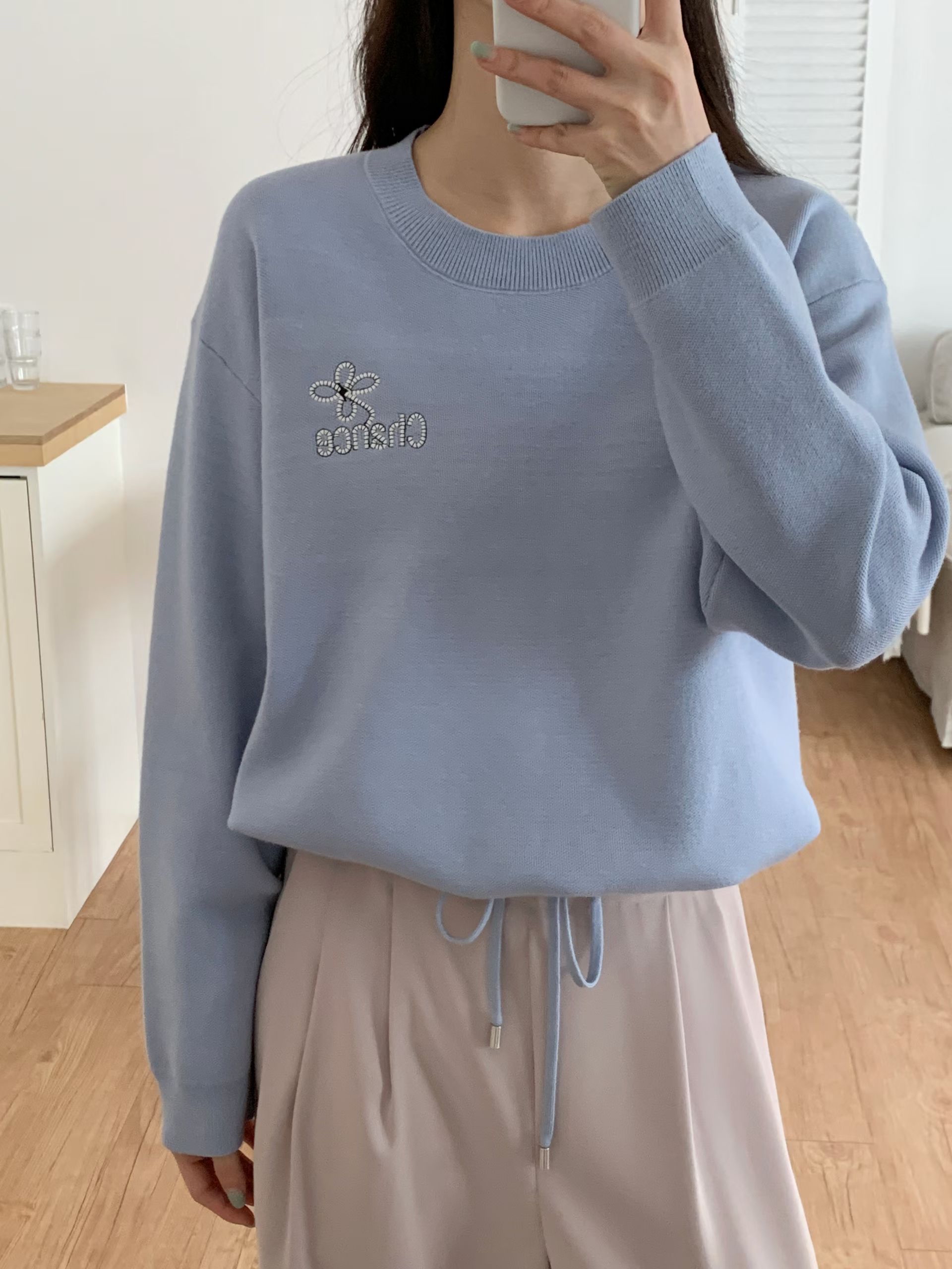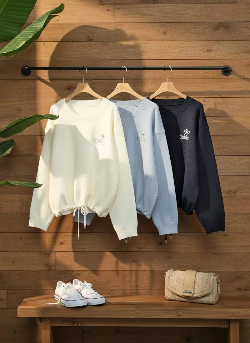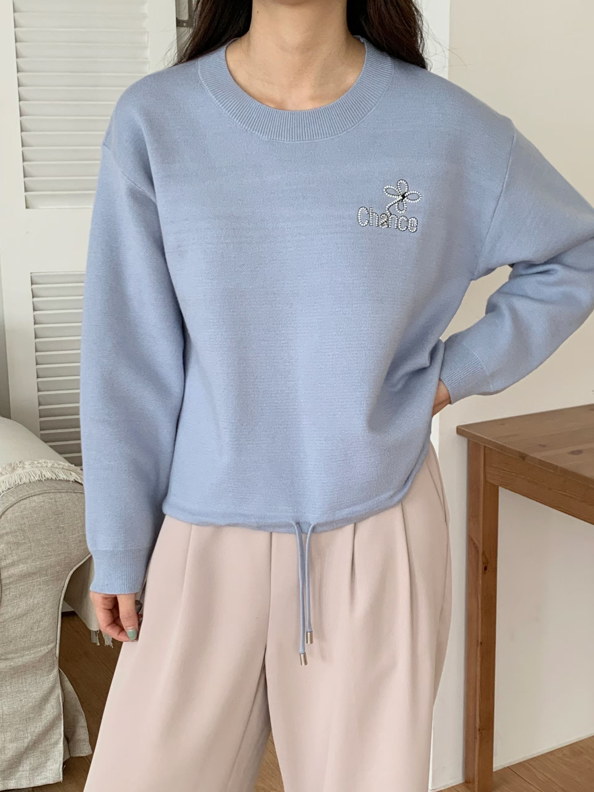 CT29 衫腳綁刺繡Top 3色 米/淺藍/黑 Chest 40" length 21"