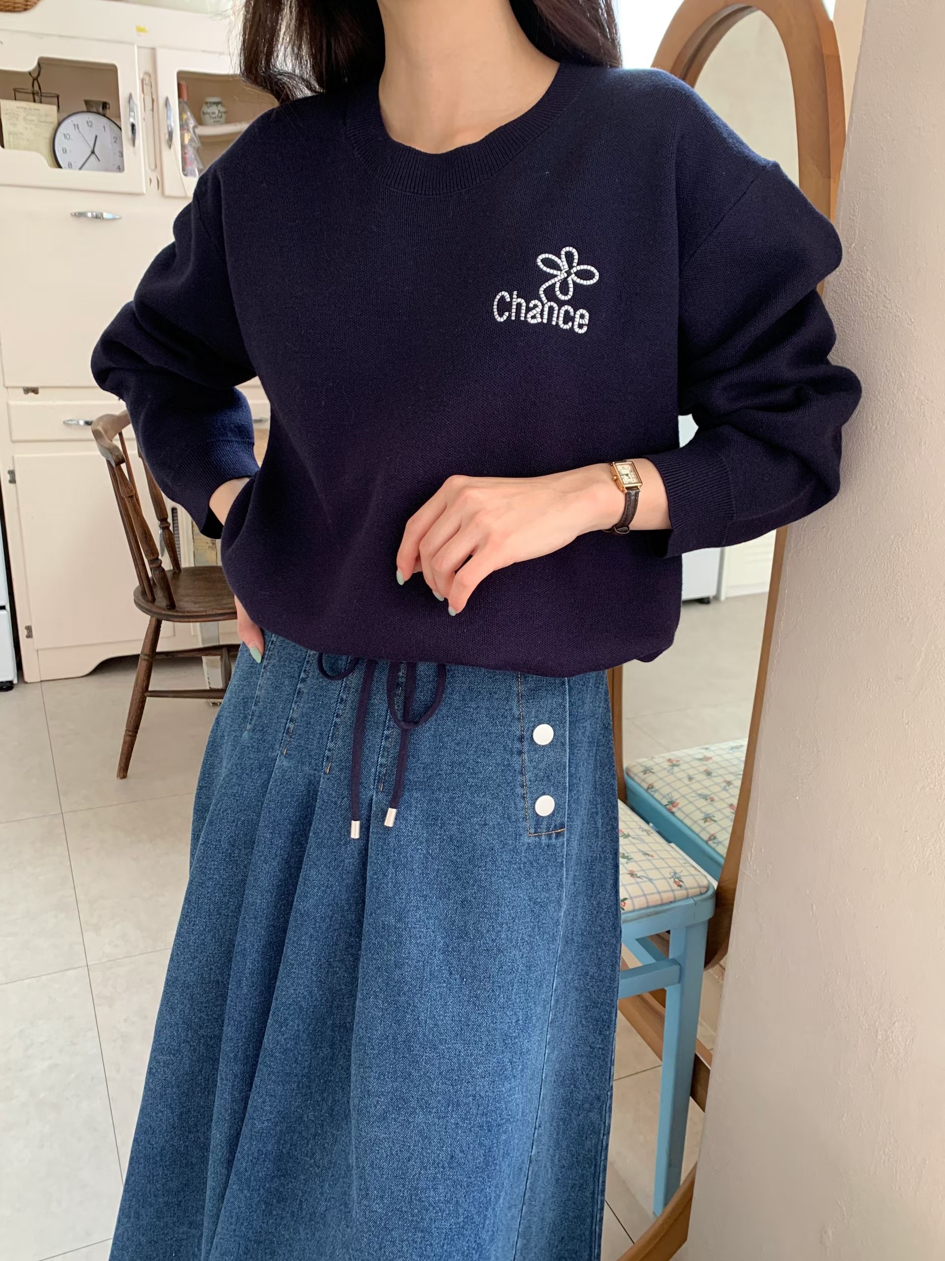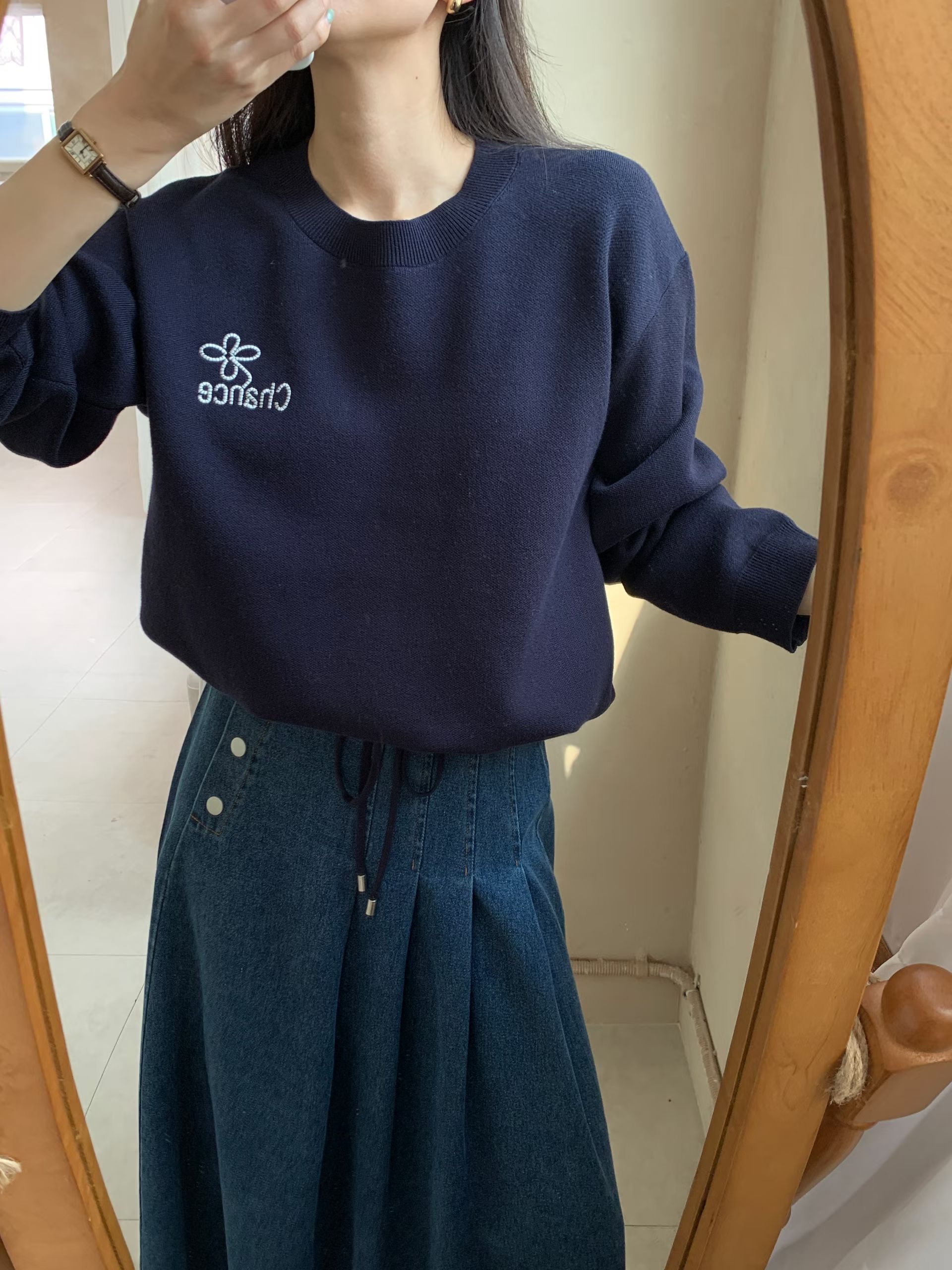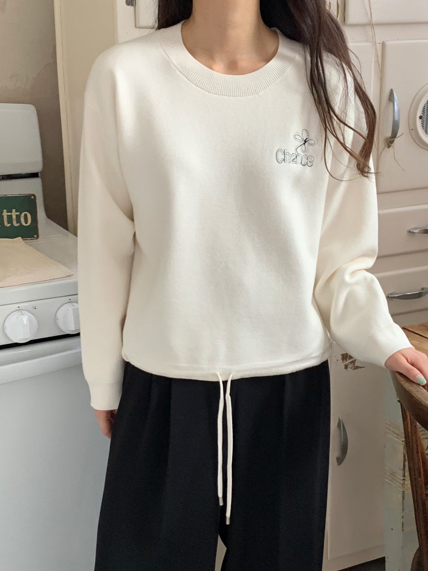 CT29 衫腳綁刺繡Top 3色 米/淺藍/黑 Chest 40" length 21"
