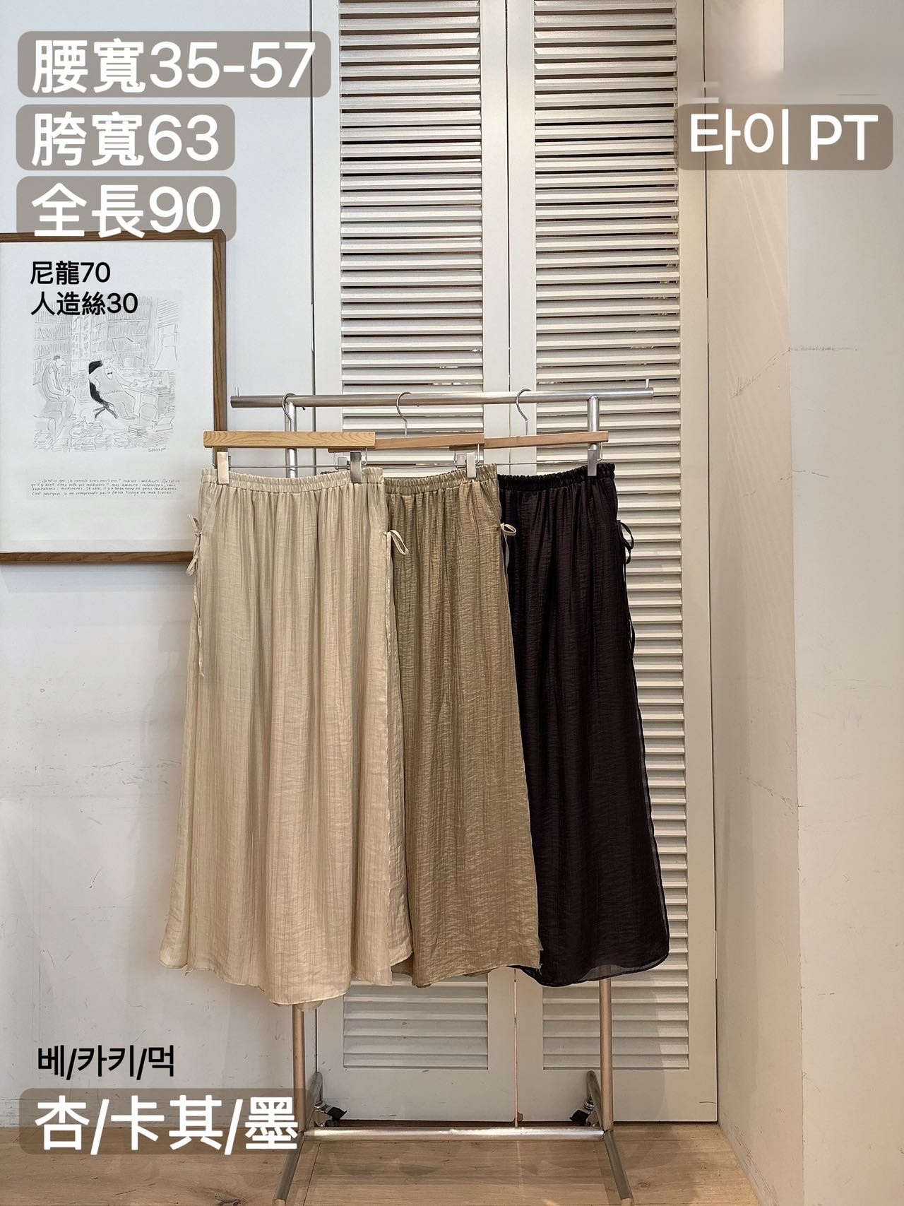 F06 2側綁蝴蝶結裙褲 3色 杏/卡其/灰黑 Waist 35-57cm hip 63cm length 90cm