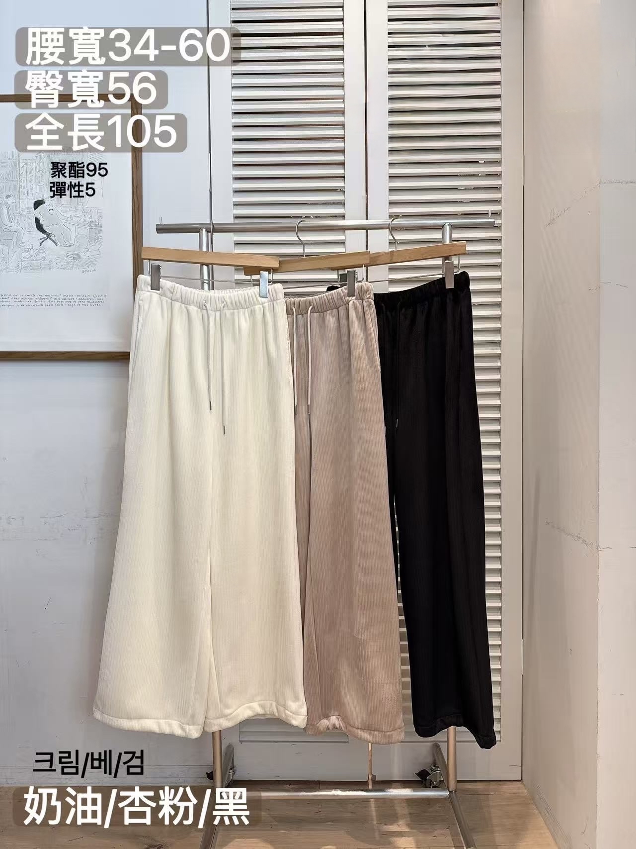 FV06 絨直腳褲 3色 奶油/杏粉/黑 Waist 26-46" hip 44" length 4