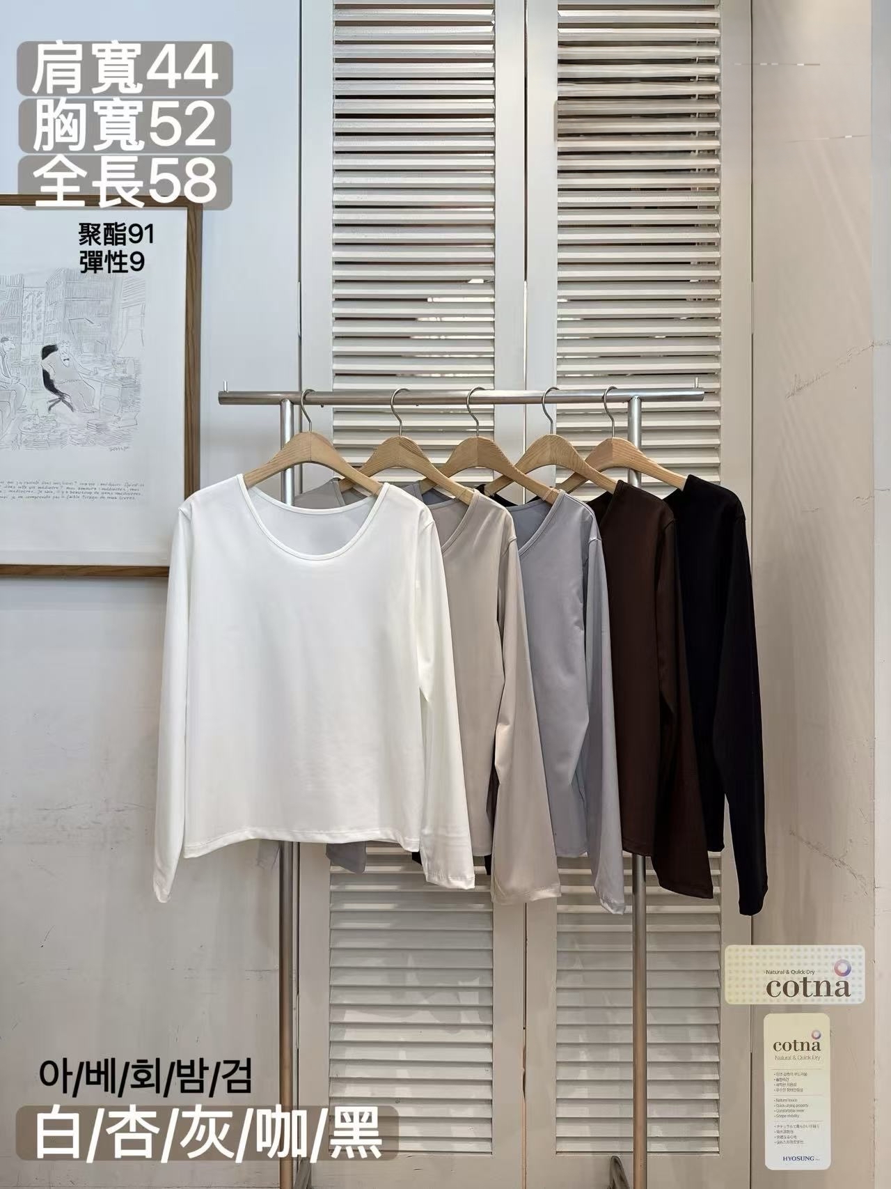 FV18 超滑U領淨色Top 5色 白/杏/灰/啡/黑 Chest 40" length 23"