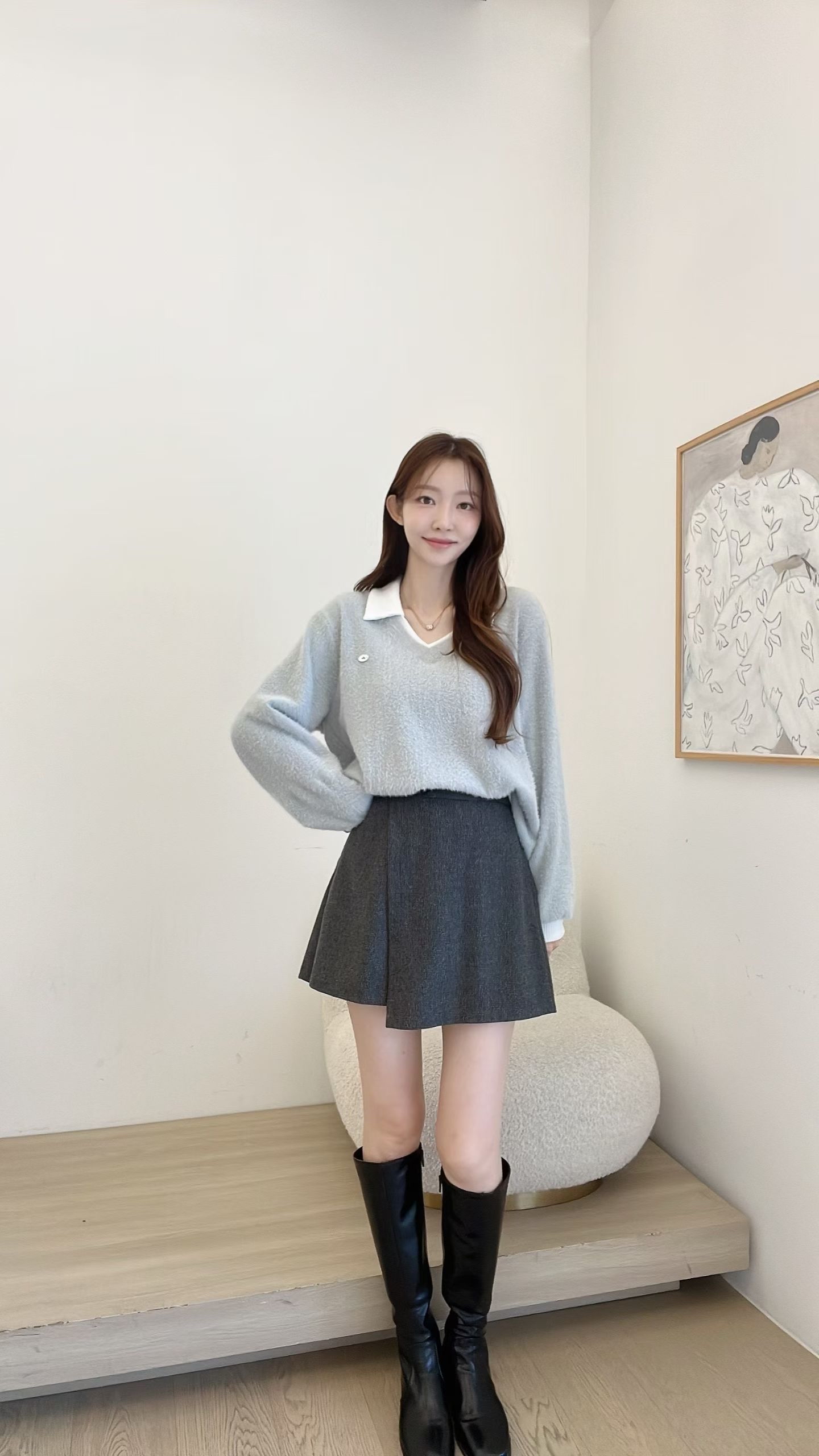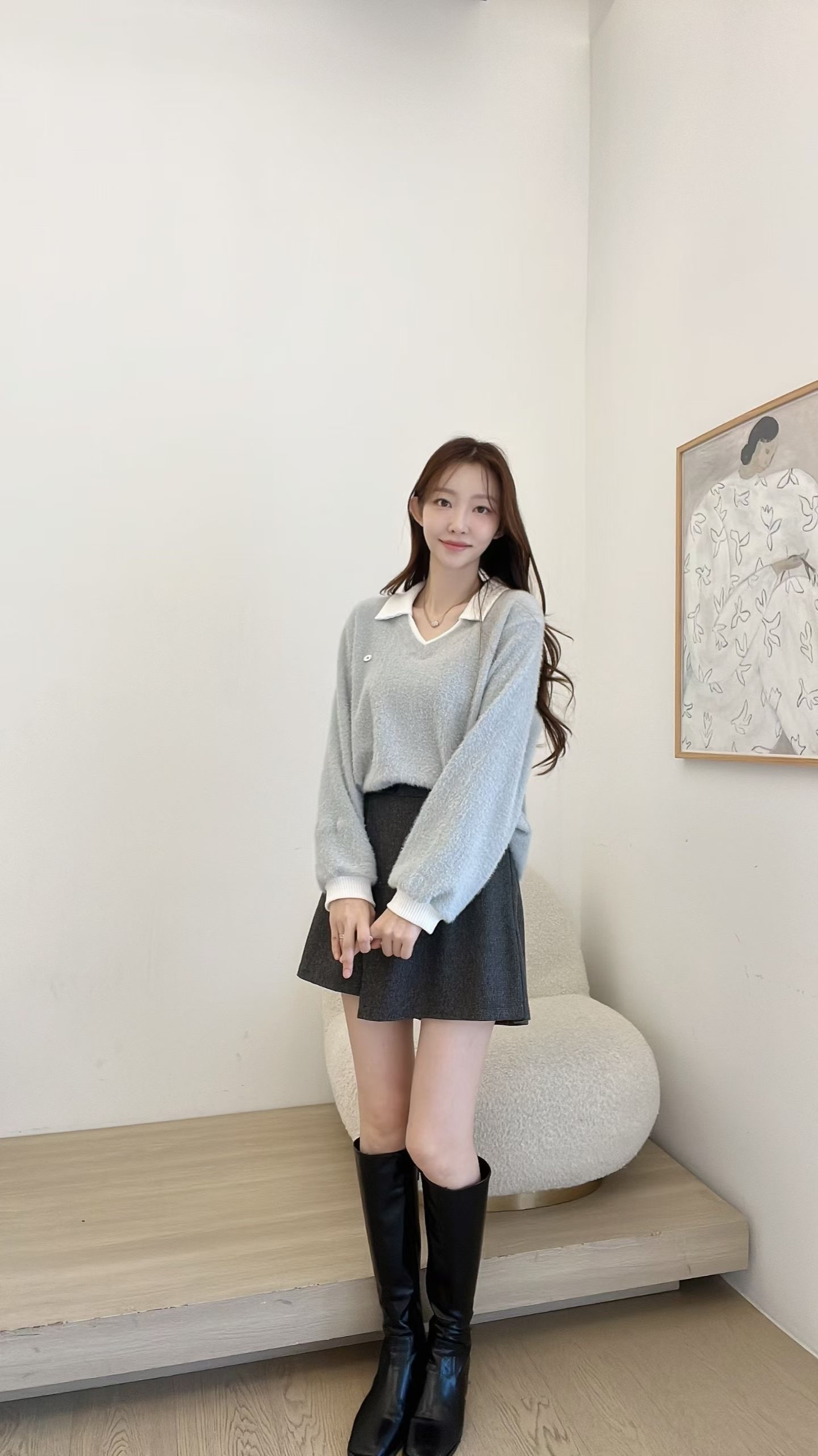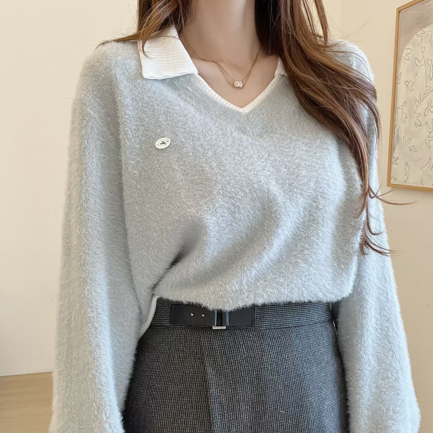 FV19 polo 領毛毛Top 4色 米白/灰藍/紫/淨灰 Chest 42" length 24"