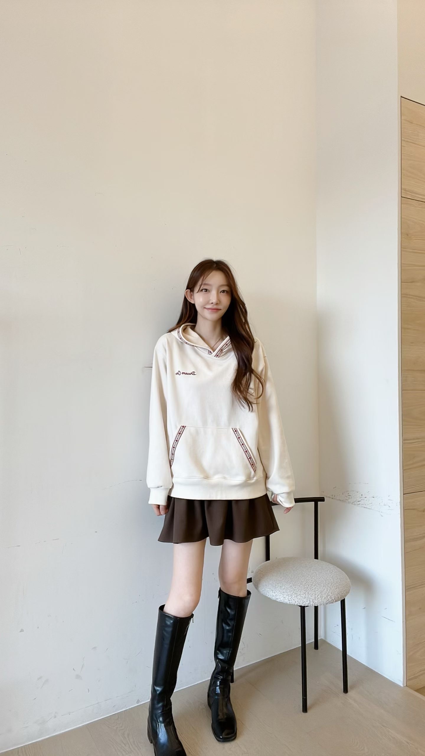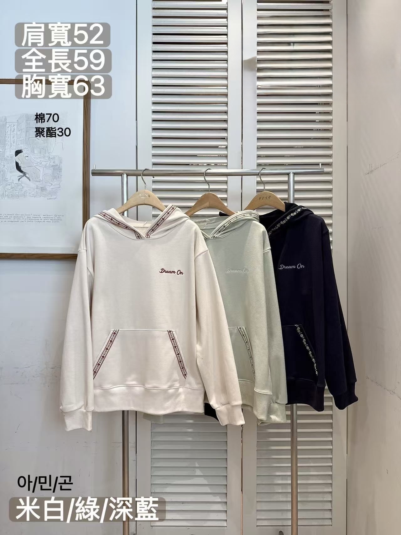 FV22 花邊前袋衛衣 3色 米/綠/深藍 Chest 48" length 23"