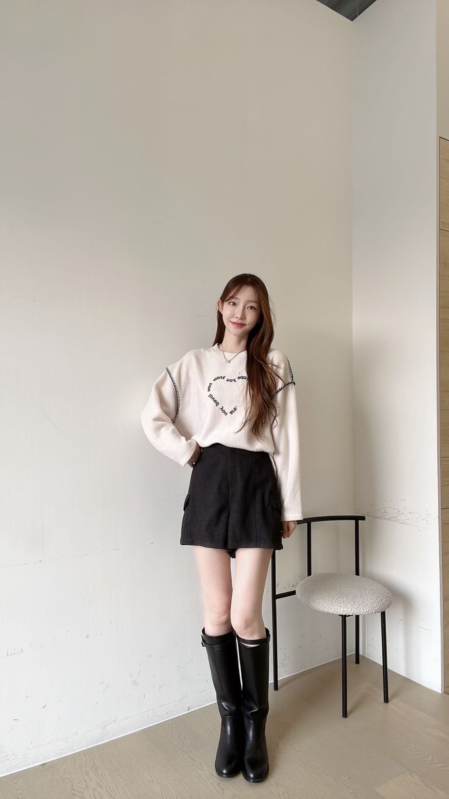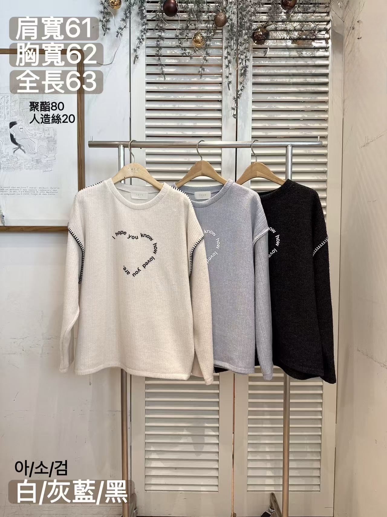 FV27 心心針織上衣 3色 白/灰藍/黑 Chest 48" length 25"
