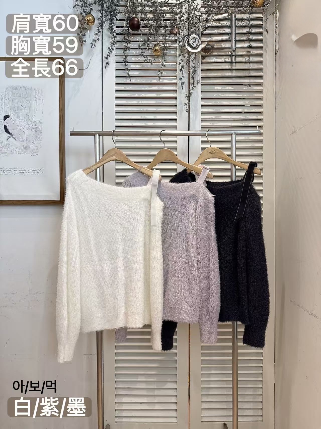 FV28 露膊針織毛毛Top 3色 白/紫/深灰 Chest 46" length 26"