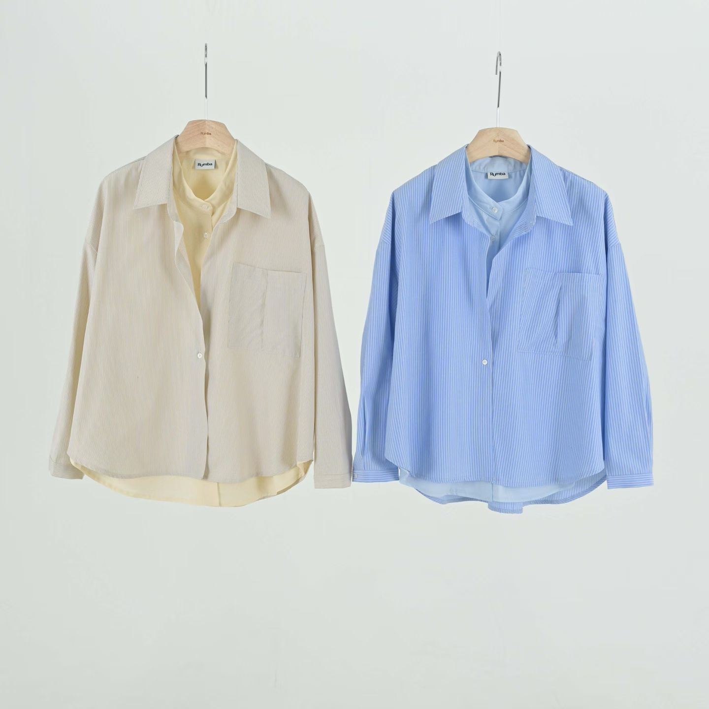 RB02 假2件恤 2色 淺黃/淺藍 Shoulder 22.8" chest 48" length 27" sleeves 18.8"