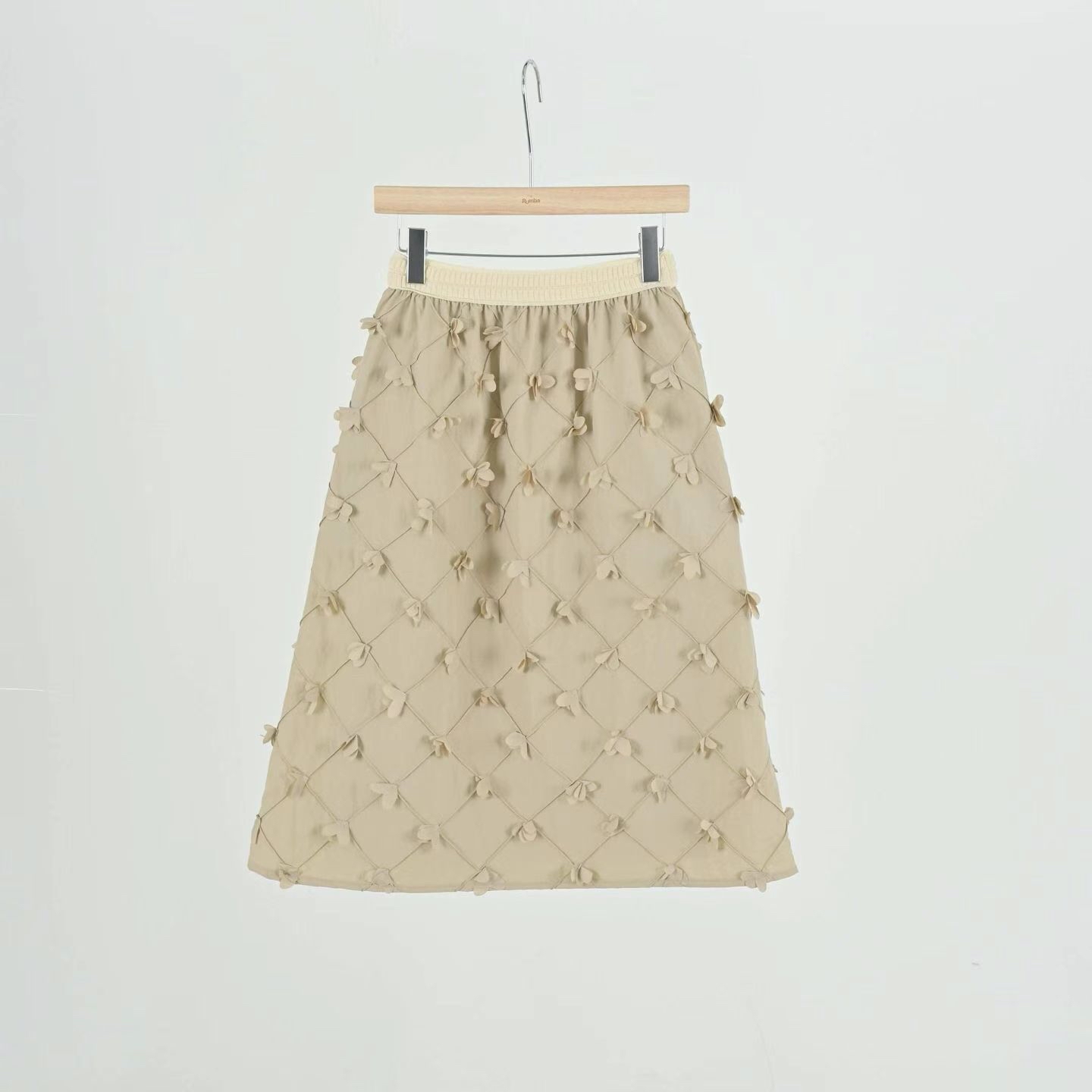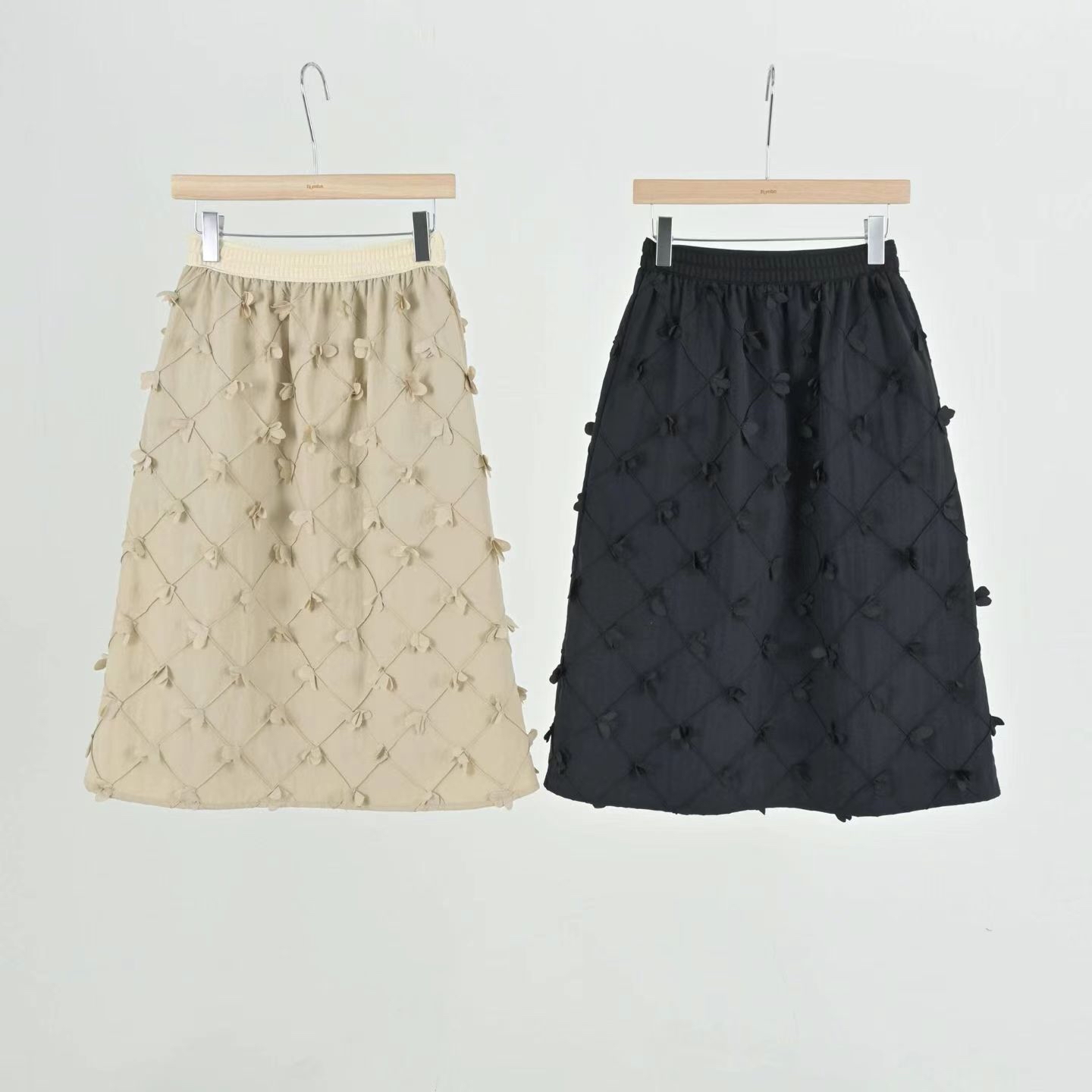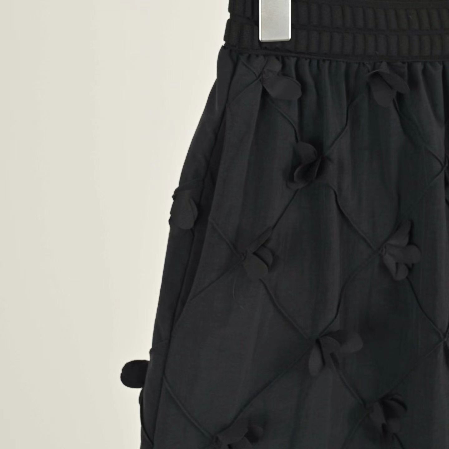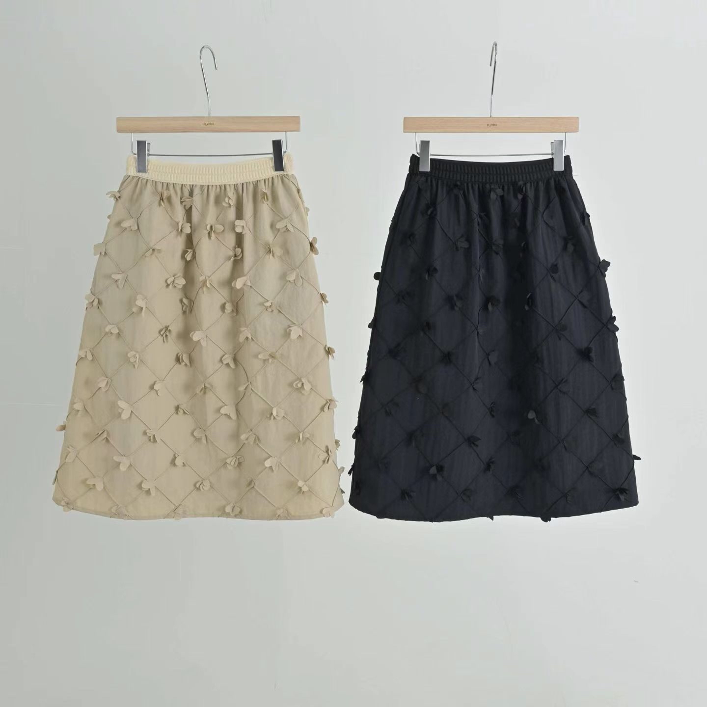 RB04 立體花花A字裙 2色 杏/黑 Waist 26-37" hip45" length 28"