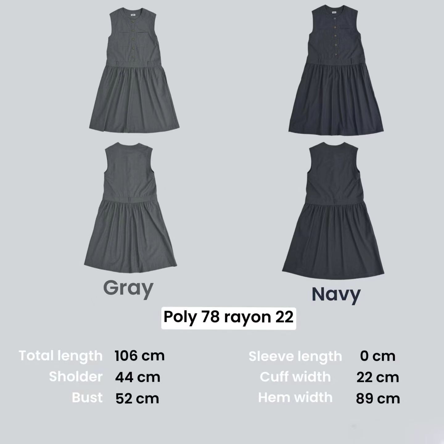 RB05 背心連身裙 2色 灰/深藍 Chest 41" hip 40+ length 41.5"