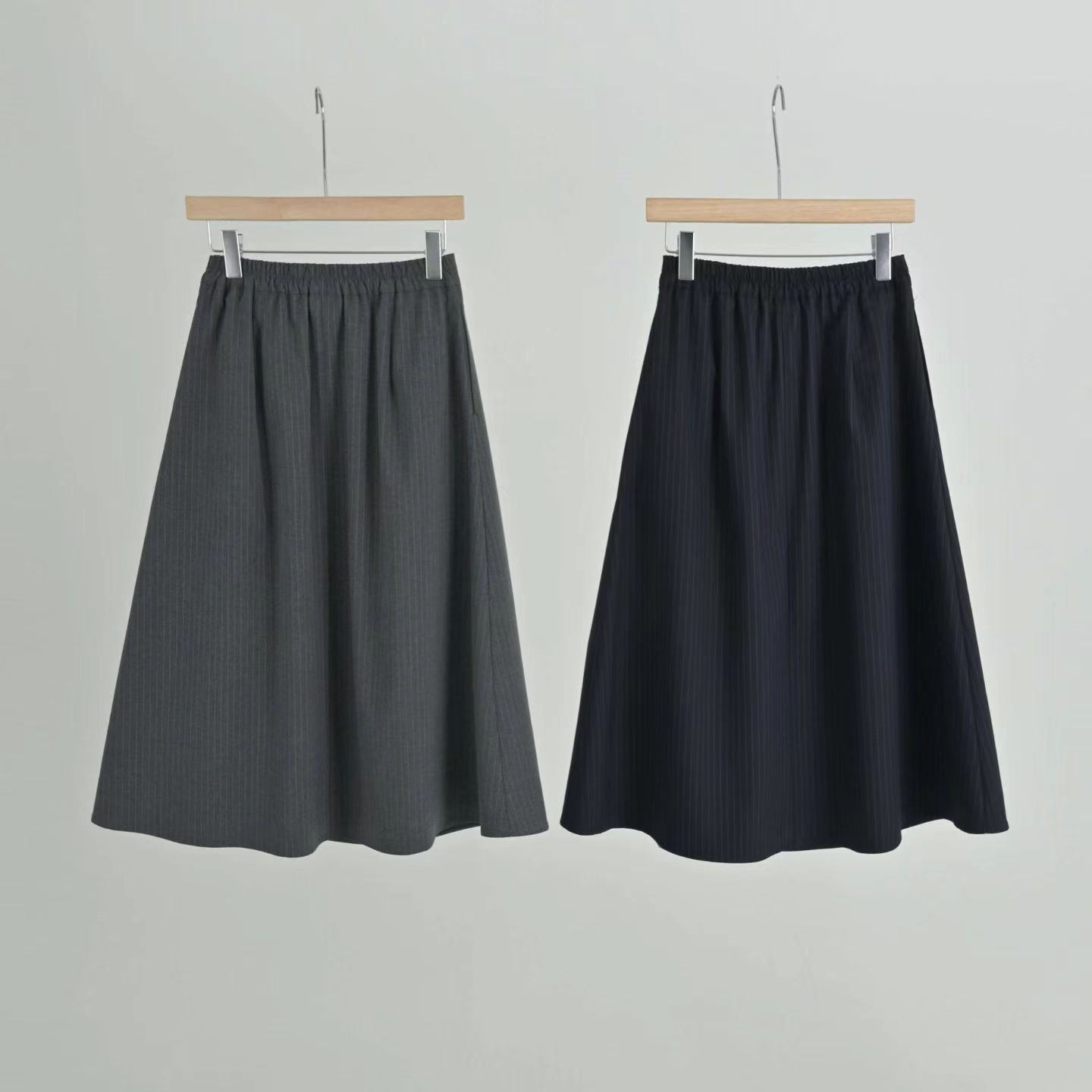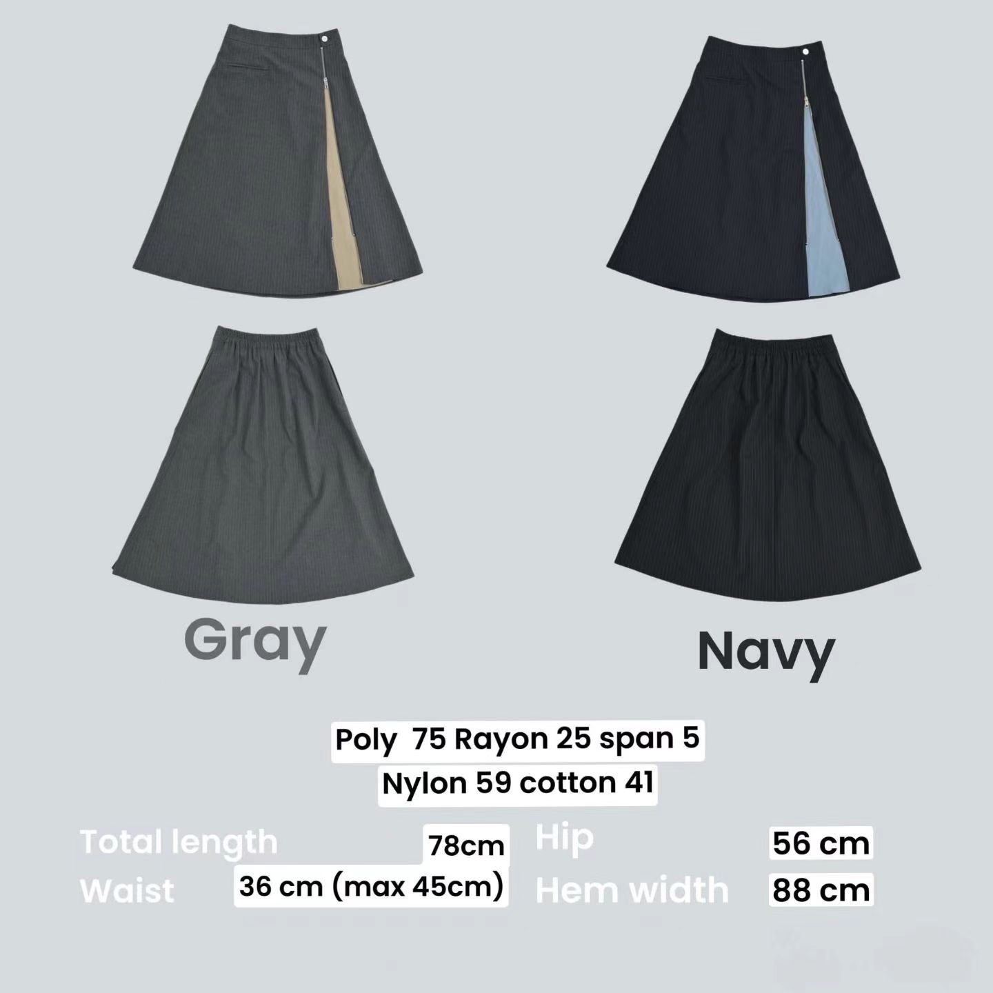 RB07 側開拉鏈拼色半截裙 2色 灰/深藍 Waist 28-35" hip 44" length 30.7"