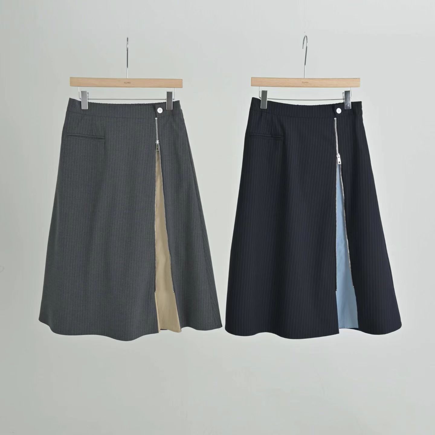 RB07 側開拉鏈拼色半截裙