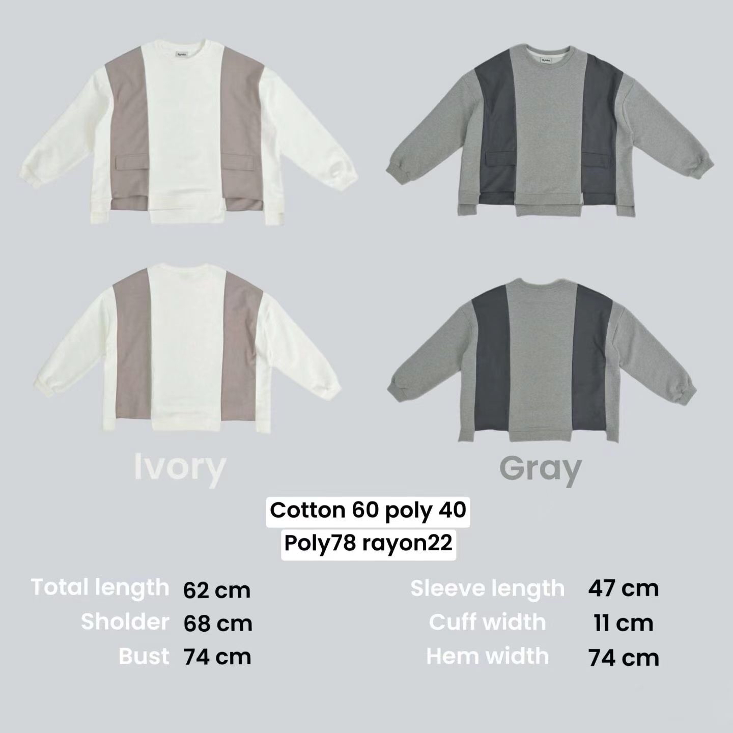 RB09 側拼色長短上衣 2色 米/灰 Chest 50+ length 24.5"