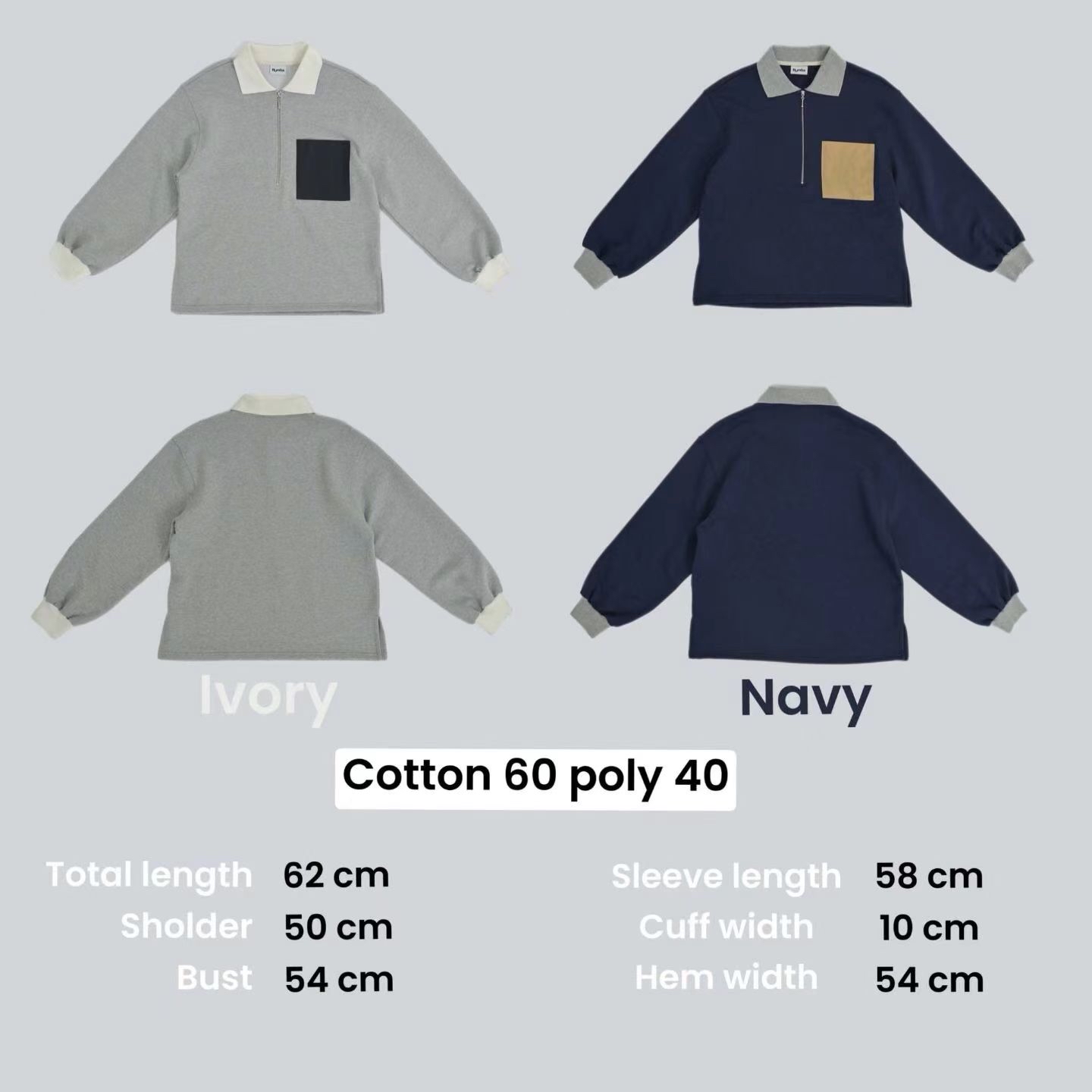RB10 拼色袋polo 領Top 2色 灰/深藍 Chest 42" length 24.5"
