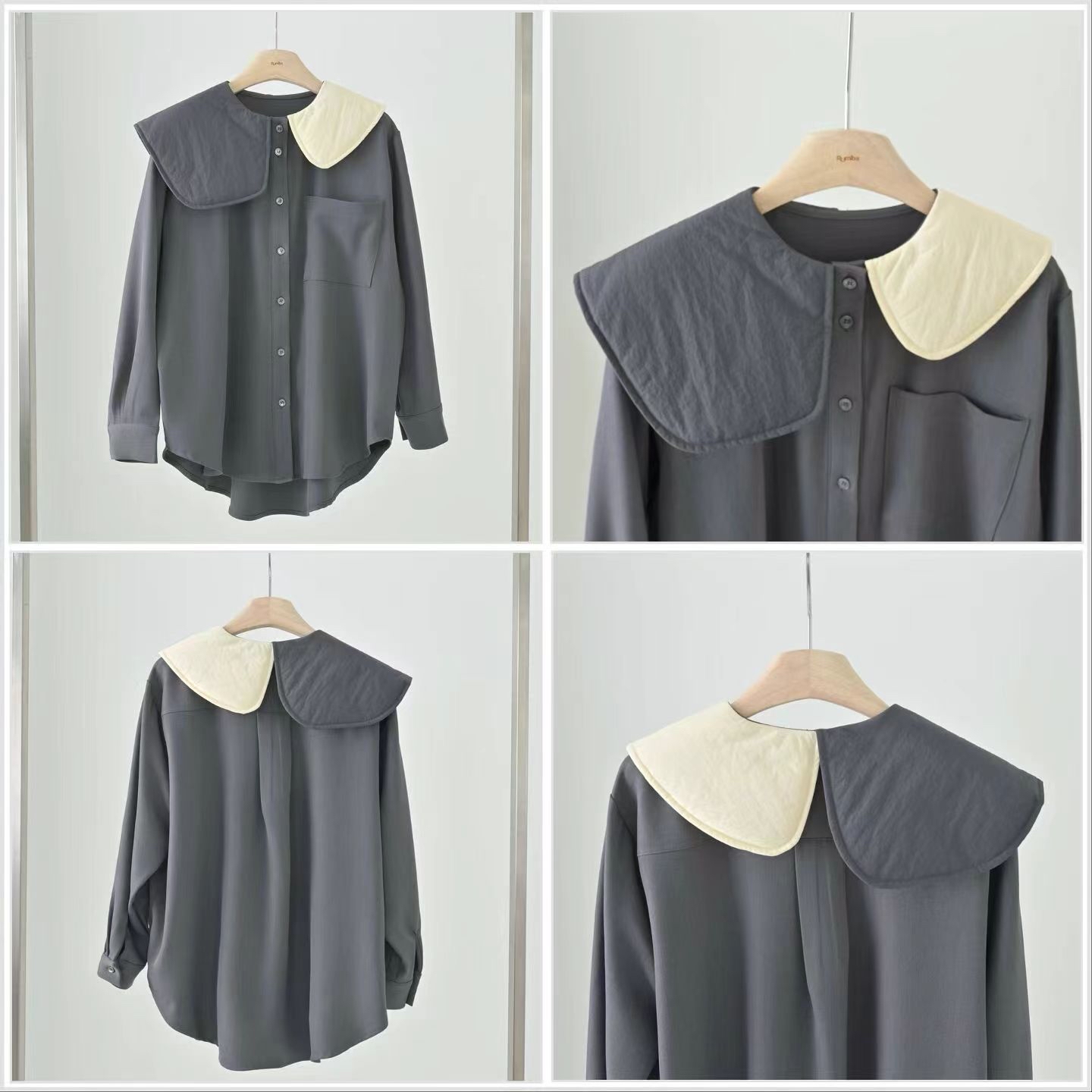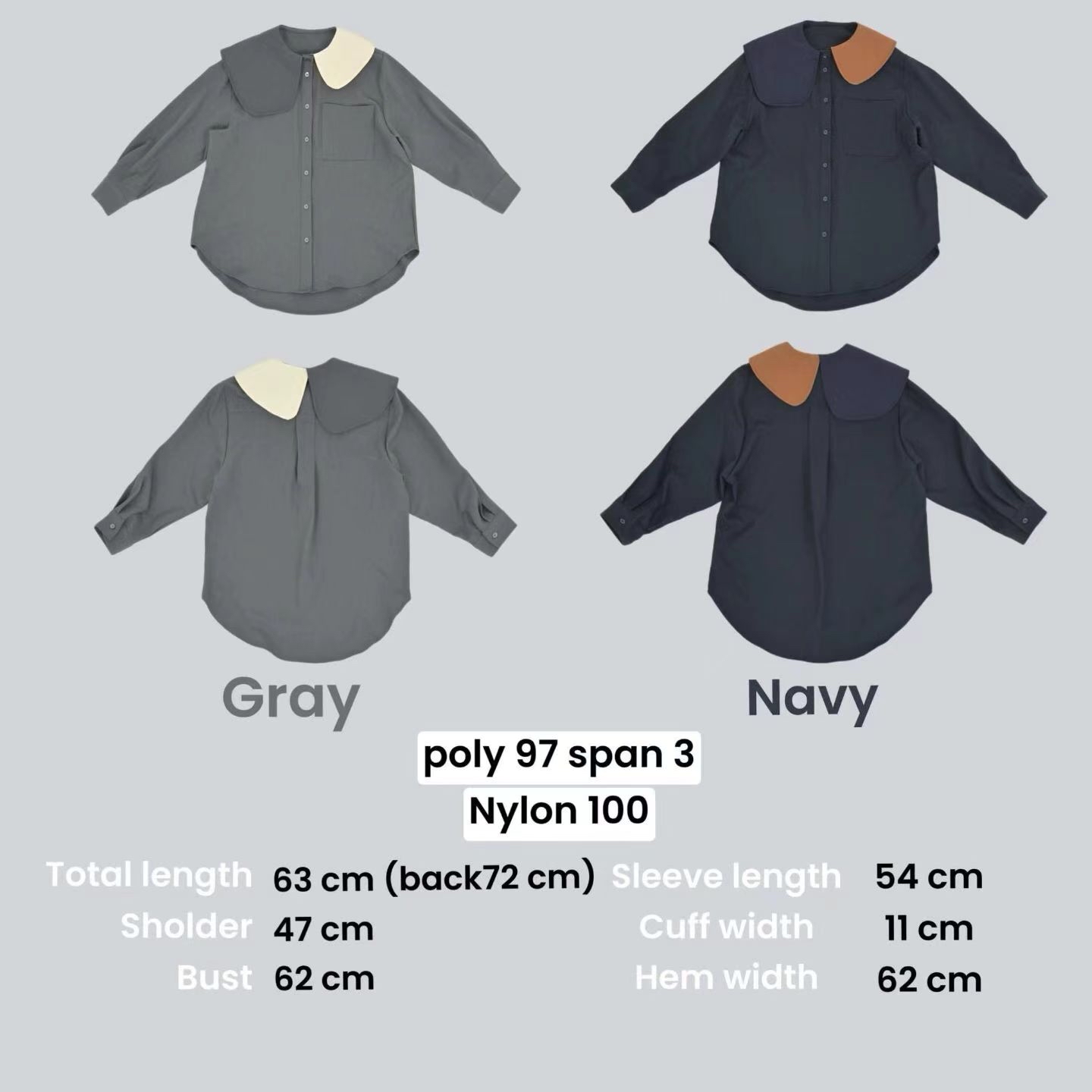 RB16 拼色領恤 2色 灰/深藍 Shoulder 18.5" chest 48" length 24.5前 28" 後