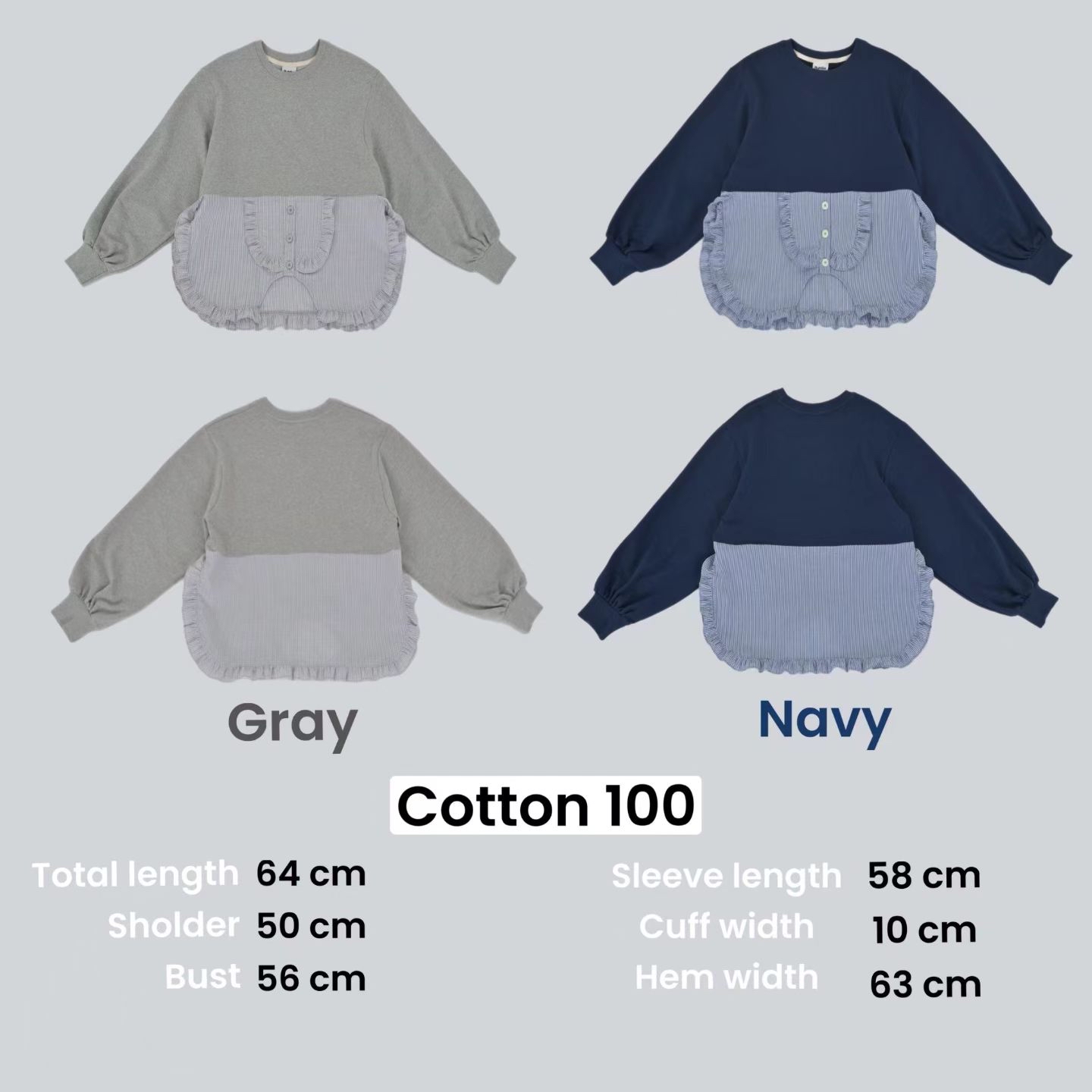 RB23 cotton 下拼恤上衣 2色 灰/深藍 Chest 44" length 25"