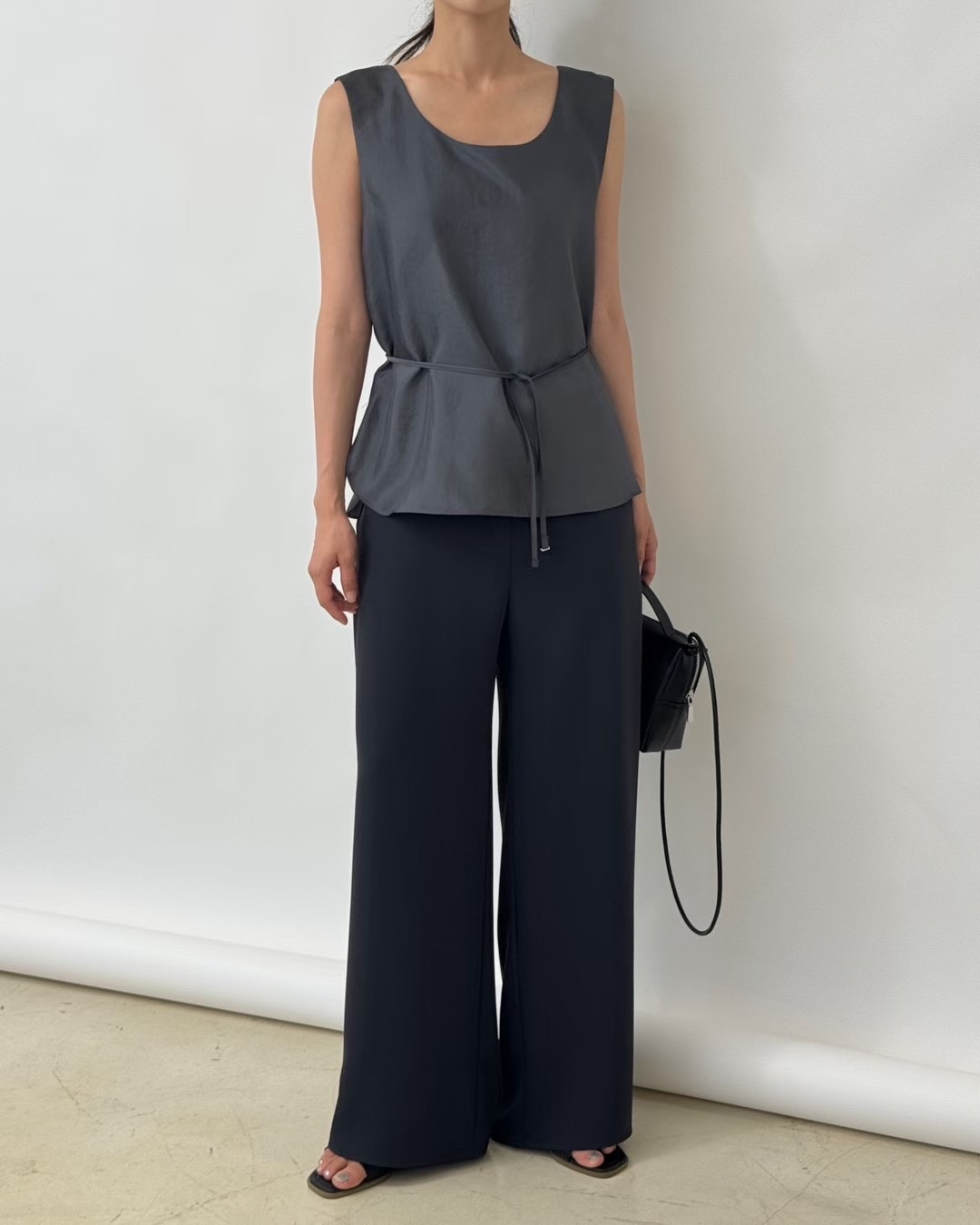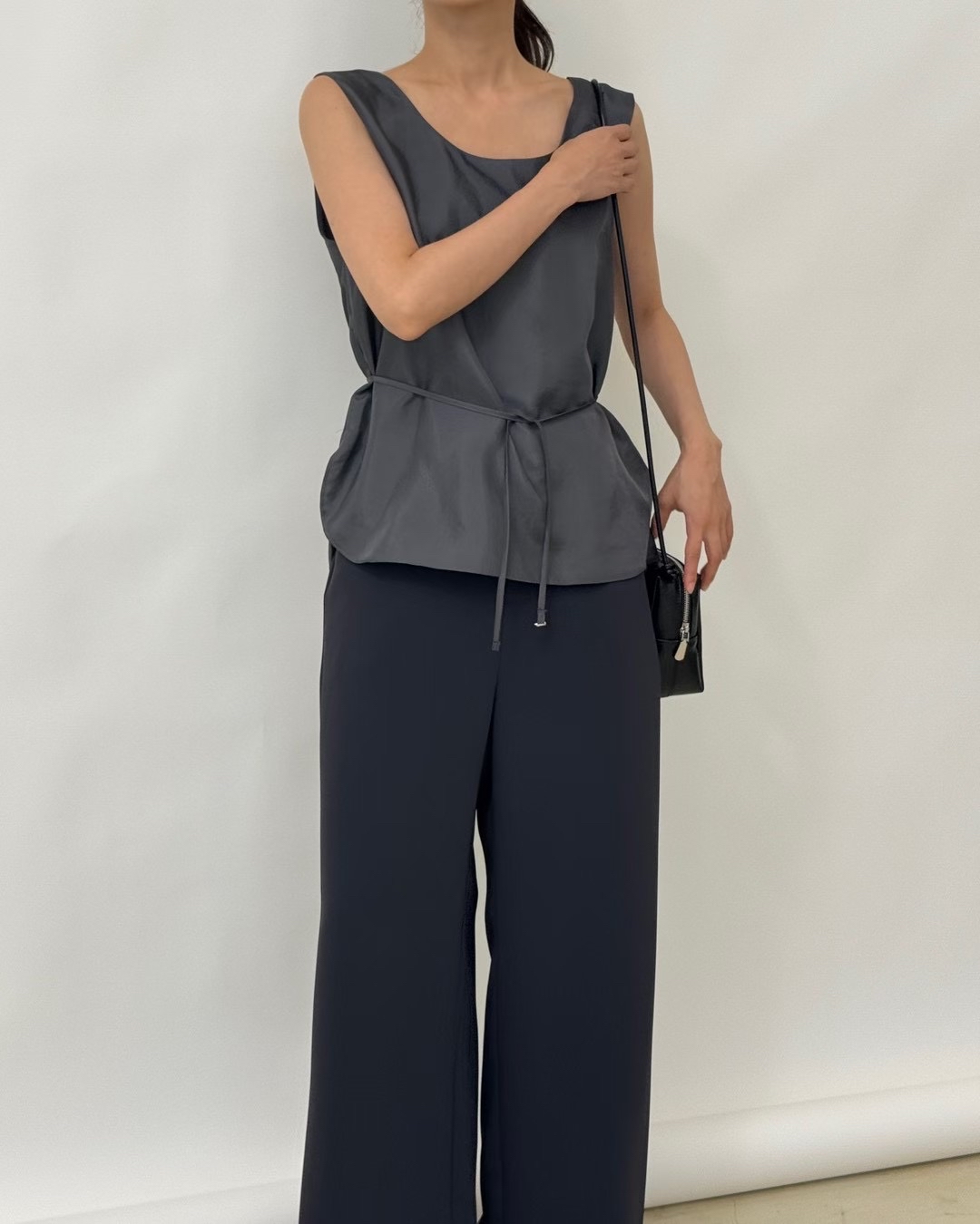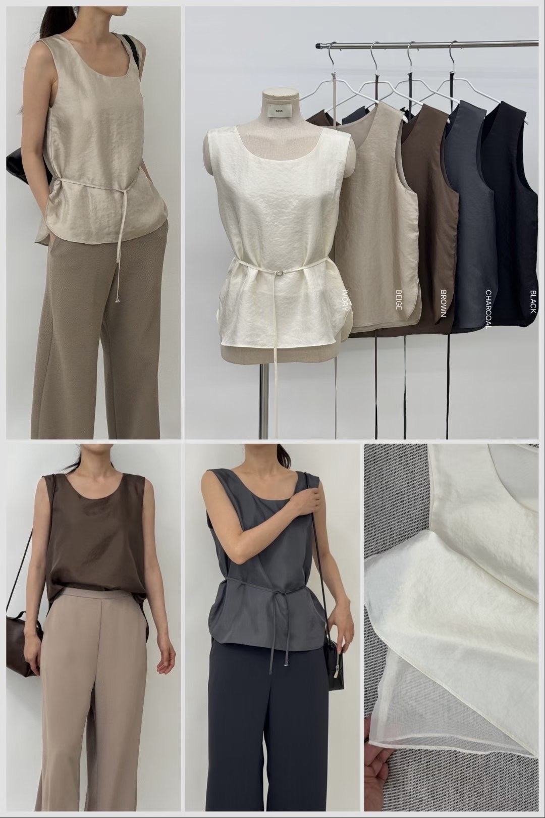 S03 滑身亮面連腰帶背心 5色 米白/奶茶/啡/深灰/黑 Chest 38" length 23" 前24"後