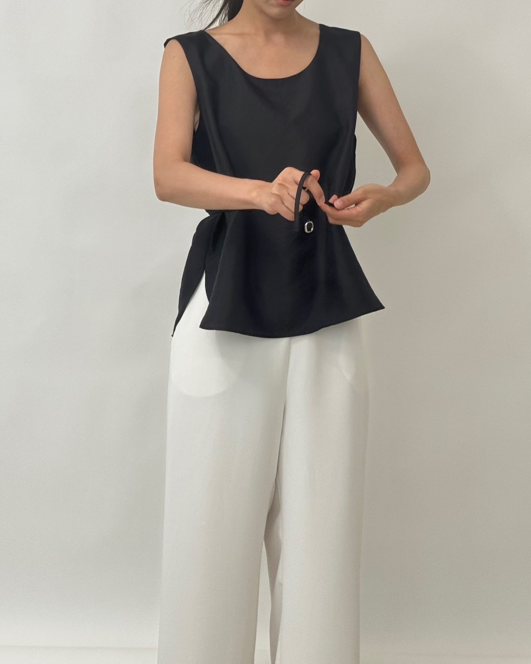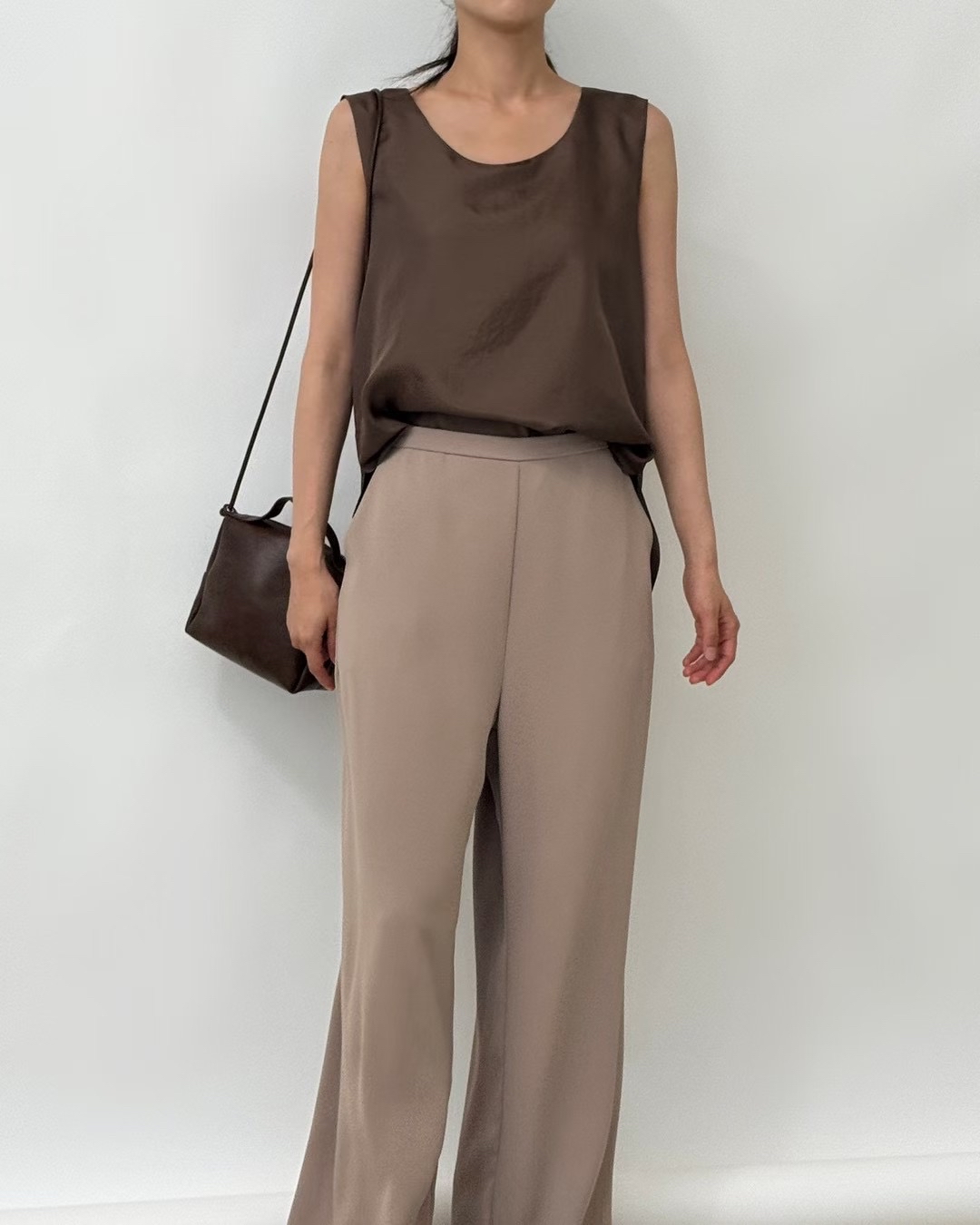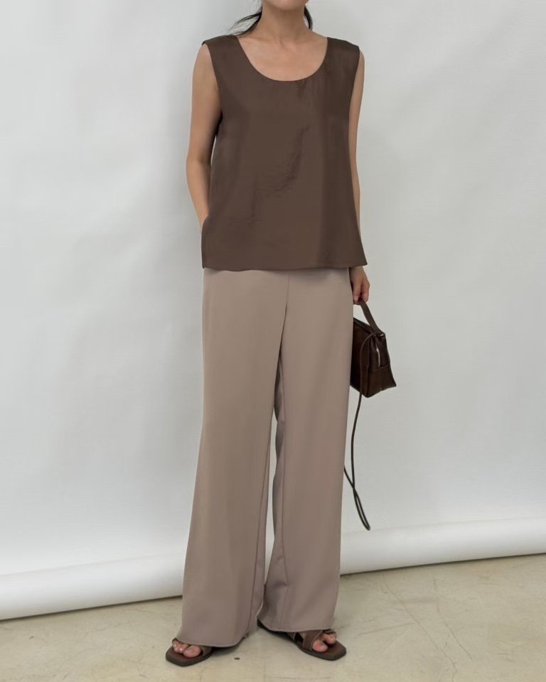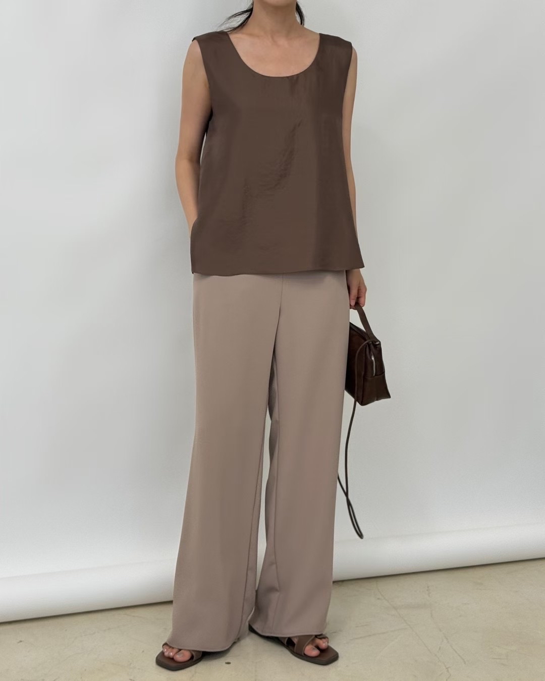 S03 滑身亮面連腰帶背心 5色 米白/奶茶/啡/深灰/黑 Chest 38" length 23" 前24"後