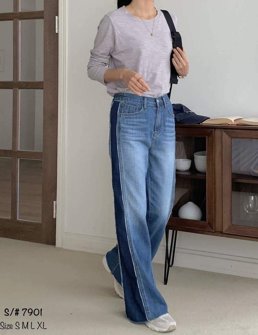 推介新款牛仔褲! 💰$350 (VIP $320) 頭先花邊唔喜歡的話 呢條2邊拼色都好正! 同樣四季都岩著👍🏻質地軟熟 唔厚唔薄! 側邊做左深色 上腳係超超超顯瘦! S waist 26-28” hip 38-40” length 38.5” M waist 28-30” hip 40”-42” length 39” L waist 30-32” hip 42-44” length 39.5” XL waist 32-34” hip 44-46” length 40.5”