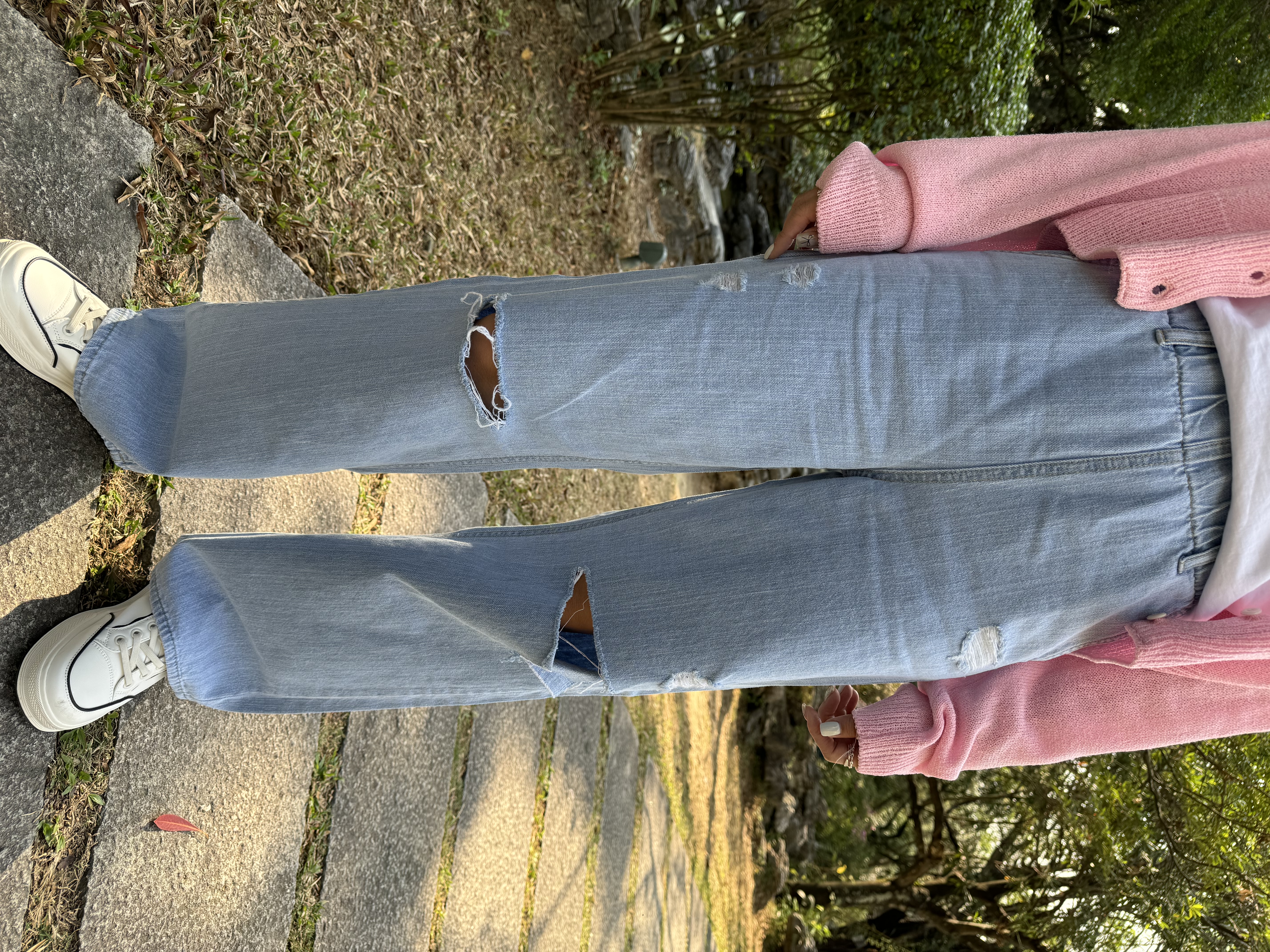 橡筋腰薄身直腳褲 超推介的一條牛仔褲 全橡筋腰 超舒服! 闊身直腳 膝頭有爛位~ 2側有袋~ 著上腳超顯高! 又好襯! S-3XL 任何身形都岩著🥰 單色 淺色 S-3XL S waist 24-28" hip 34-36" length 38" M waist 26-30” hip 36-38” length 38" L waist 28-32" hip 38-40" length 38.5" XL waist 30-34" hip 40-42" length 39" 2XL waist 32-36" hip 42-44" length 39.5" 3XL waist 34-38" hip 44-46" length 40"