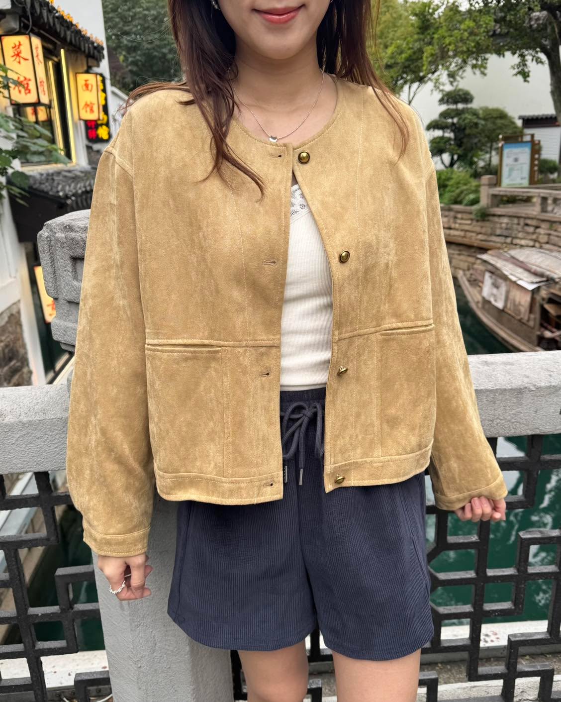秋冬猄皮外套真係要有一件! 呢件軟熟又輕身! 真係非常非常好襯! 質地滑滑好舒服 內有里! 2色 深啡/杏 Shoulder 18" chest 42" length 20"