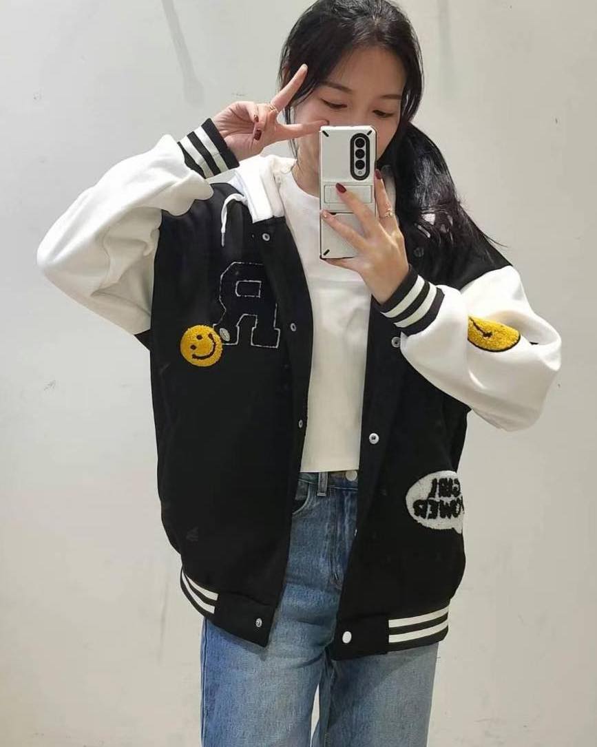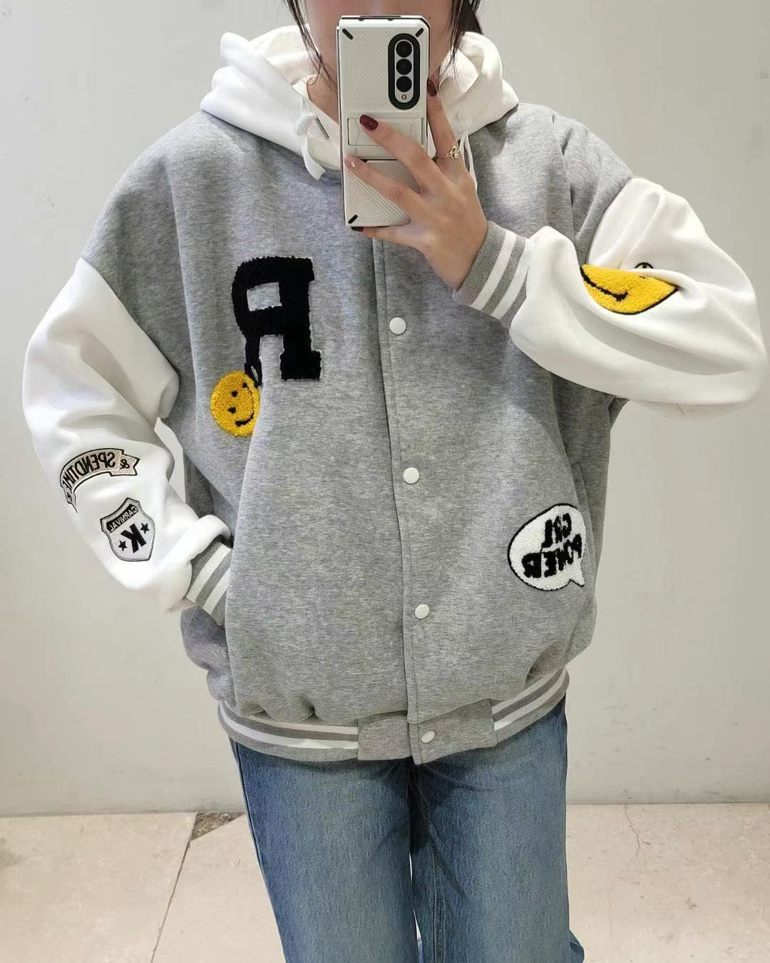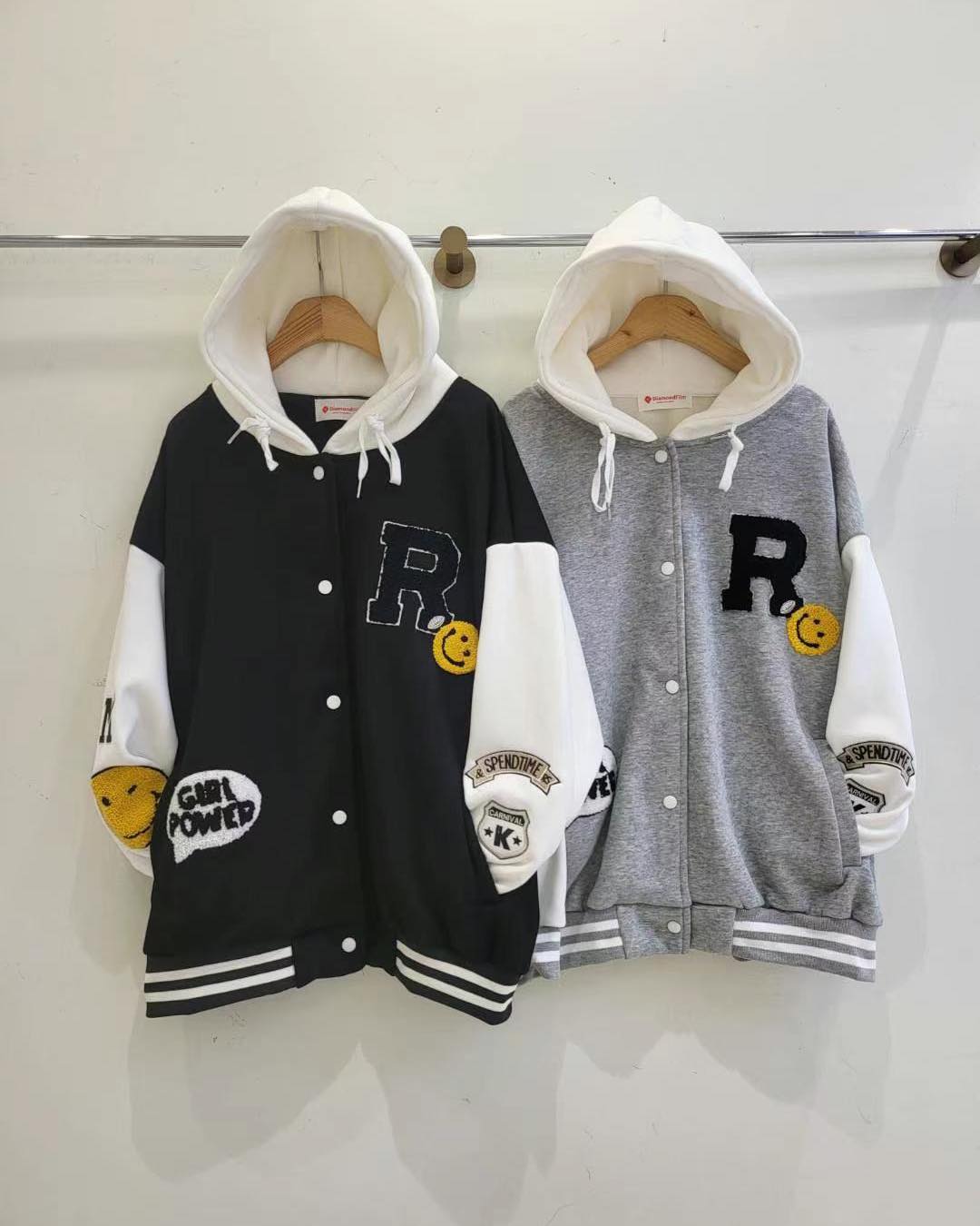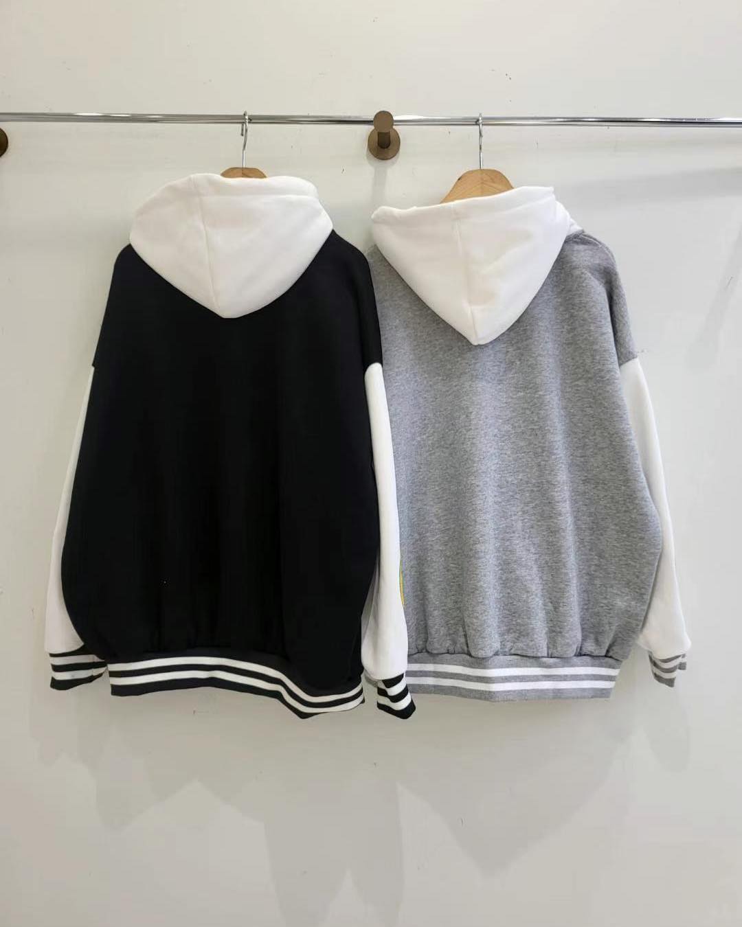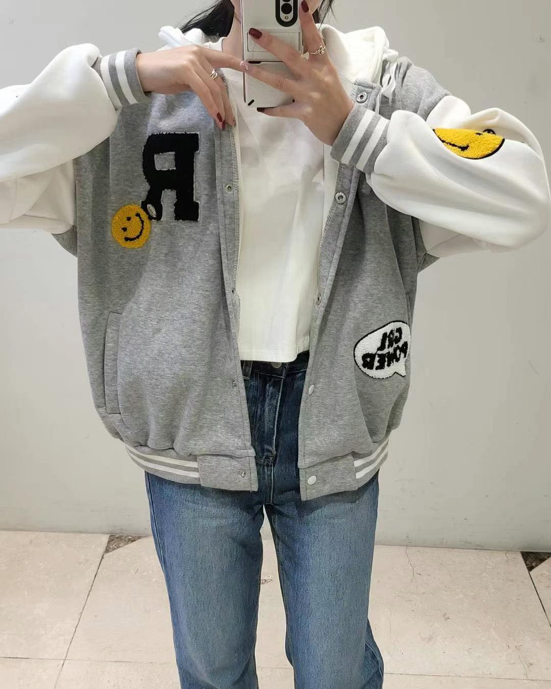 笑哈哈長版棒球褸 💰$299 超靚👍🏻👍🏻 casual 得黎又可愛👍🏻 厚身cotton內加絨‼️ 超保暖~~ 香港再凍d就岩著! 非常好襯又長青! 簡單一件zip up 出得街 ! 2色 灰/黑 Chest 52” length 26”