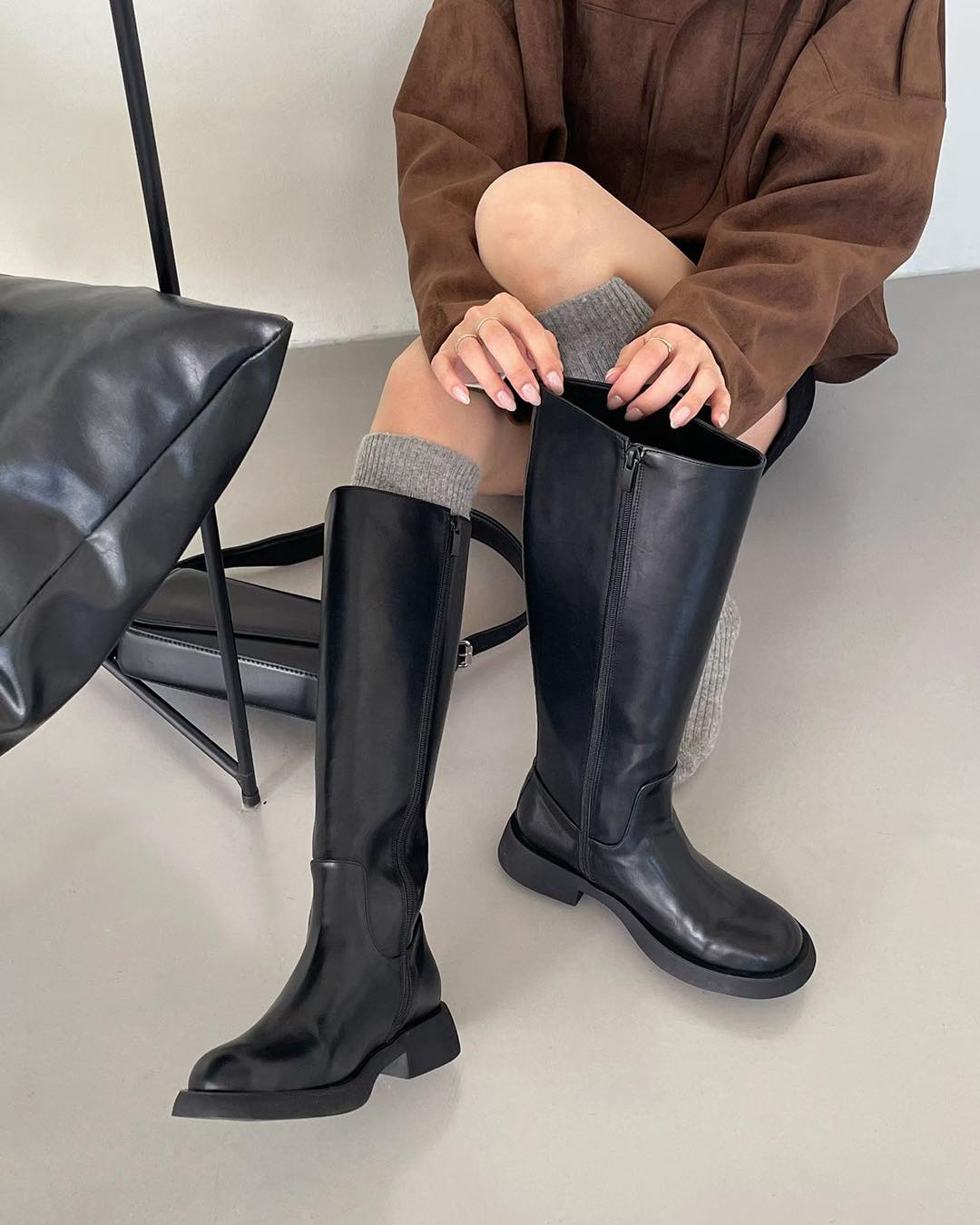 萬年好襯 淨色黑色中boot 唔鍾意頭先果款 可以揀呢款! 合埋眼 著咩都靚🤭🤭 完全唔洗諗點襯😎 仿皮 黑皮或絨面 2款都好襯! Size 230-250正常碼 鞋跟3.5cm Designed by Korea, made in China 只可在韓國發售~~
