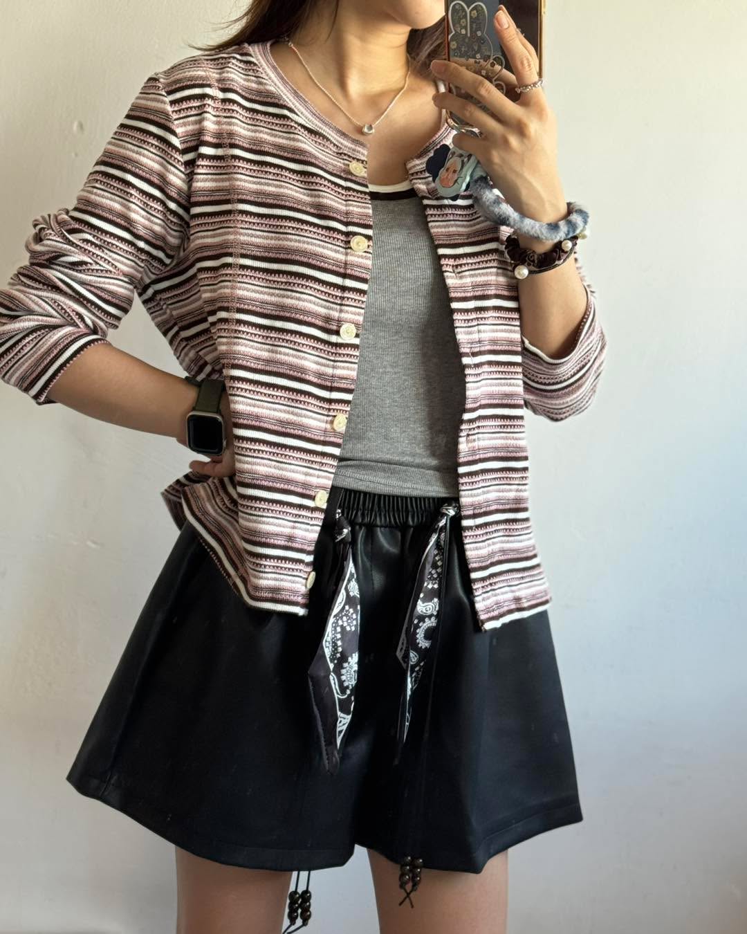 超舒服間條外套~💰$240 呢件外套唔厚唔薄 4季都岩著! 質地勁舒服! 顏色又勁靚😍😍 就咁襯背心已經好靚了! 2色 啡/粉 Chest 42" length 20.5"