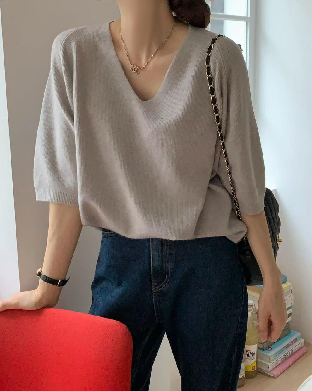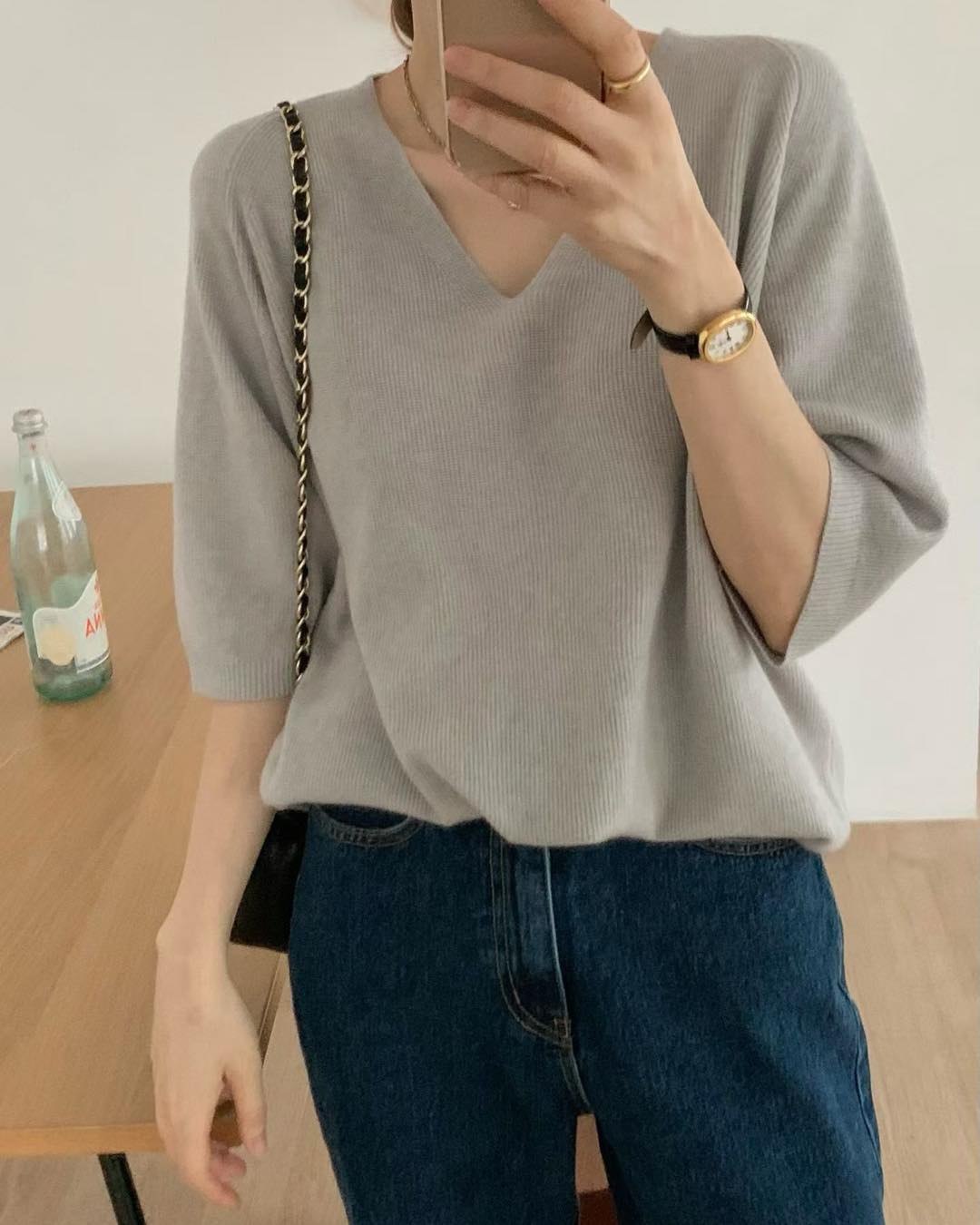 超舒服cashmere 針織中袖 💰$320 10% cashmere 👍🏻 呢d淨色針織真係無敵! 著上身超有貴婦feel😎 簡單利落又清爽👍🏻 最緊要質地舒服又唔吉肉! V領設計 顯瘦有好襯👍🏻 好適合香港天氣! 版型鬆身大件又夠長 。唔挑身形大家都啱 3色 米/灰/黑 Chat 46” length 23.5”