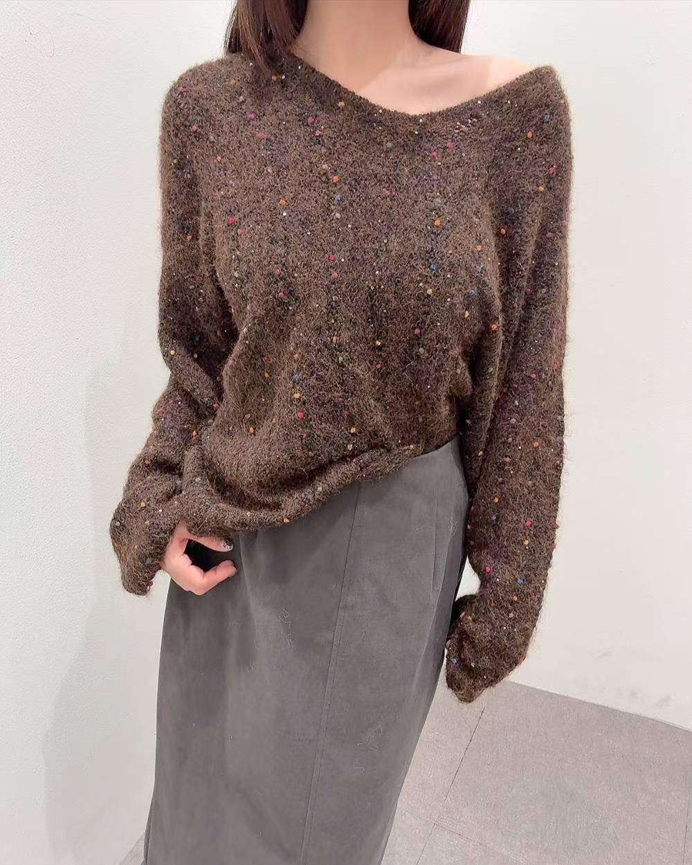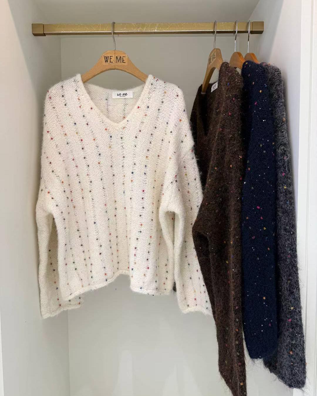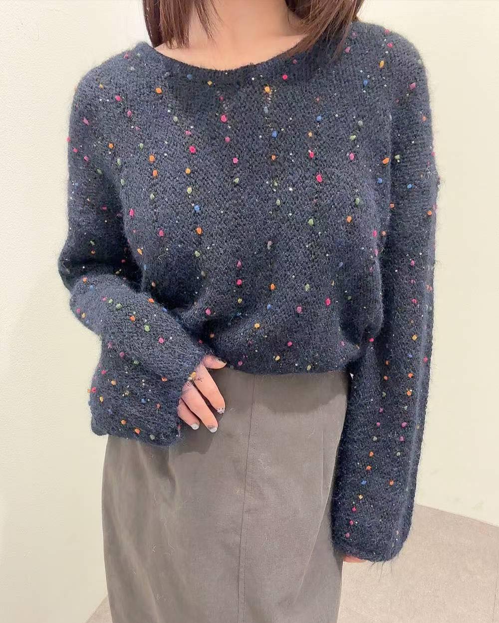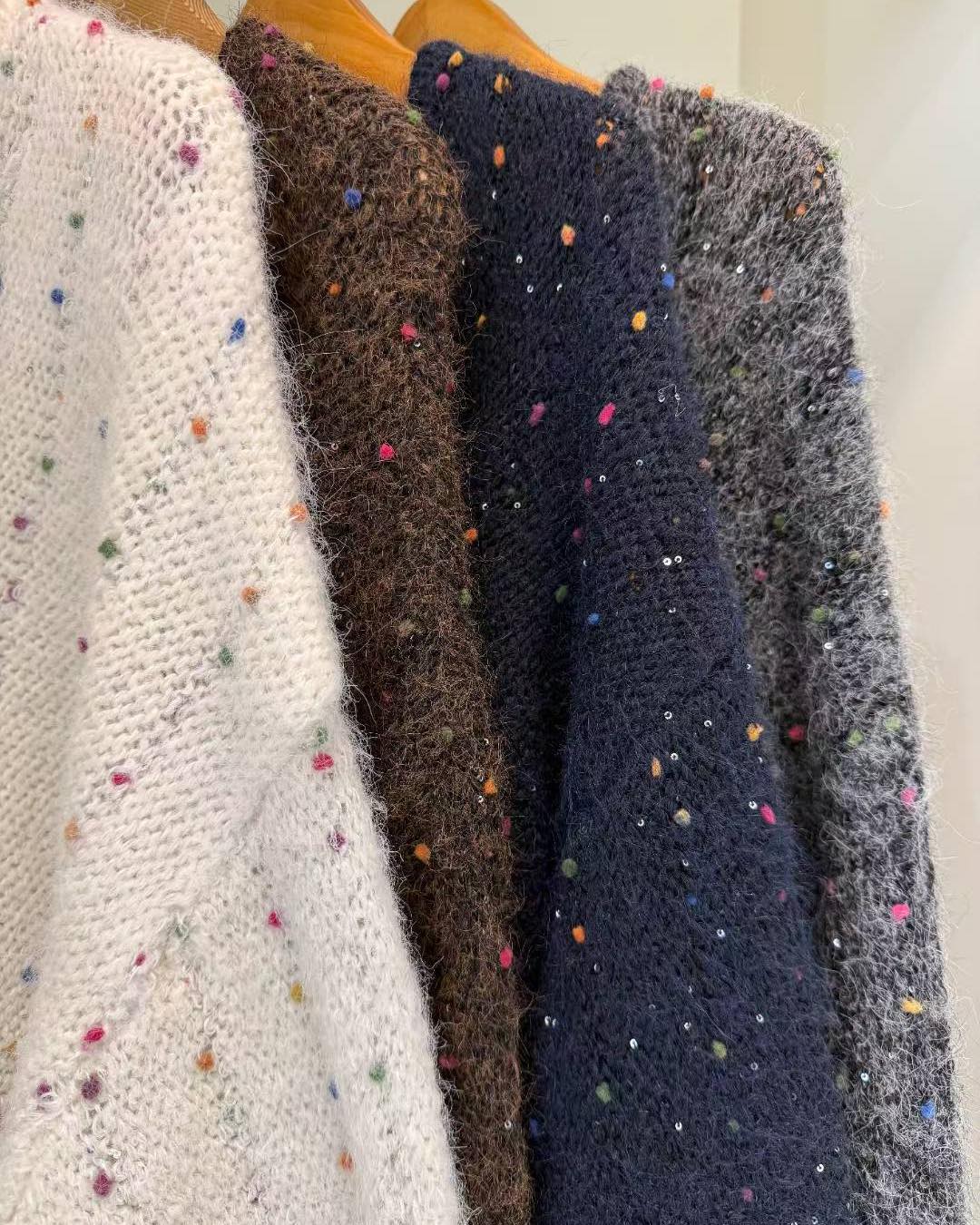 超靚毛毛閃閃冷衫 💰$230 質地舒服 軟綿綿 鬆身有彈性 S-L都岩著 非常好襯! 襯長褲/短褲/短裙/長裙都好睇 合埋眼襯都靚! 而且有彩色波波點 好sharp 好靚! 可以再超超前部署聖誕🎄著🤭🤭😆 一定好靚👍🏻👍🏻 4色 啡/深灰/深藍 /米 Chest 52” length 64cm