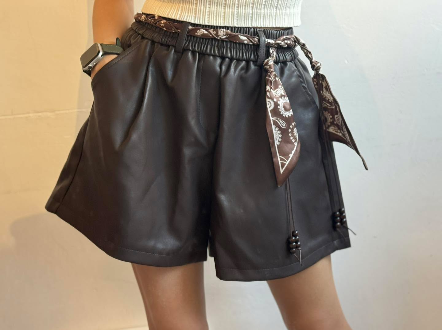出左story 之後好多美女問呢條褲! 🤣 比個like 我支持下啦😘😘😘 仿皮短褲仔 連腰帶~ 啡/黑 2色 Free size Waist 24-38" hip 44" length 15"