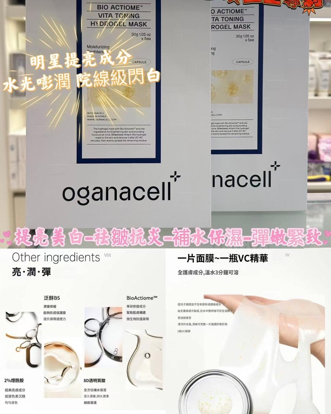 韓國OGANACELL光子美白膠原面膜(一盒5塊) 💰$239/1 $420/2 呢款面膜我都係用左一盒先推介大家~ 佢1片面膜30g=1瓶美白VC精華😍 我最喜歡係佢非常方便 唔會敷住面膜就唔郁得! 佢啫喱狀面膜 一上面就會痴實 唔會跌 唔會郁黎郁去 唔會滴水~ 非常岩我呢d 敷住面膜都想做其他野的大忙人🤣 屋企真係好多野搞 所以如果敷面膜就要停哂手 真係會浪費哂d時間🤣🤣 呢款面膜係視乎大家膚況去敷幾耐~ 等佢變到透明就可以敷完了~ 雖然唔係平時果d有精華的面膜 但敷完你都會覺得好舒服 好保濕👍🏻👍🏻 科學實證:持韓國美白抗皺兩大特證,實證有效。✅ ✨超光子膠原蛋白灌注面膜 膠囊VC精華靶向美白黑科技 定點美白 給皮膚補充滿滿膠原蛋白 ●蘊含2%高濃煙酰胺—明星提亮成分,護膚萬金油,美白抗皺的同時抵抗自由基,抑制黑色素,提亮膚色,低煙酸含量,敏肌更安心。�●腺苷—具有抗炎症、美白、去皺的作用。 經過皮膚科研究所敏感肌測試,溫和安全,敏感肌也能安心使用!