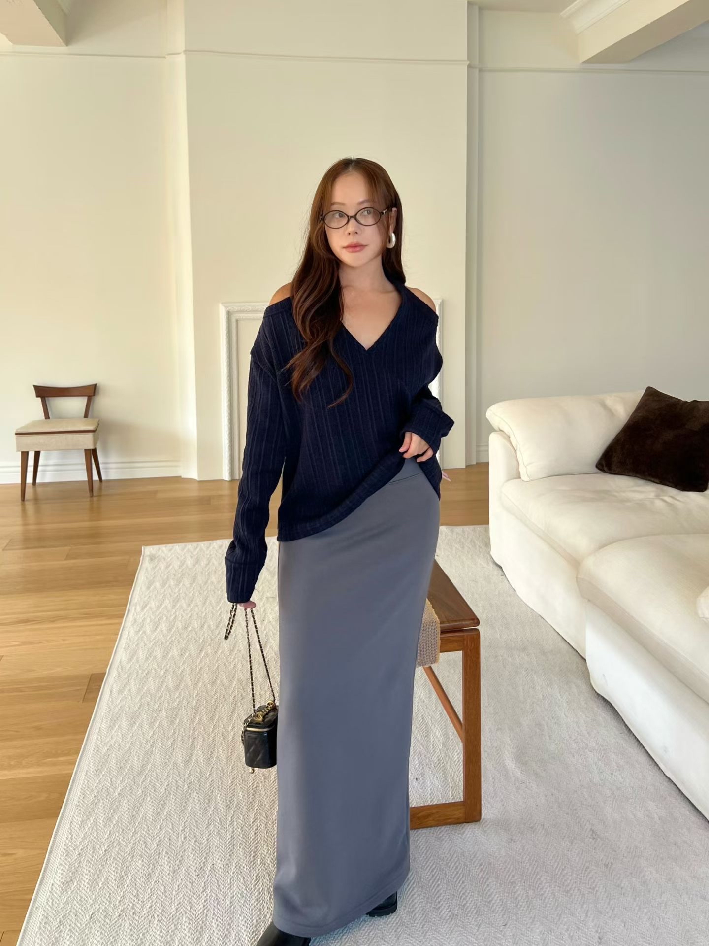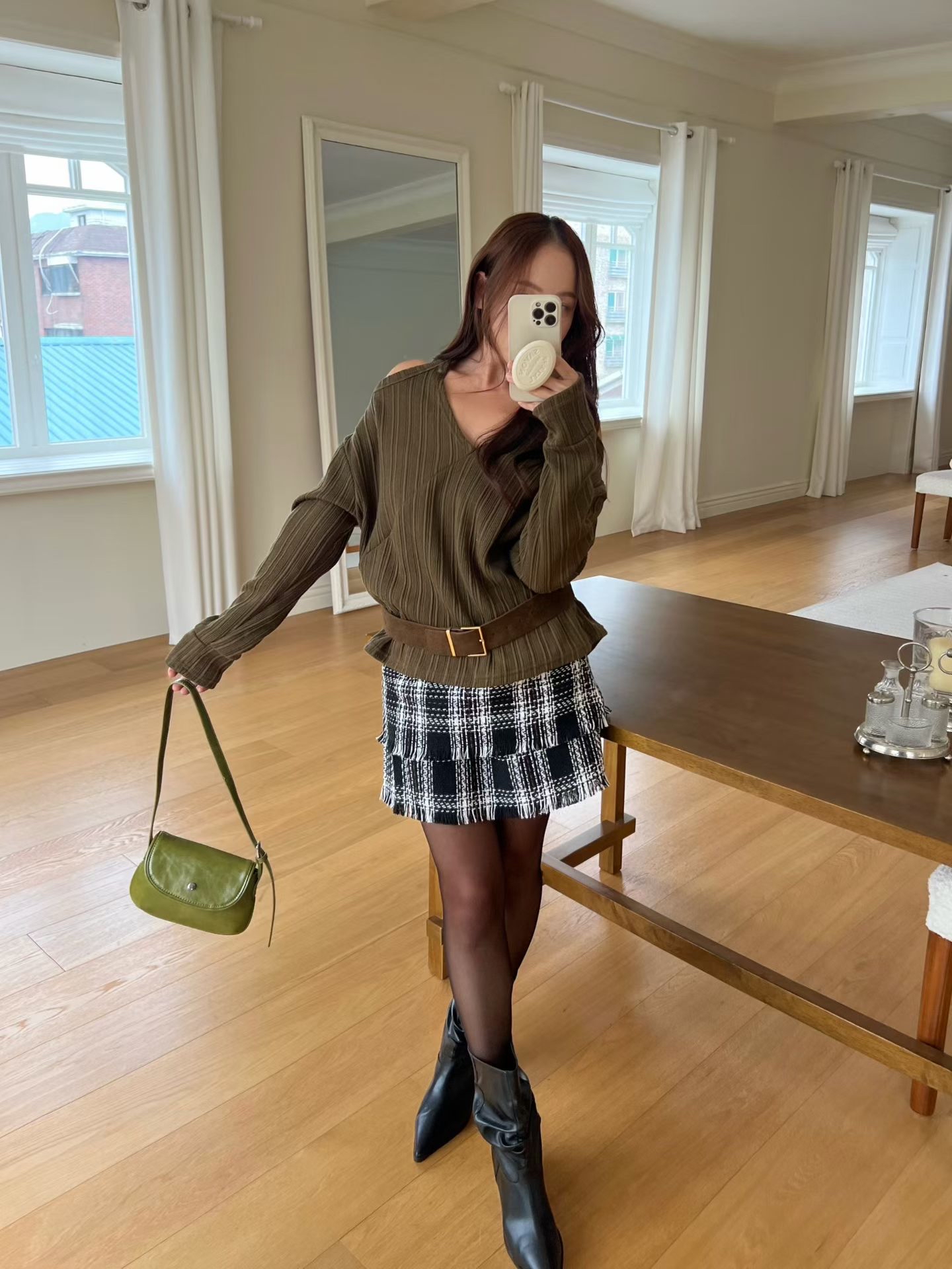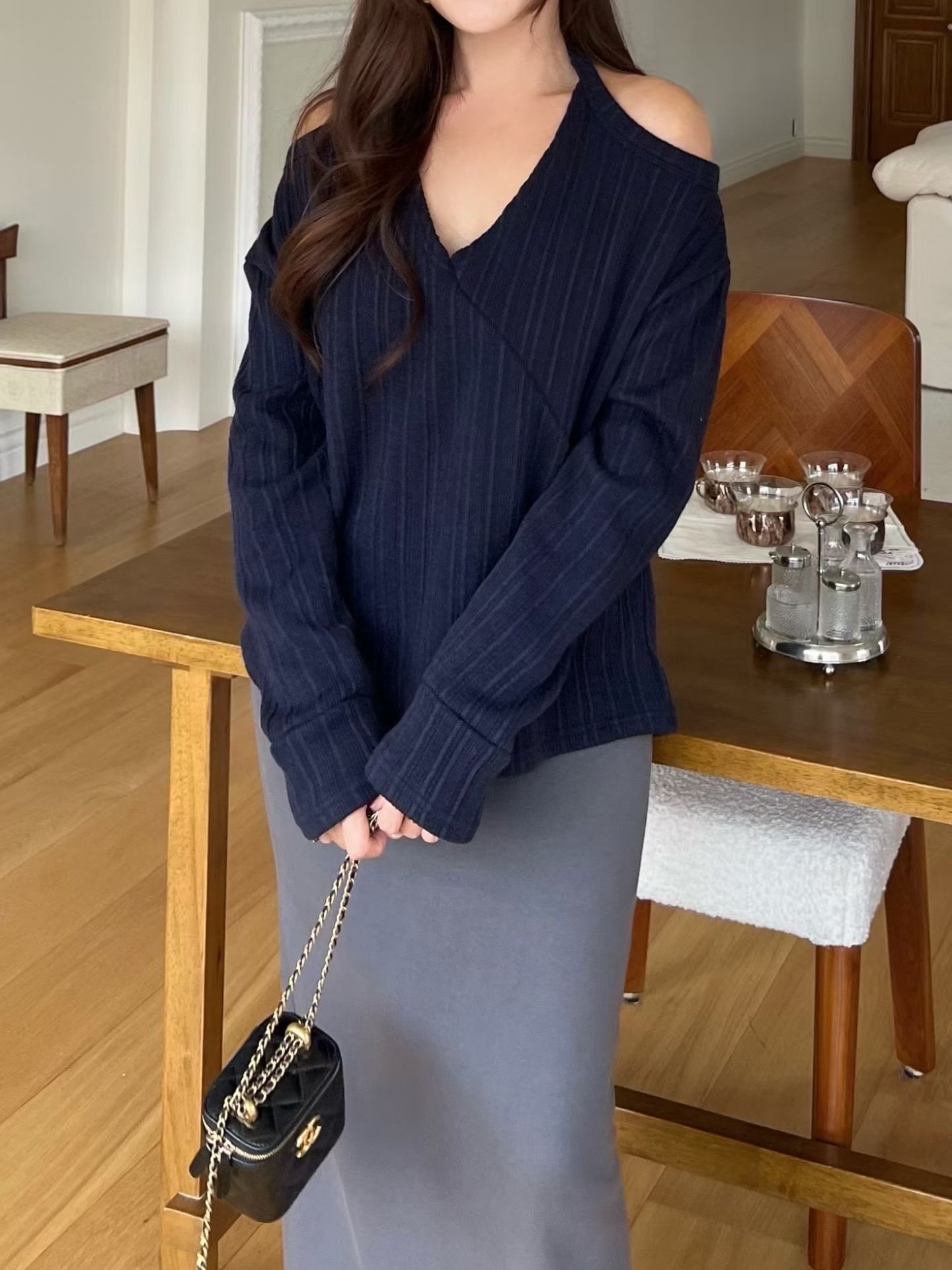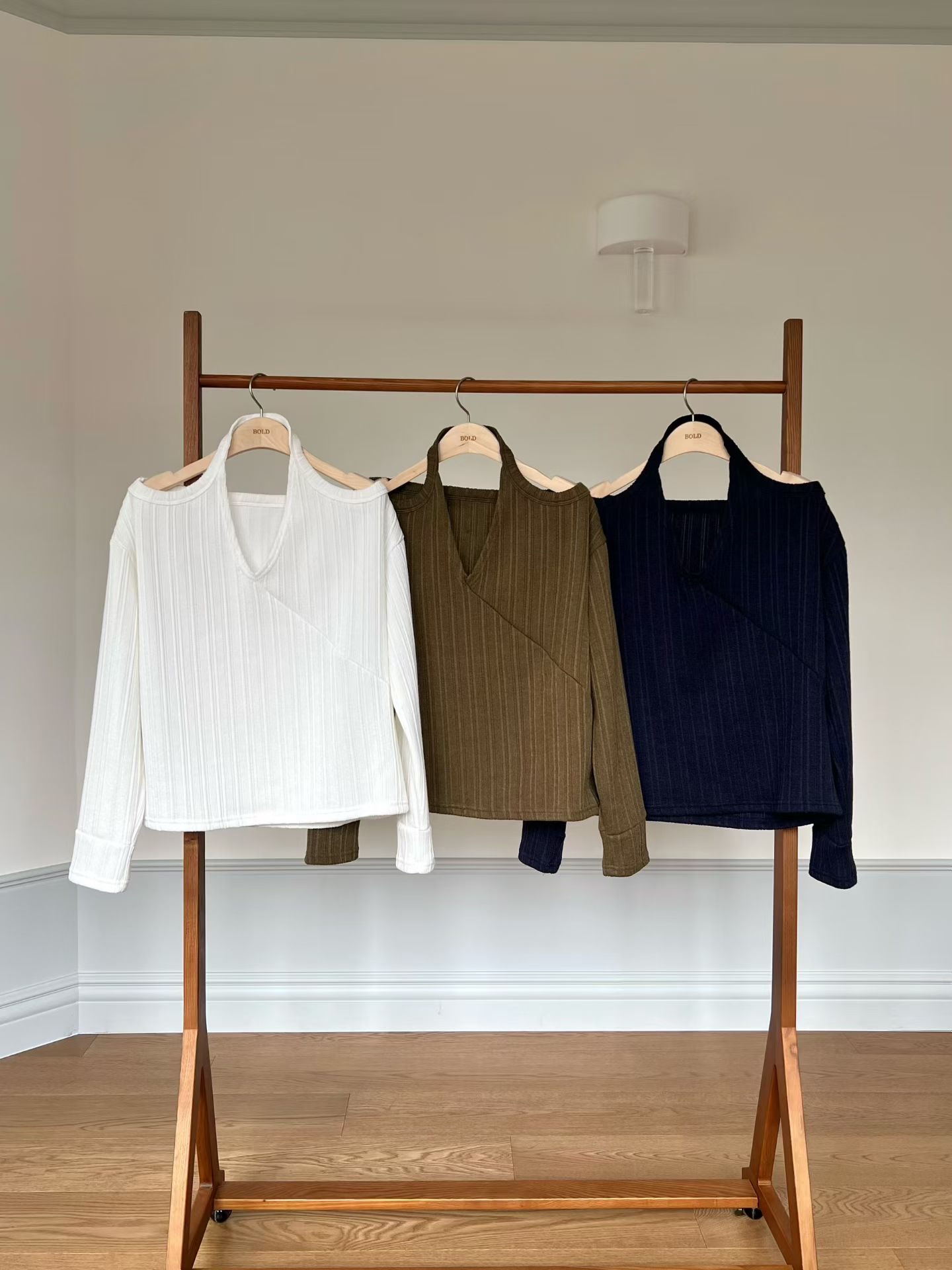 BD06 掛頸直紋top 3色 米白/啡/深藍 Chest 44" length 21"